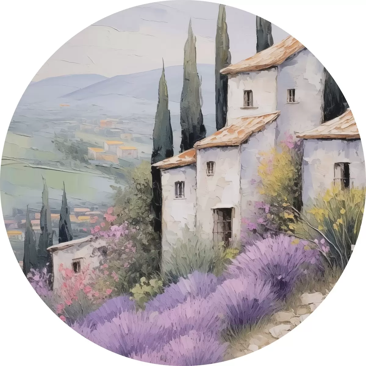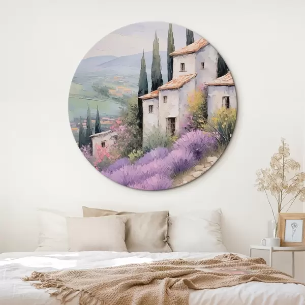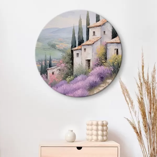 Cuadros redondos Casa junto al campo de lavanda r44641