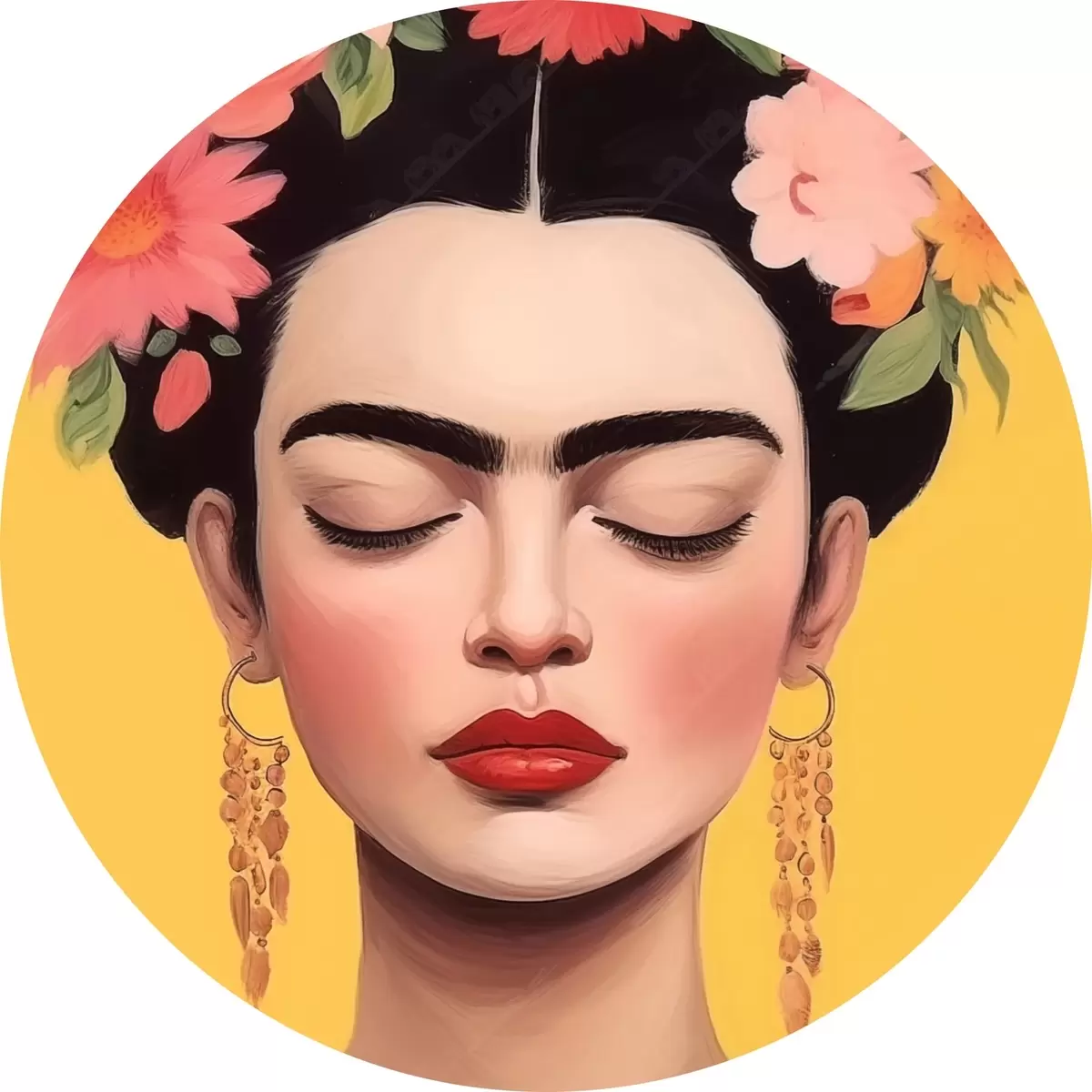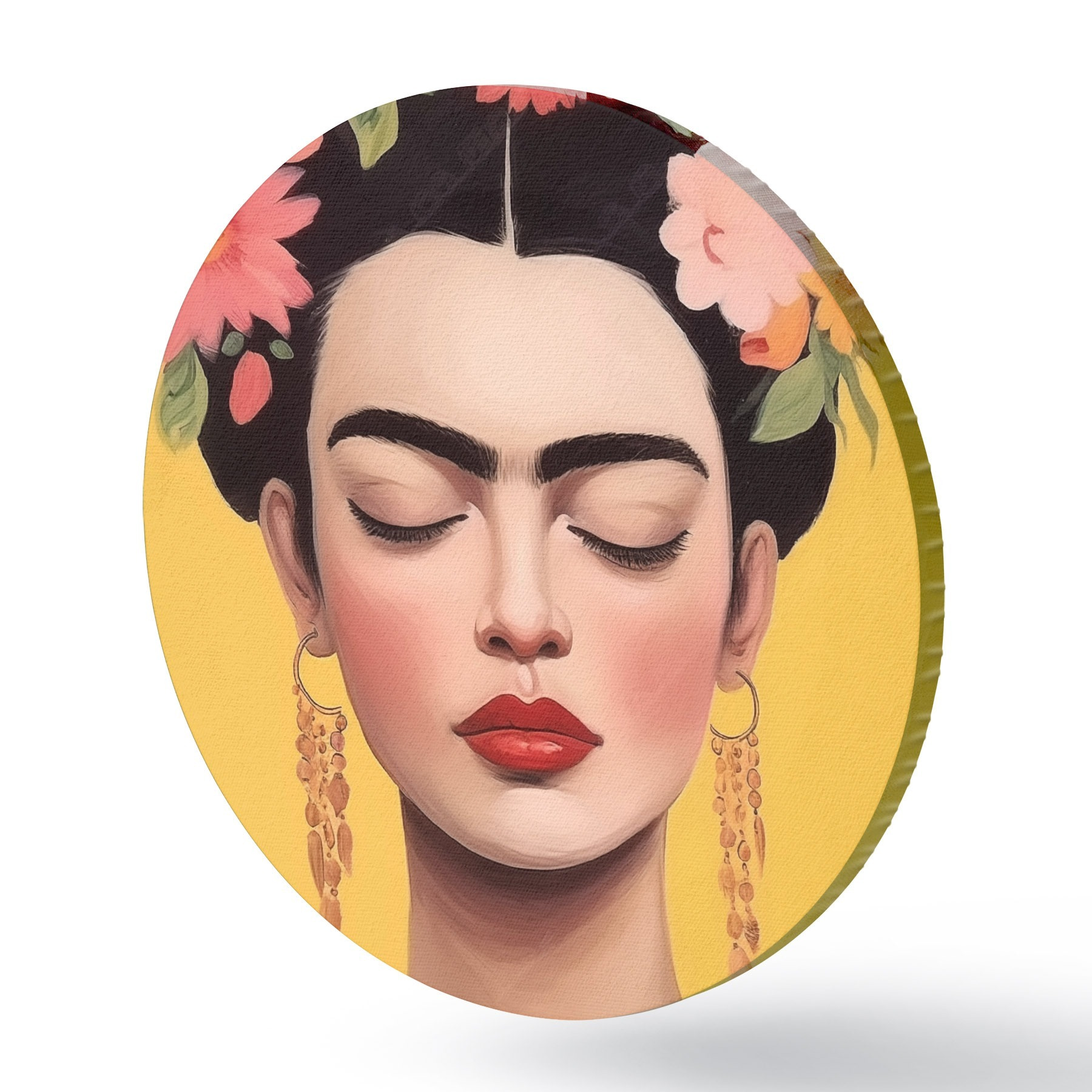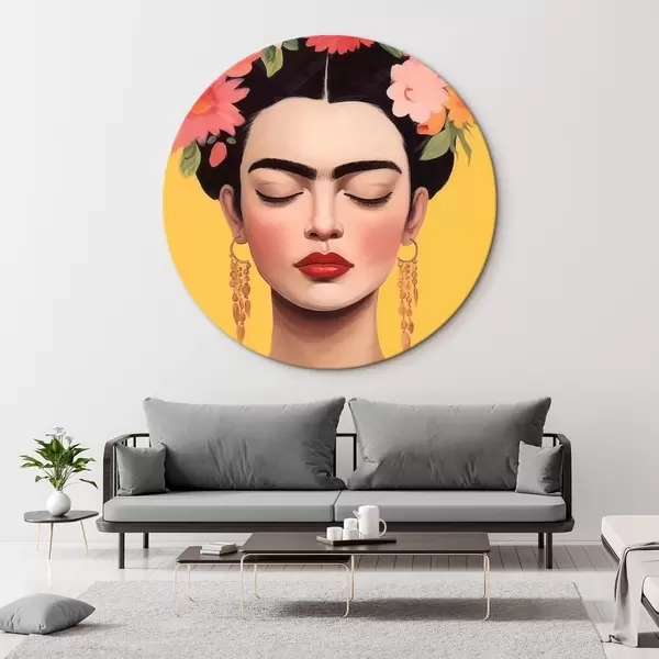 Cuadros redondos Retrato femenino con flores en el pelo r44680