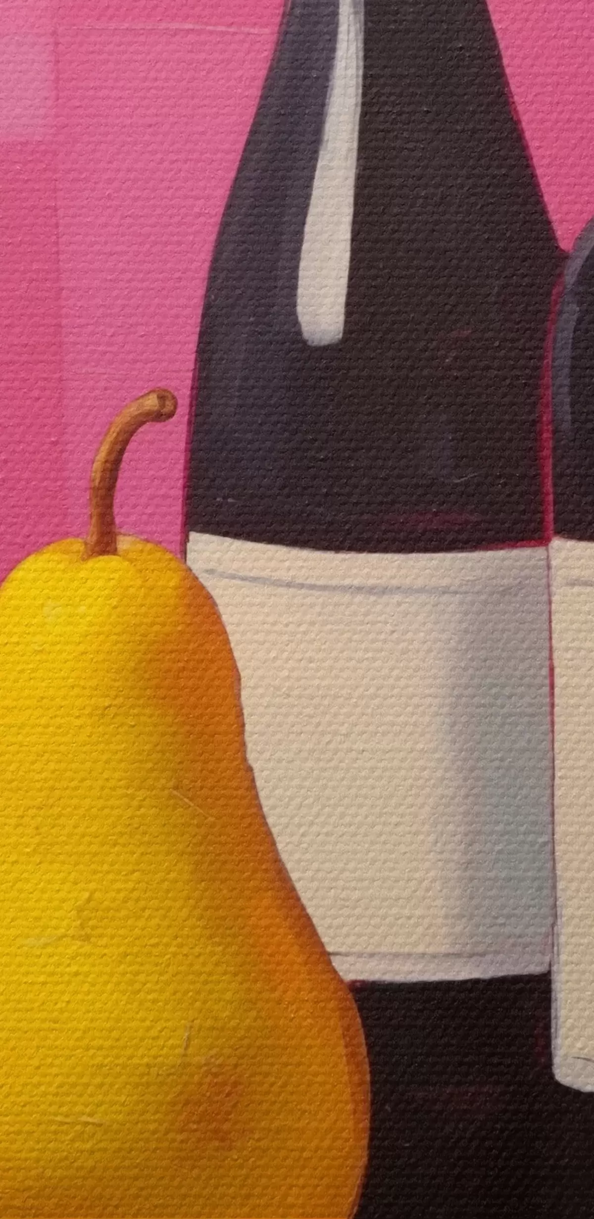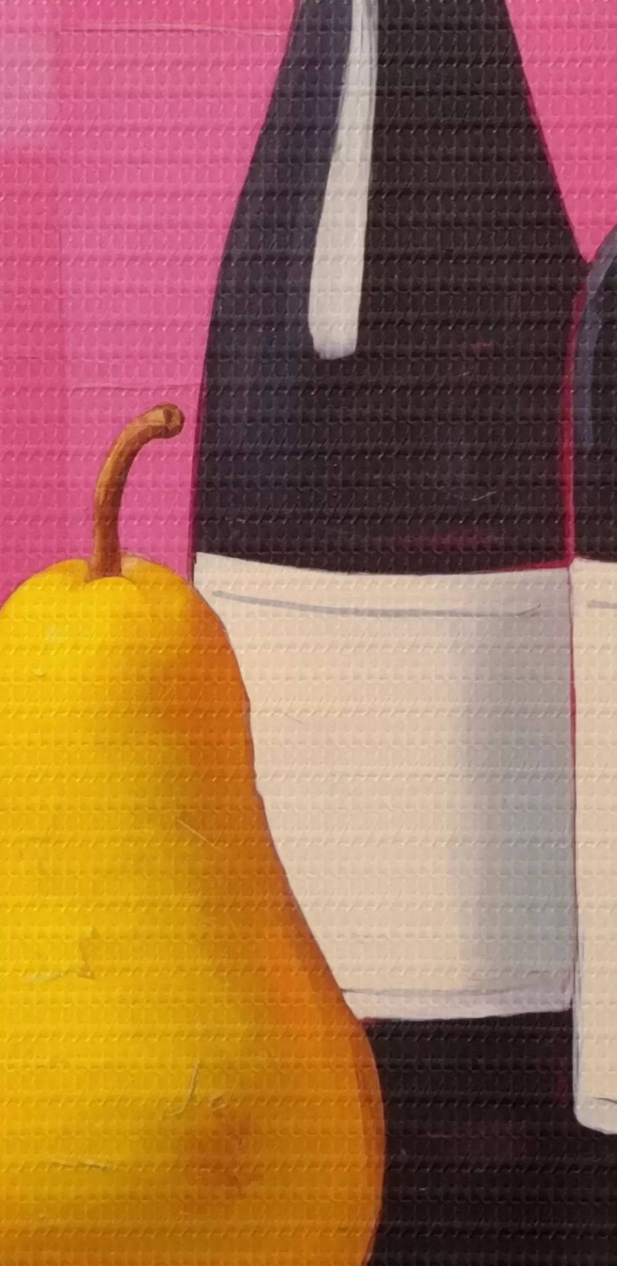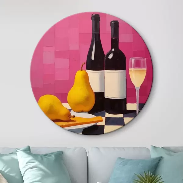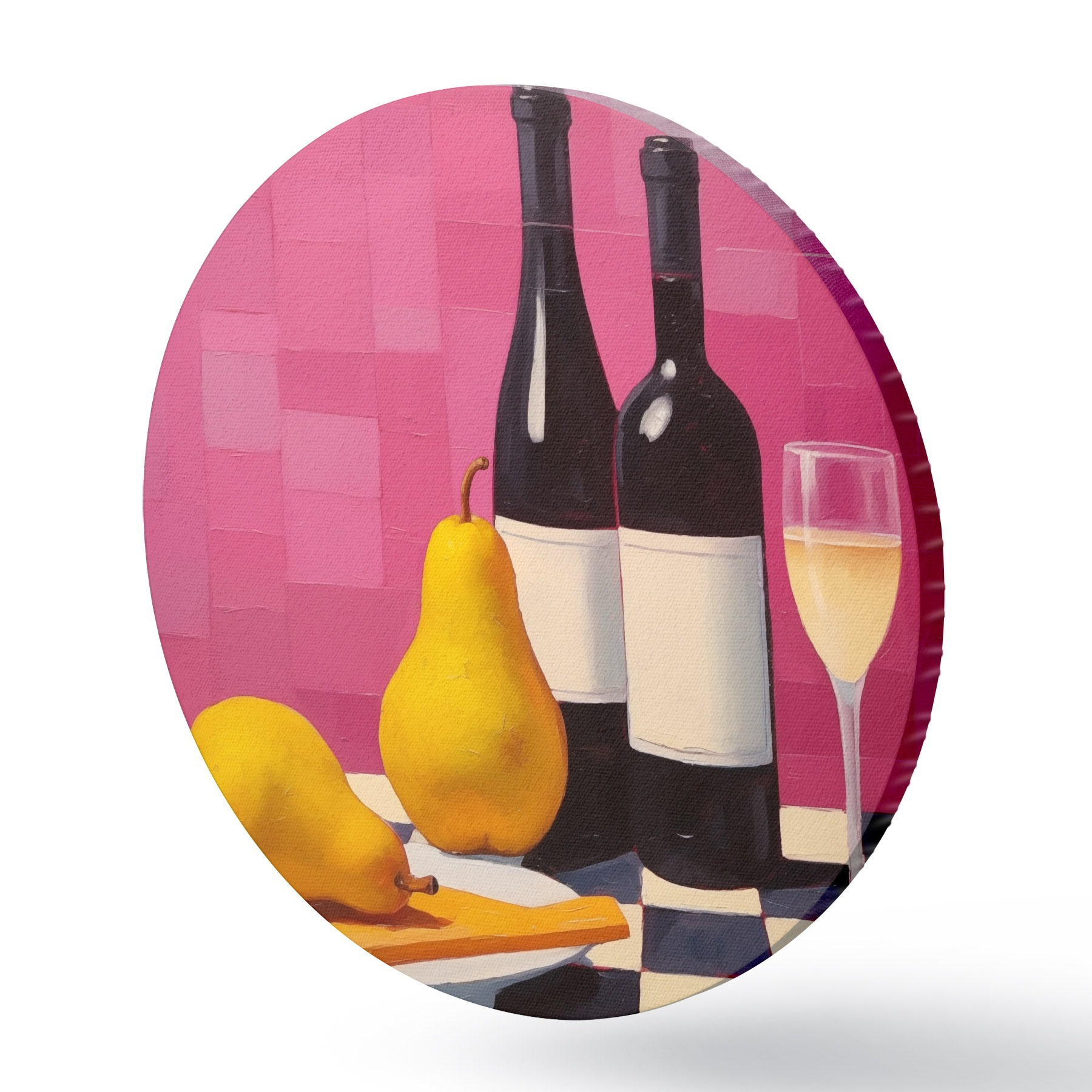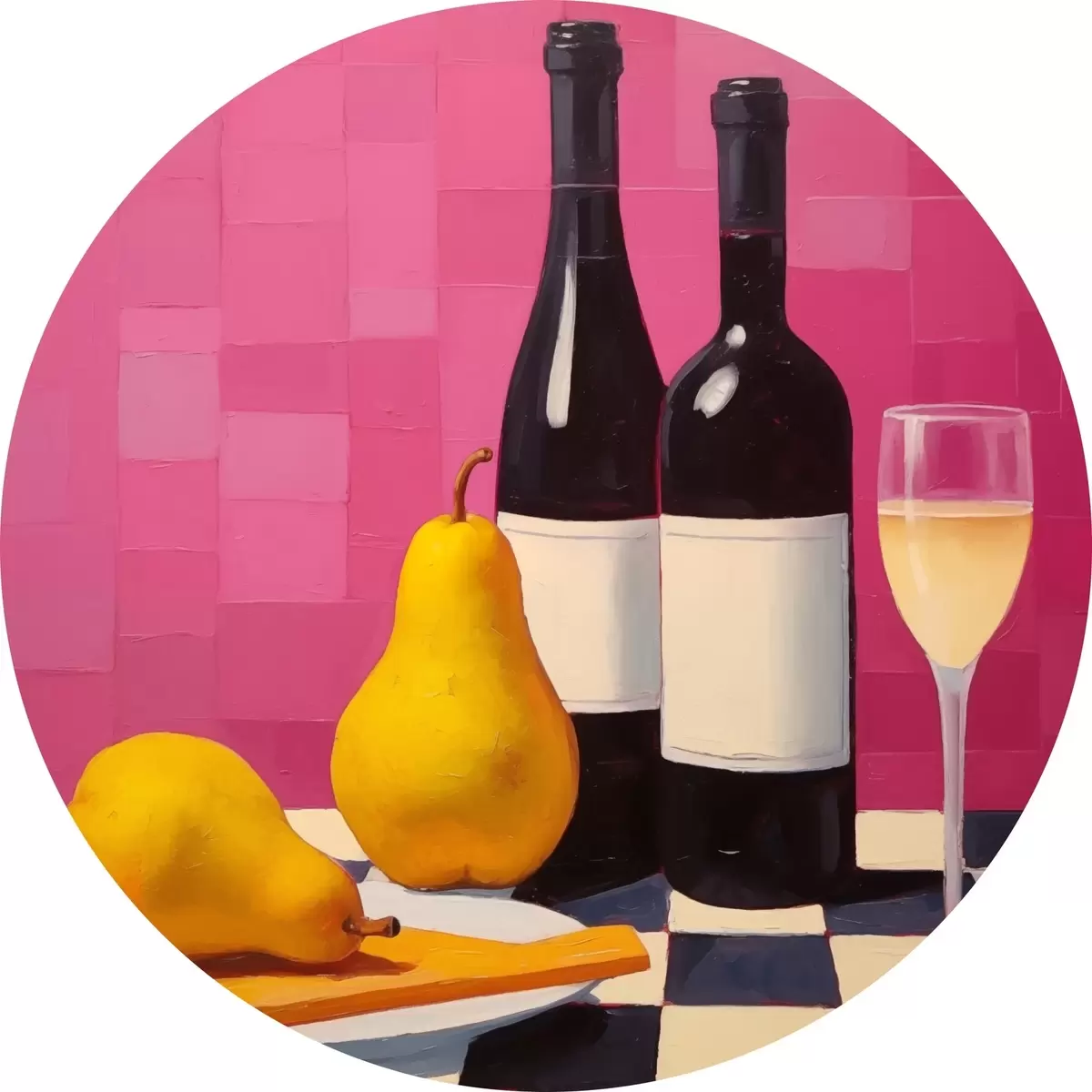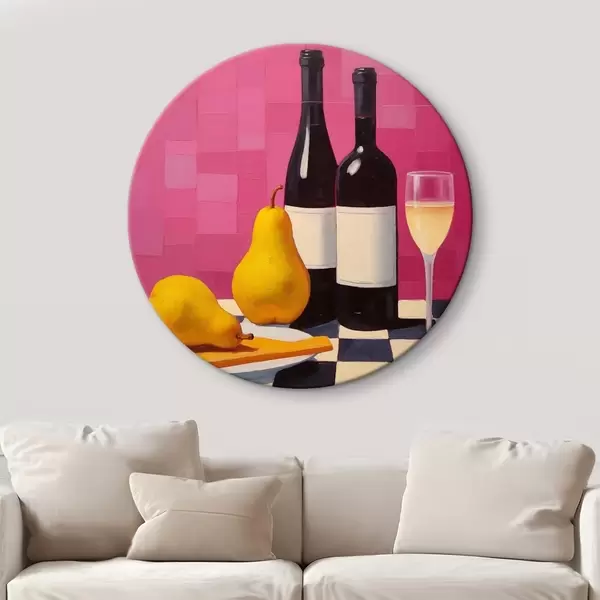 Cuadros redondos Peras, un vaso de vino y dos botellas de vino r44683