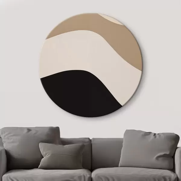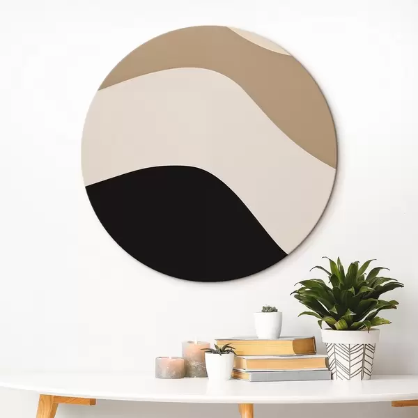 Cuadros redondos Ondas abstractas en beige y negro r44687
