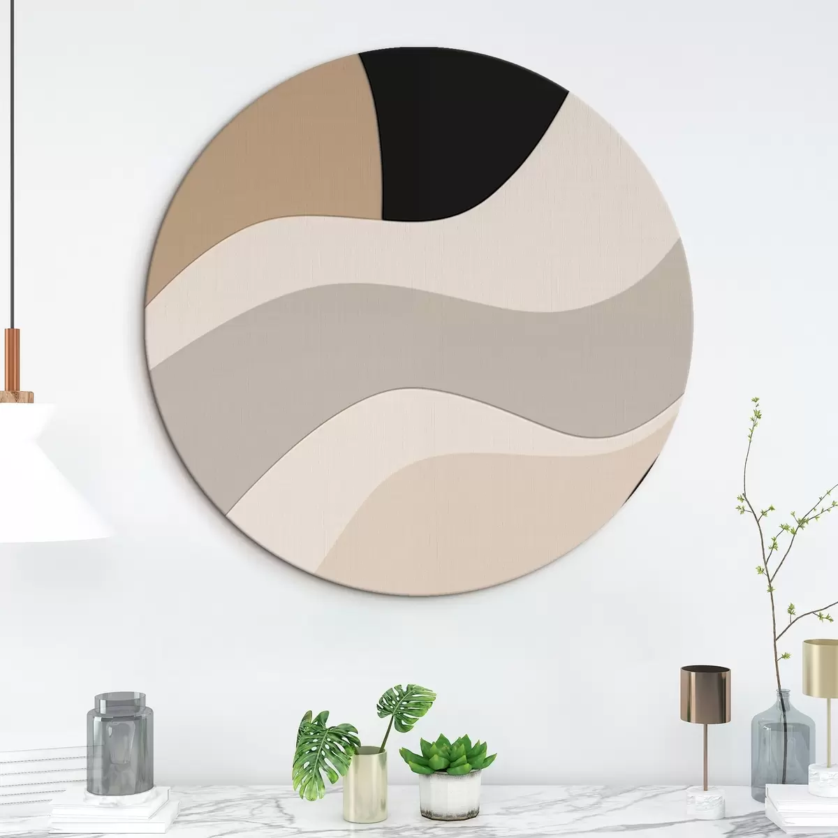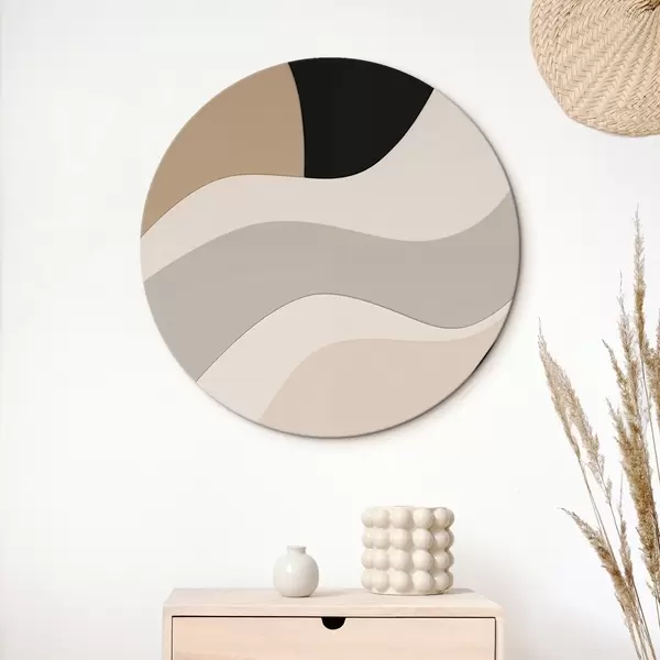 Cuadros redondos Ondas abstractas en beige y negro r44688