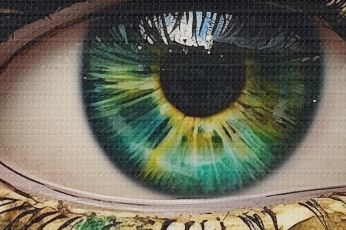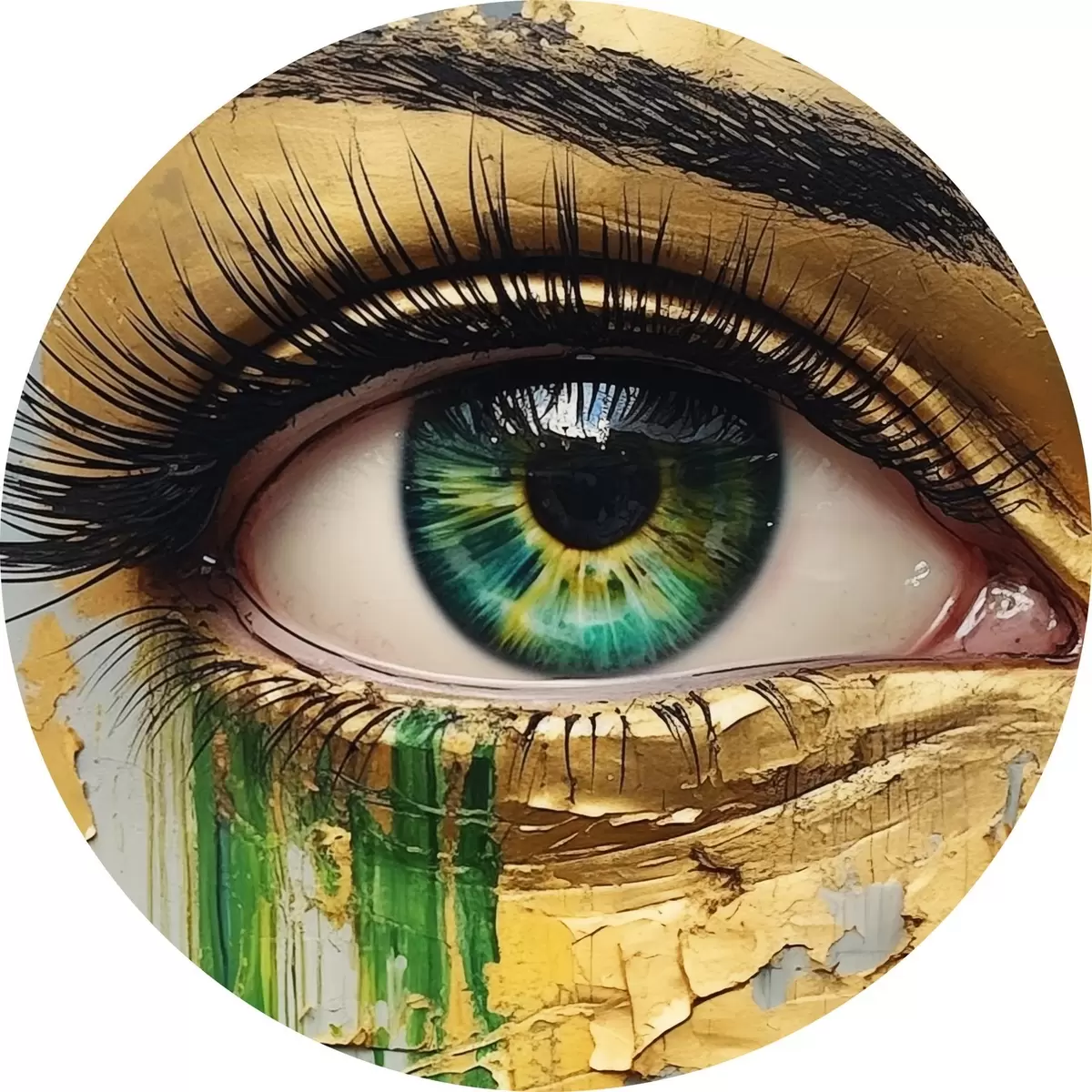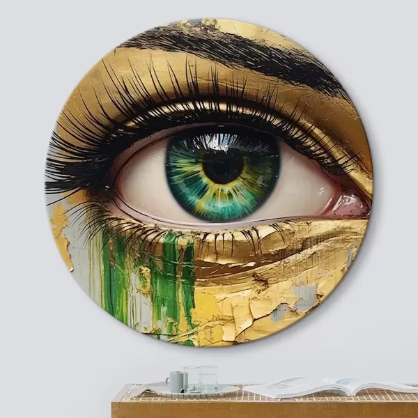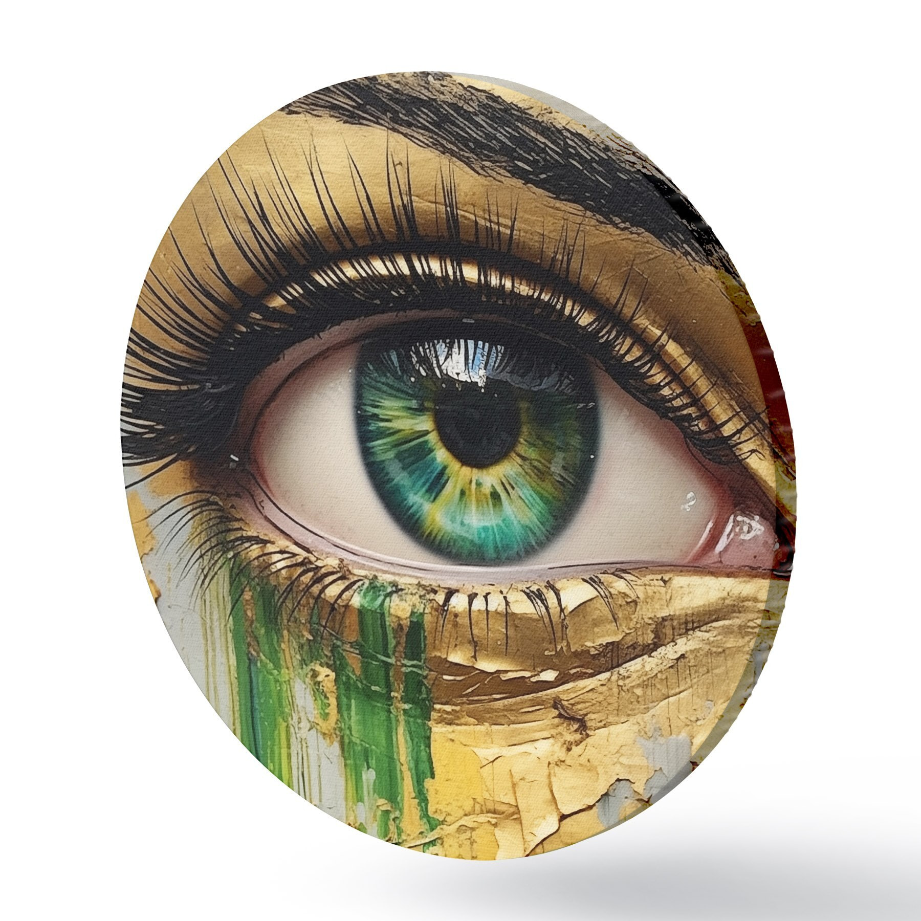 Cuadros redondos Ojo verde sobre fondo de pintura agrietada r44690