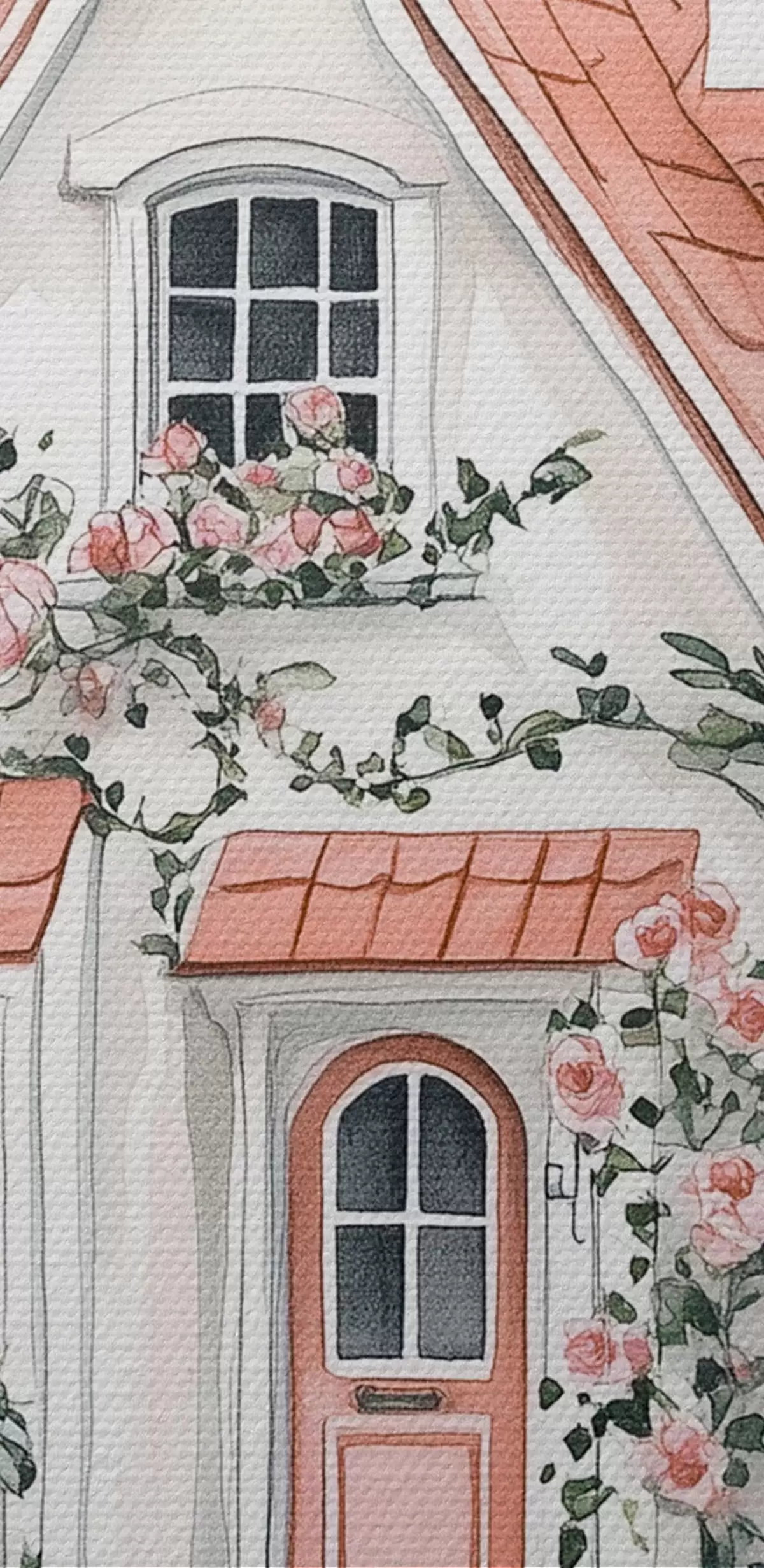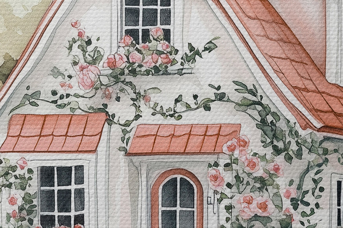 Foto Casa blanca con jardín de rosas en el bosque Nr r44716