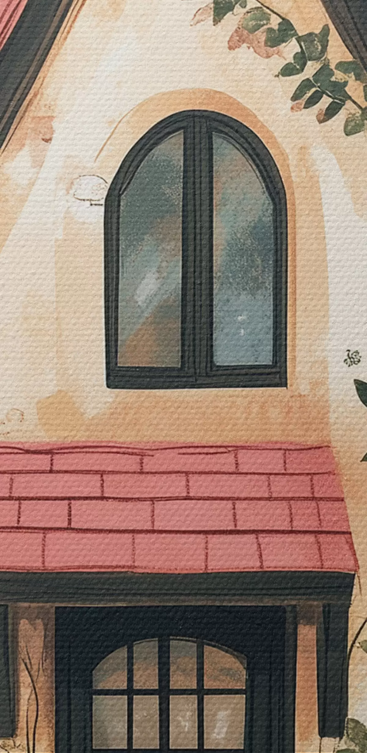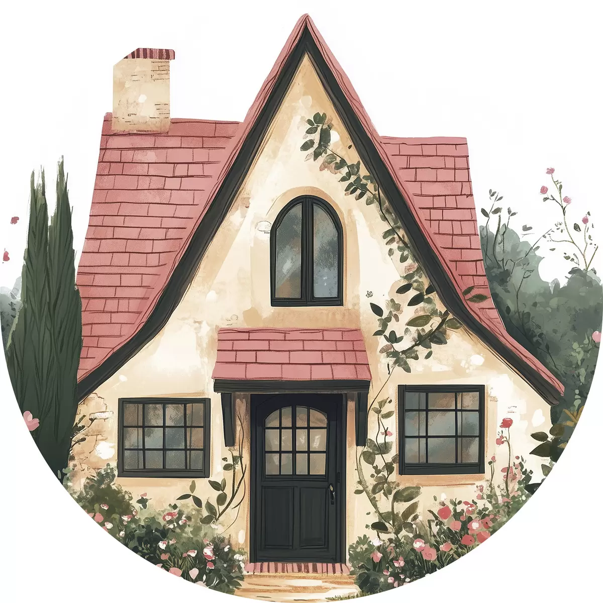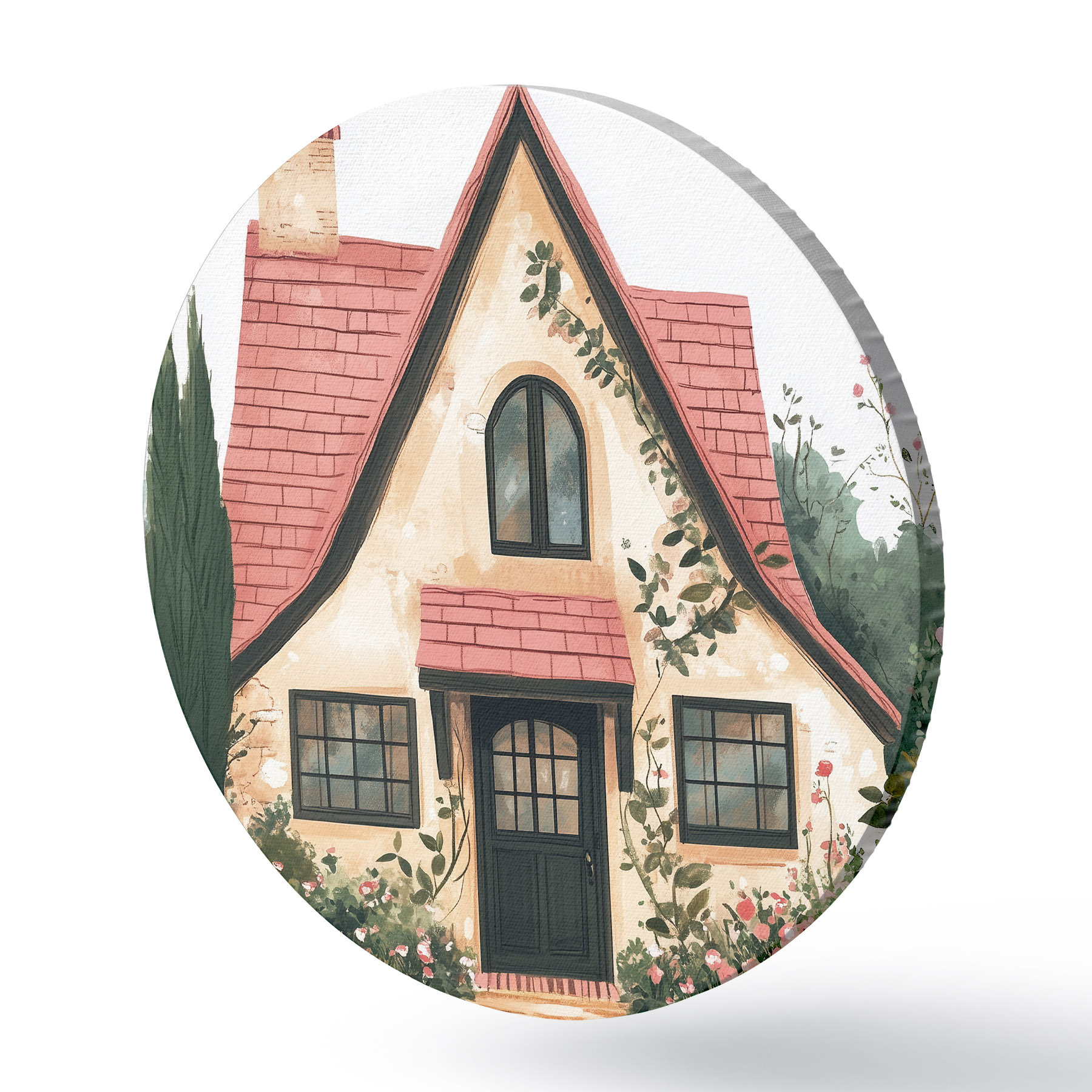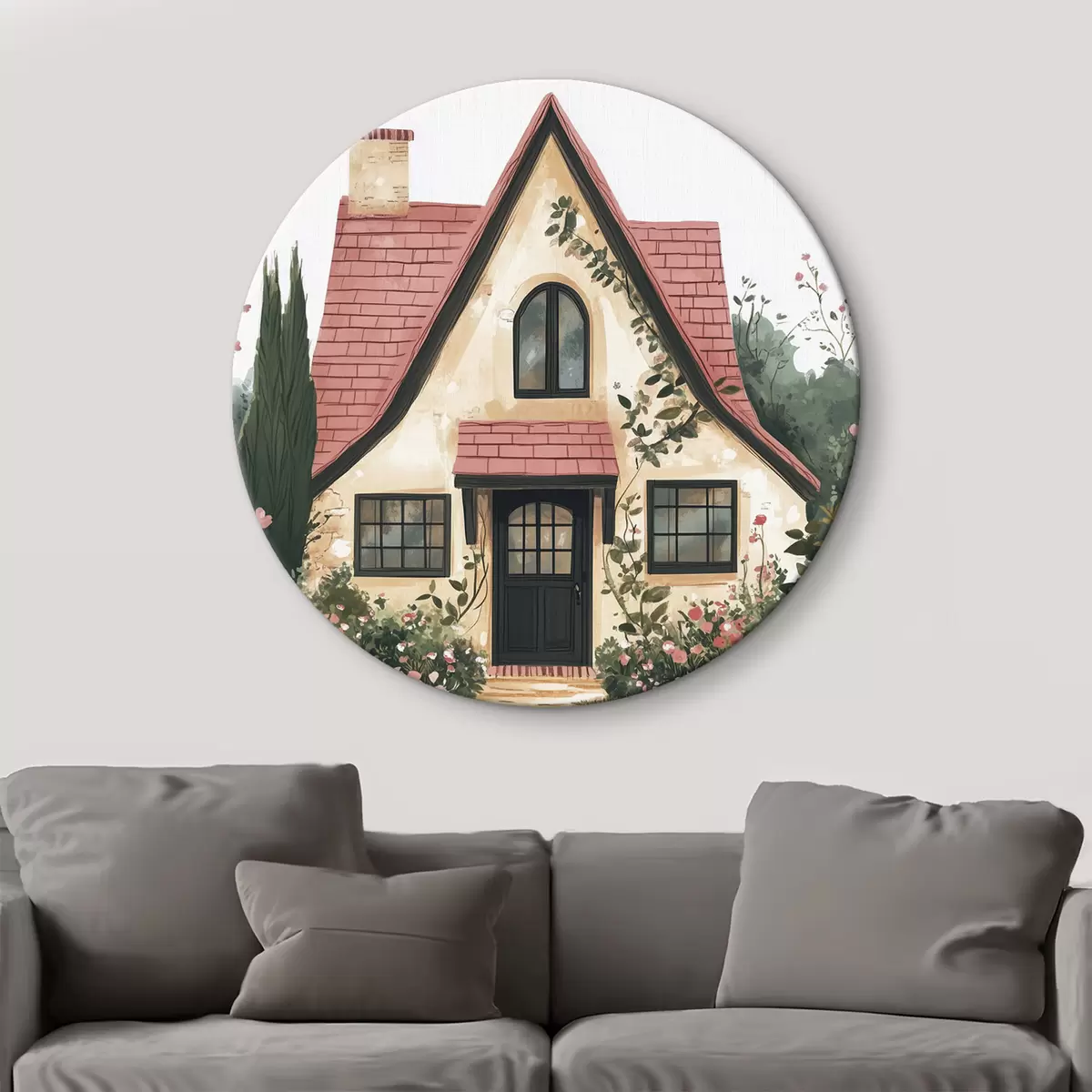 Cuadros redondos Una casa de cuento en el bosque, rosas, estilo pastel r44718