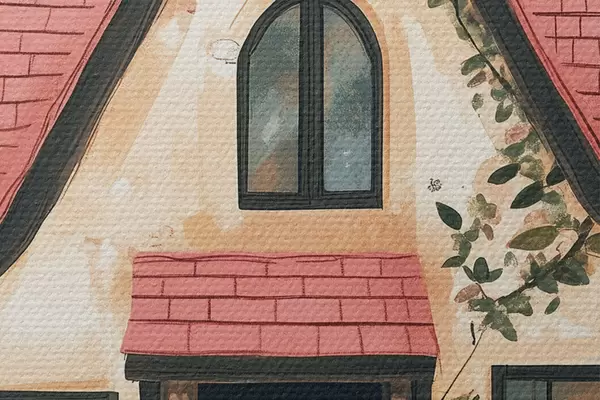 Foto Una casa de cuento en el bosque, rosas, estilo pastel Nr r44718