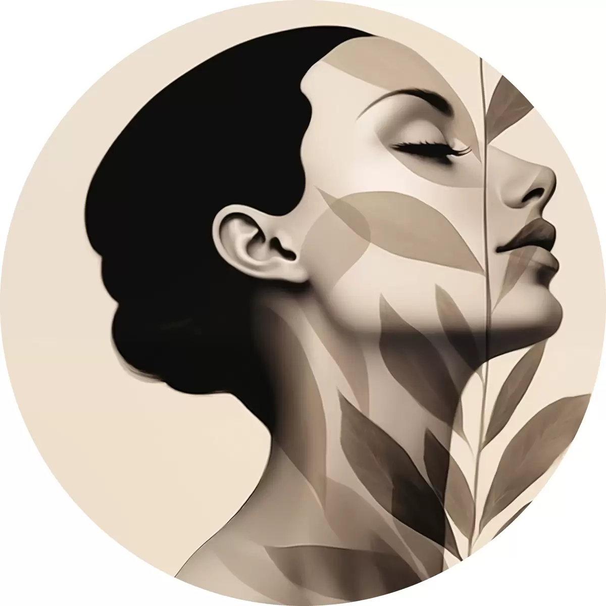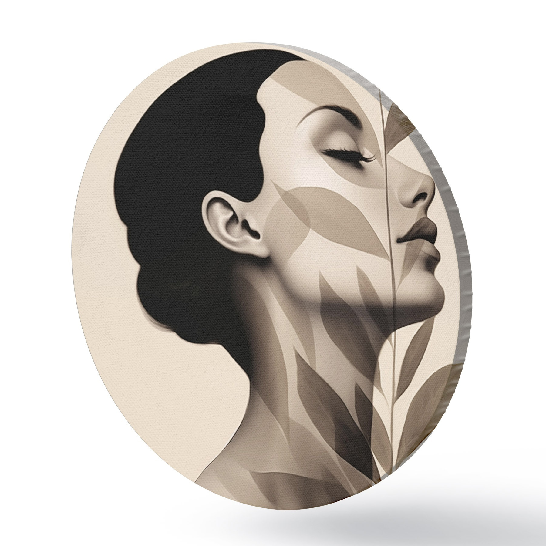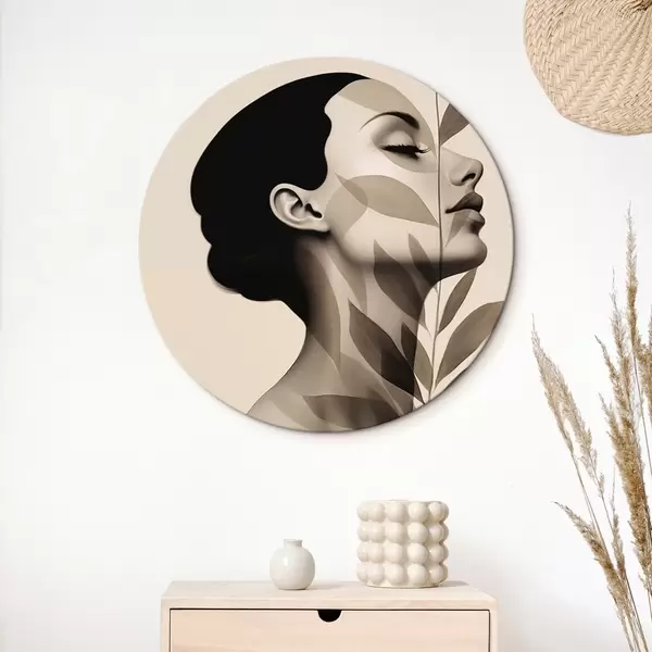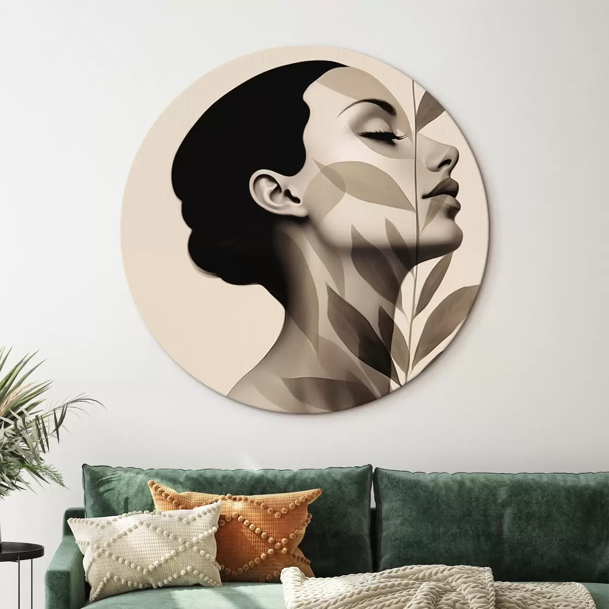 Cuadros redondos Perfil femenino con motivos florales r44725