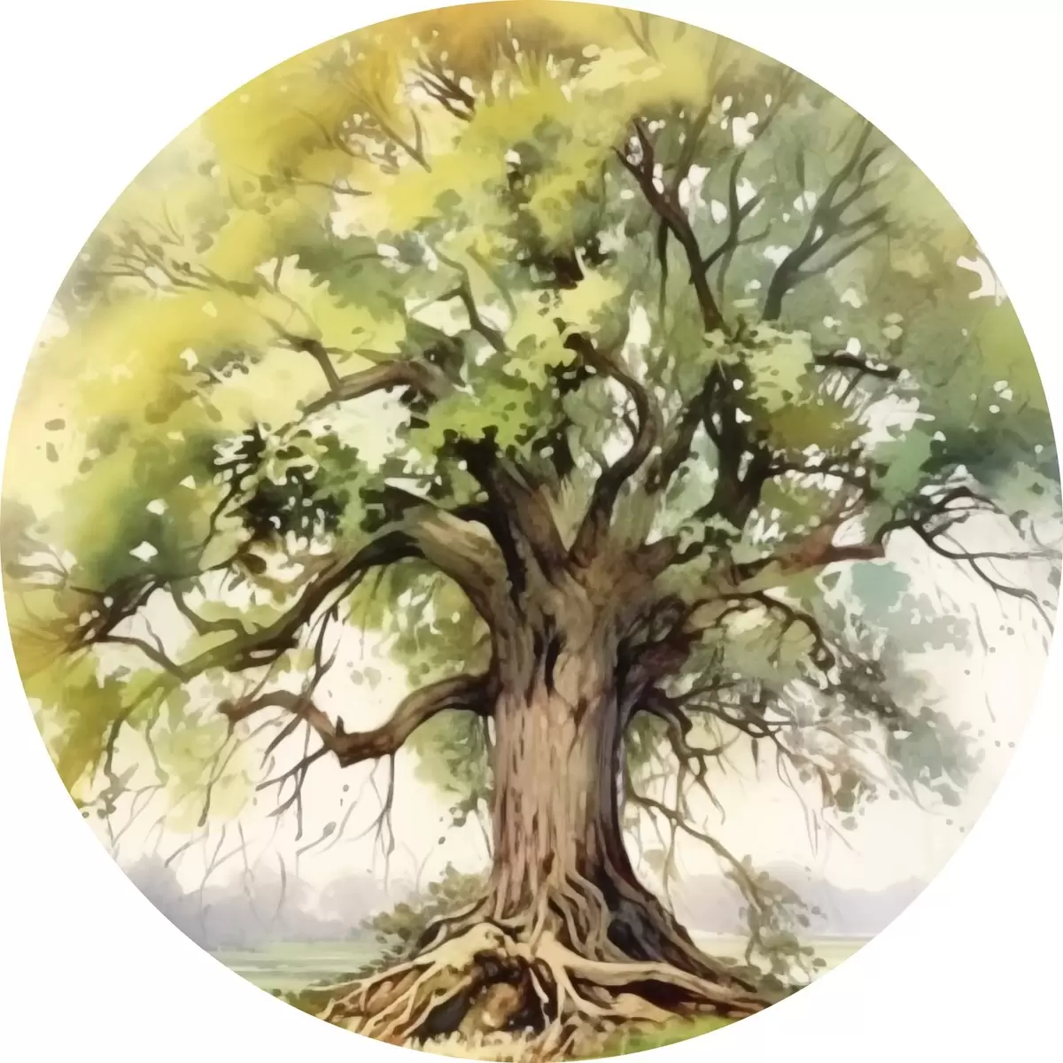 Cuadros redondos Un viejo árbol con raíces extendidas r44731