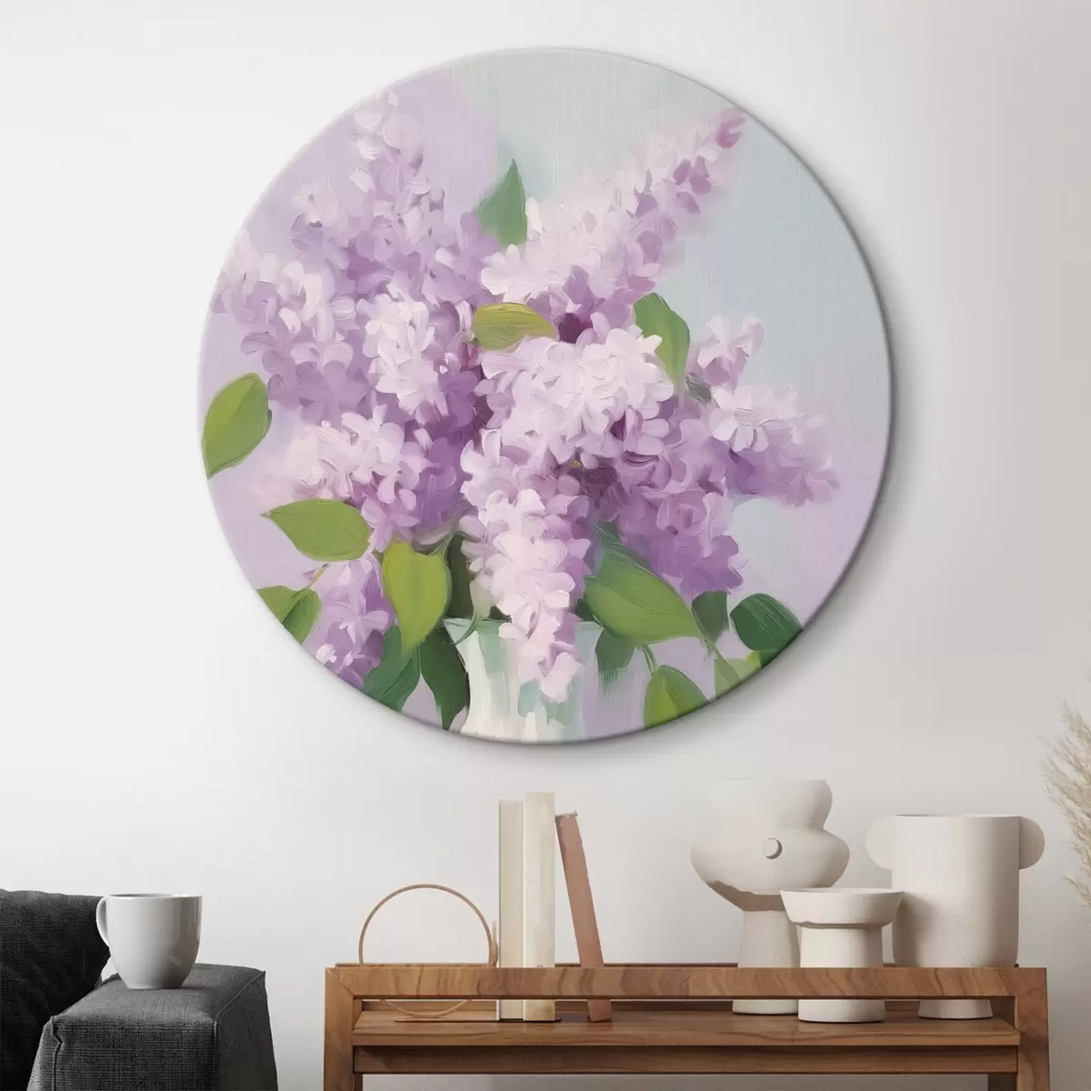 Cuadros redondos Lilas en un jarrón blanco r44735