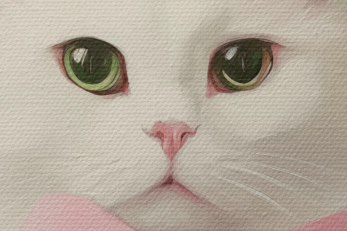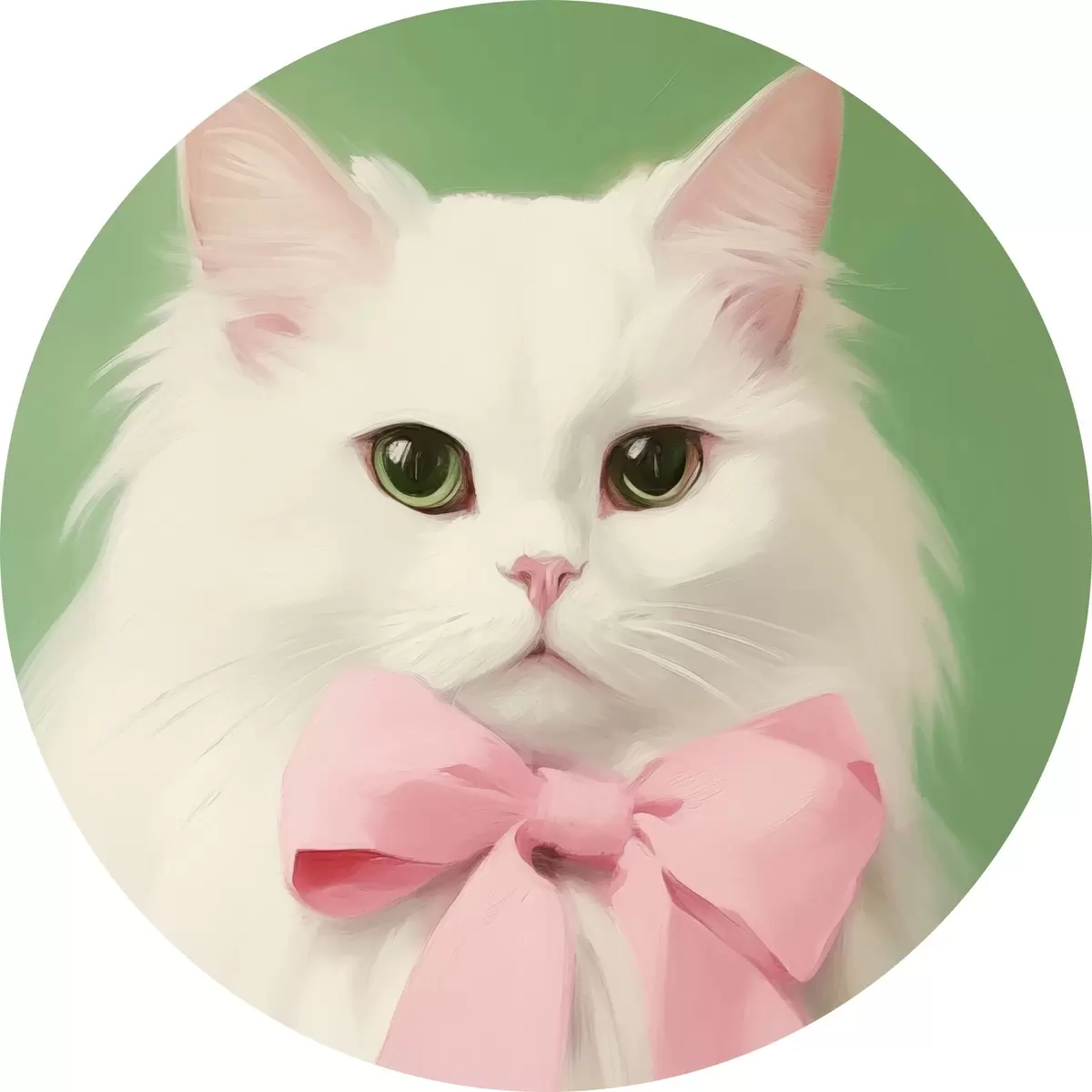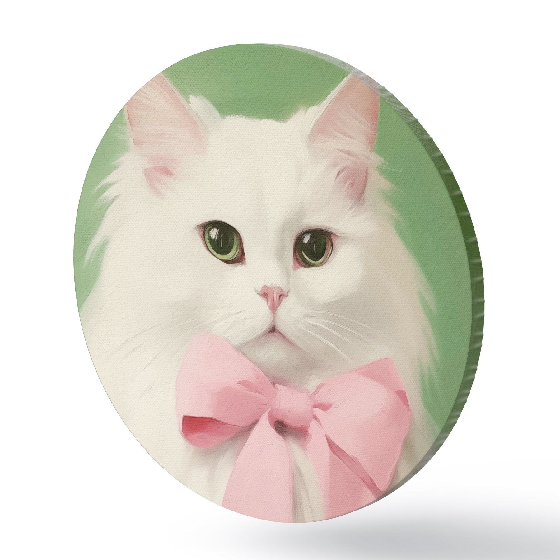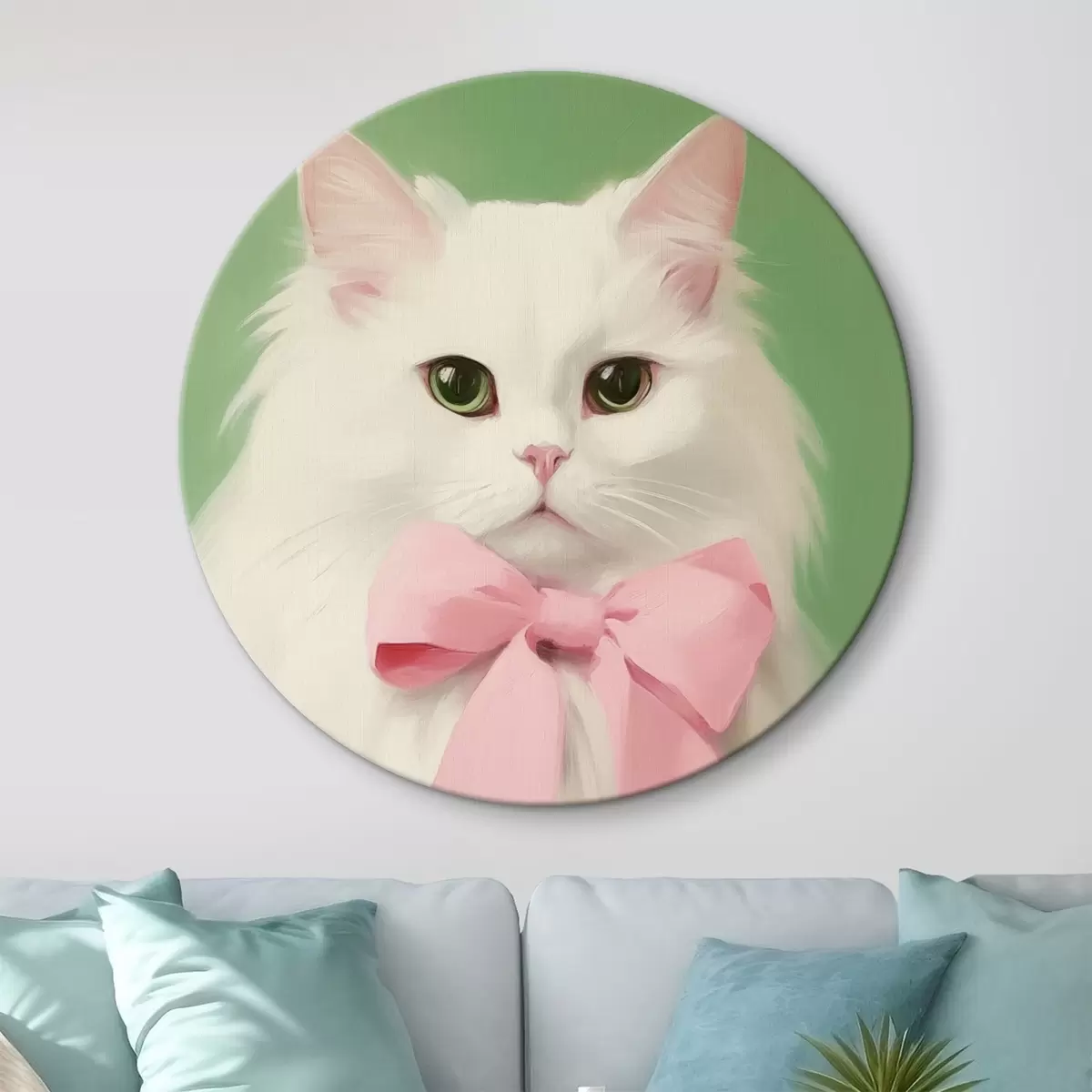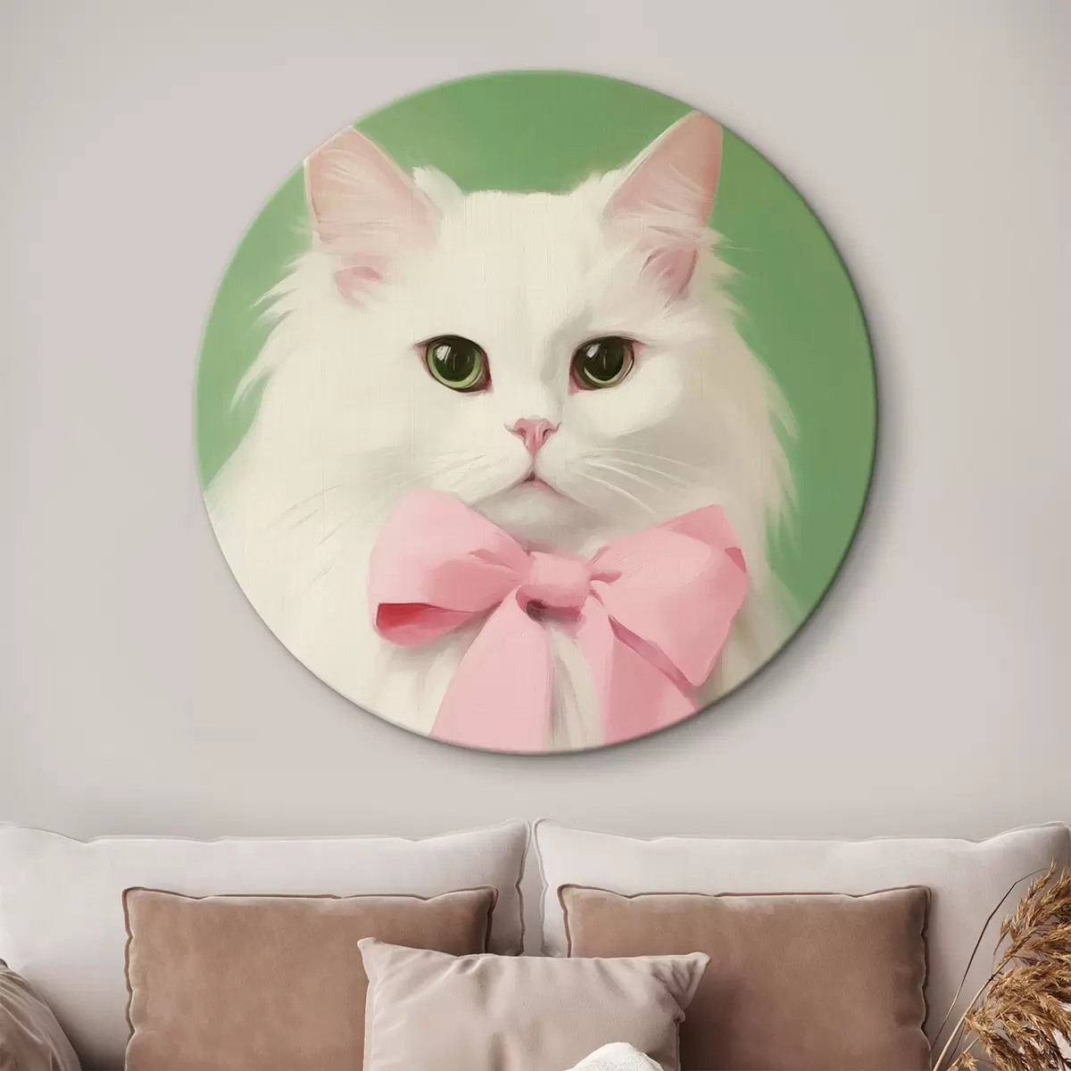 Cuadros redondos Gato blanco con lazo rosa r44739