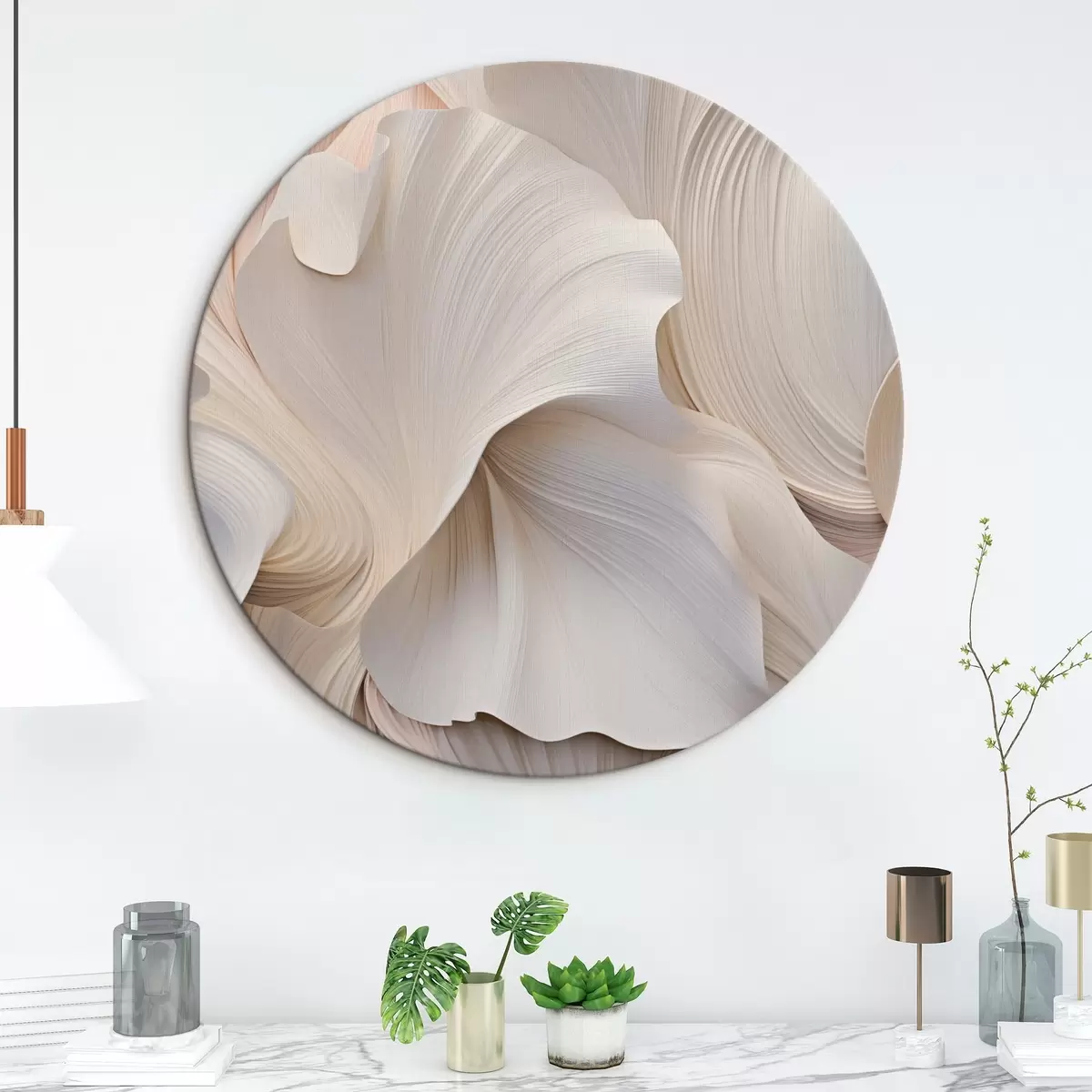 Cuadros redondos Superficie texturizada en tonos claros r44745