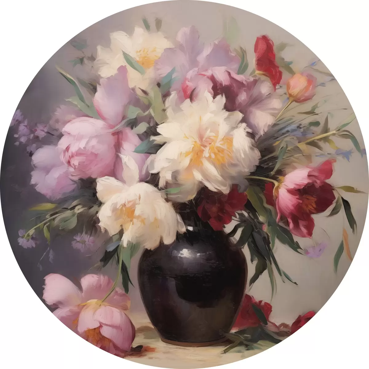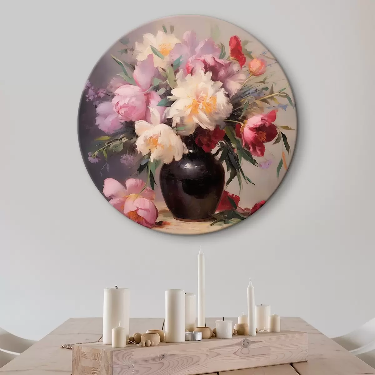 Cuadros redondos Ramo de peonías en un jarrón oscuro r44769