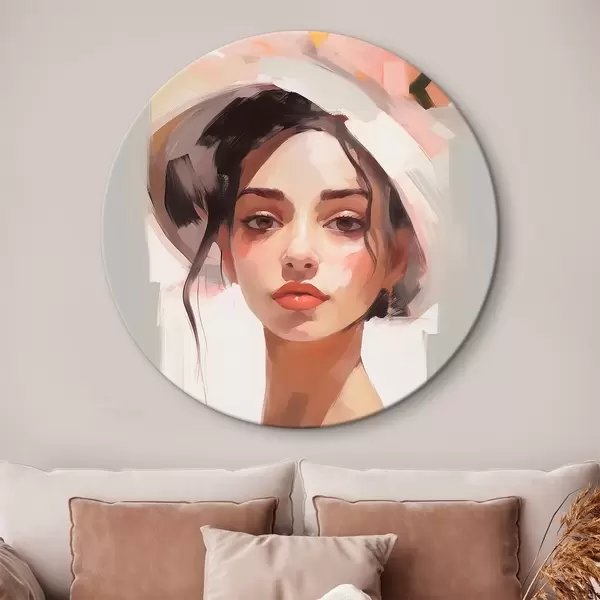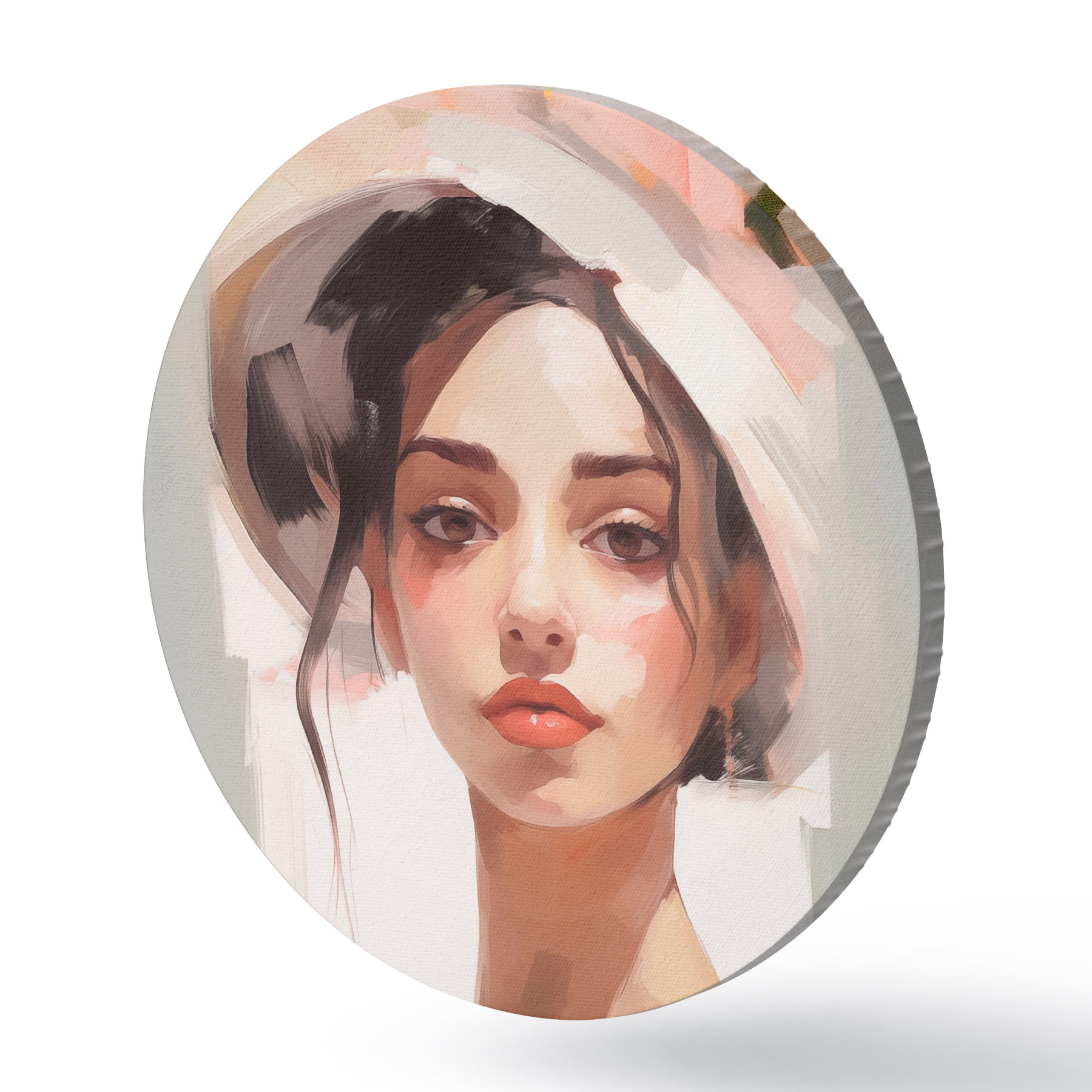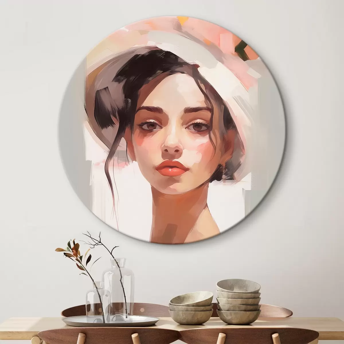 Cuadros redondos Chica con sombrero imitación de pintura r44778