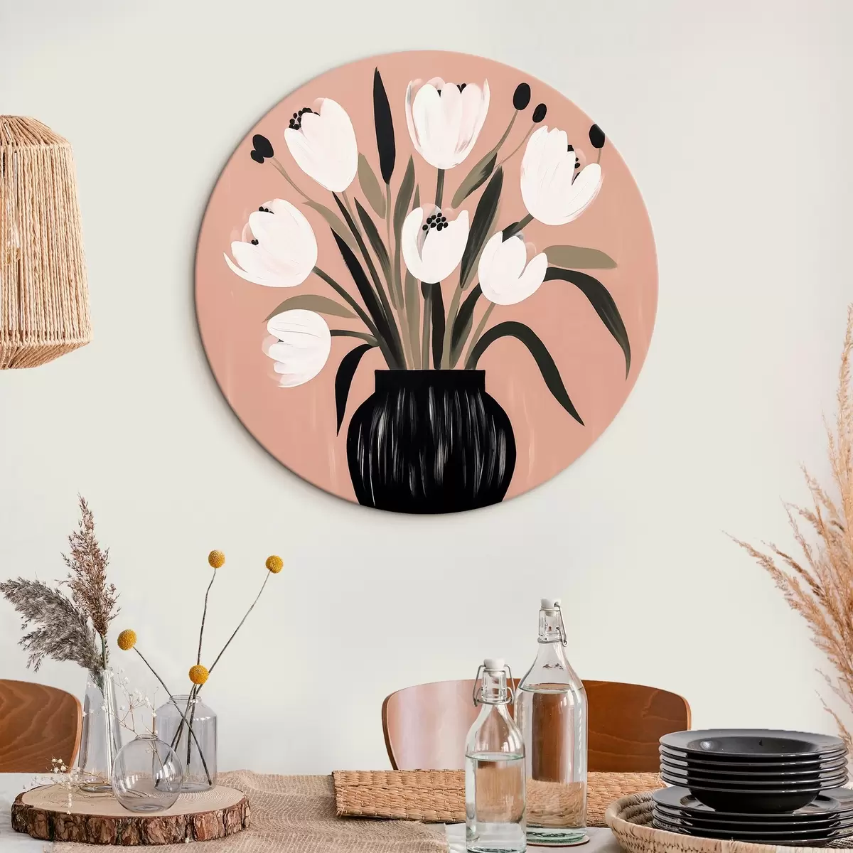 Cuadros redondos Tulipanes en un jarrón r44779