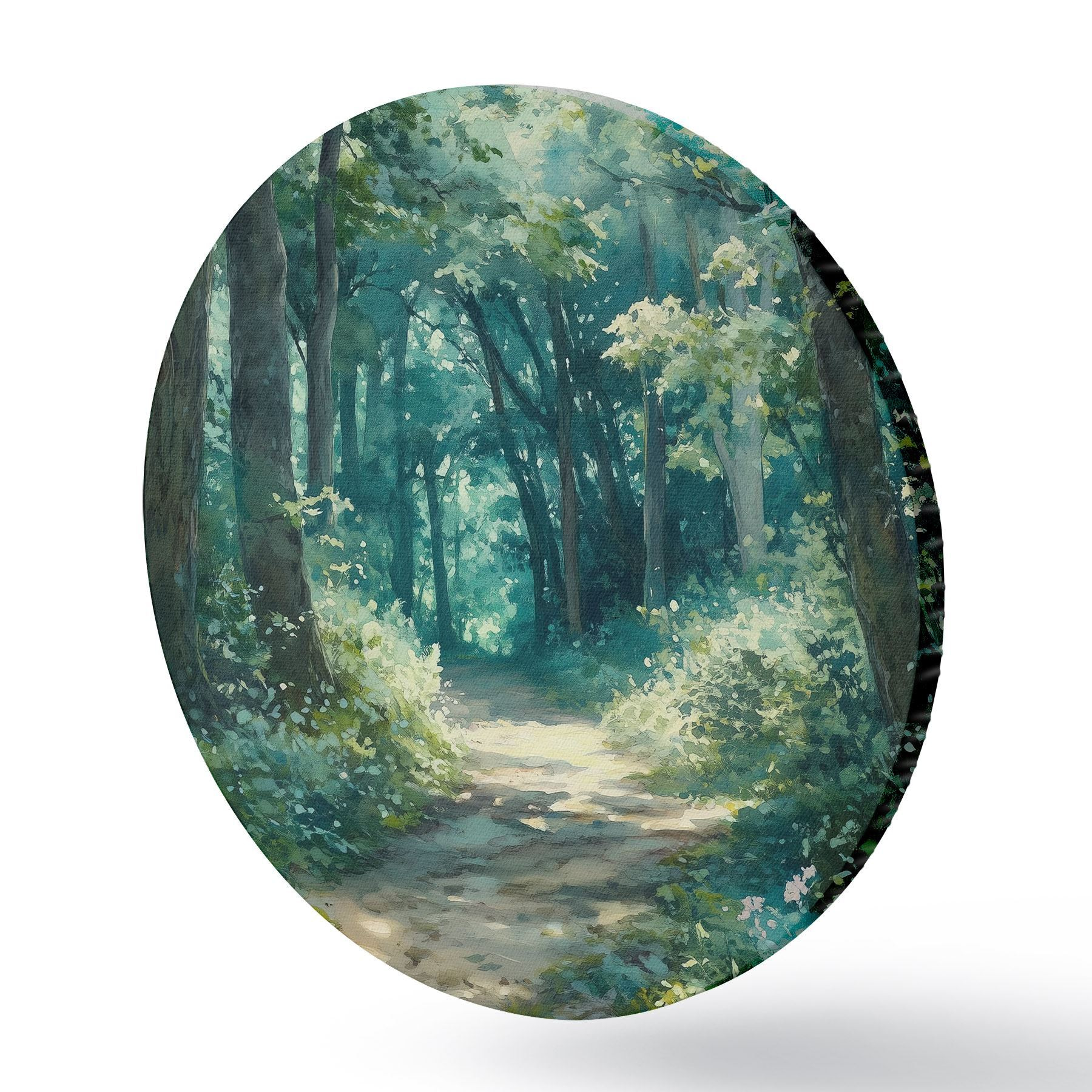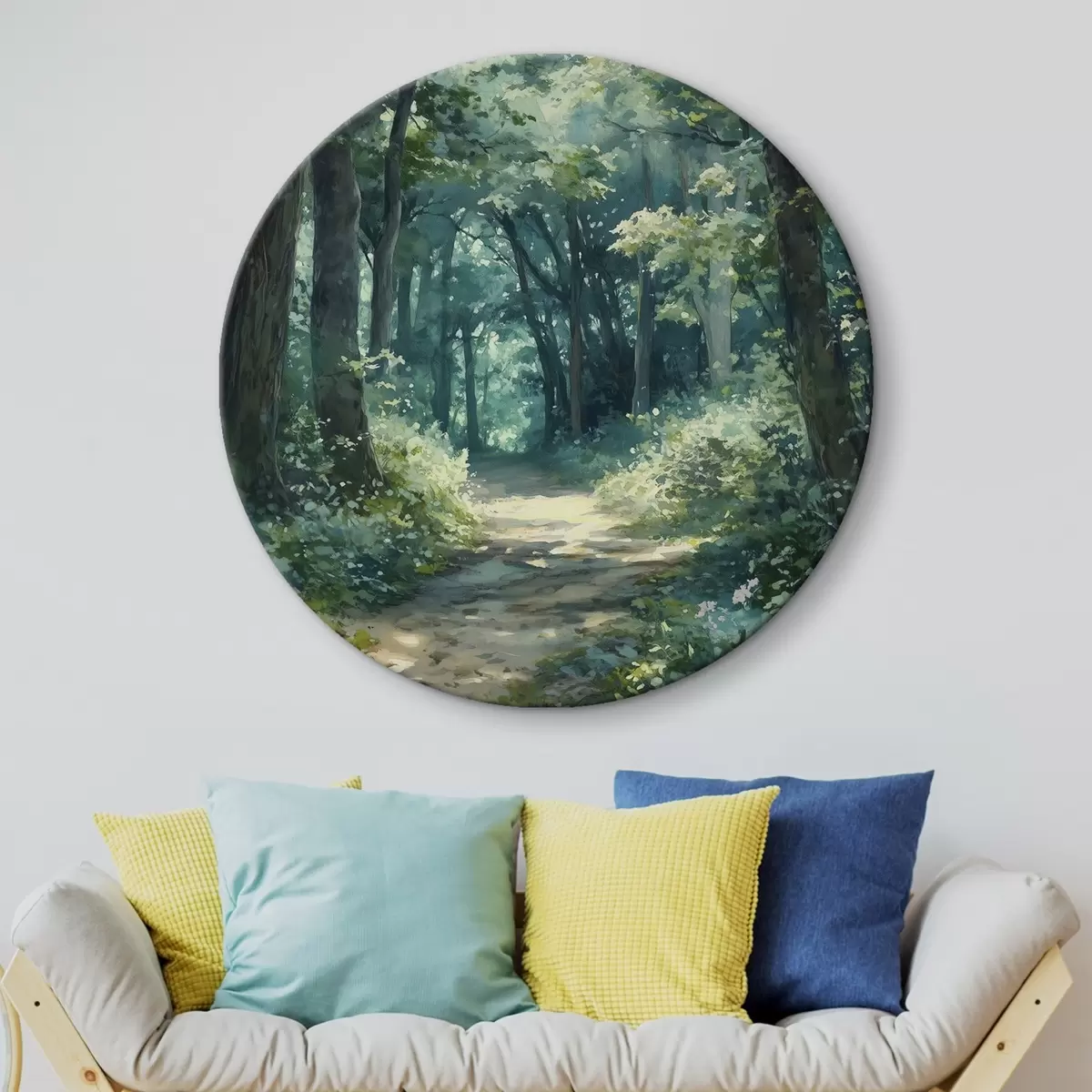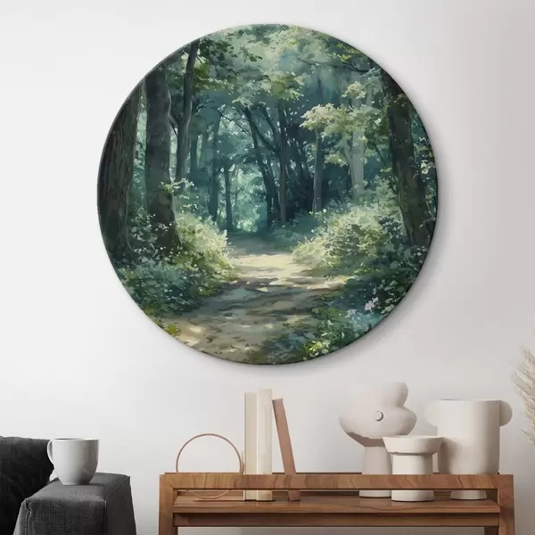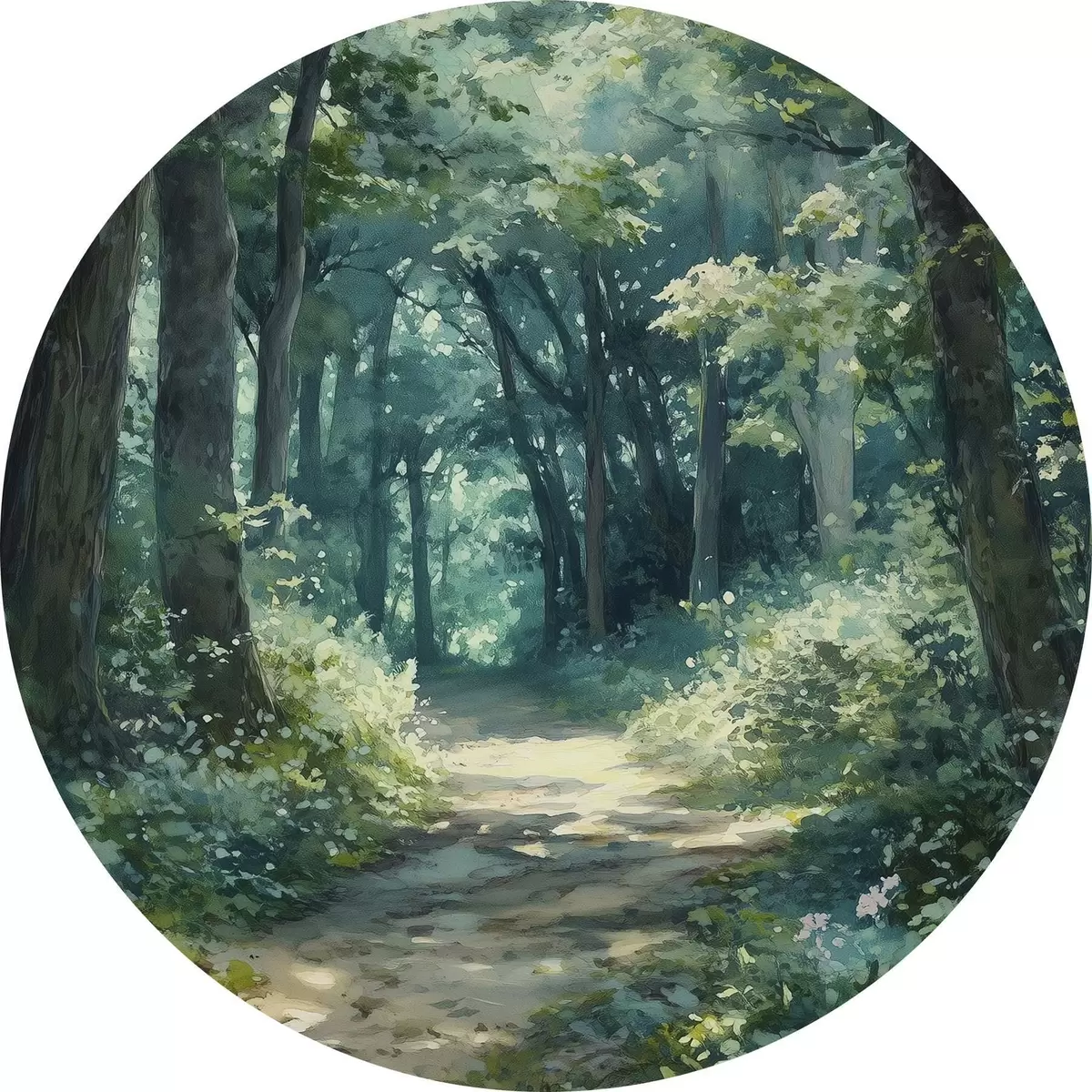 Cuadros redondos Bosque verde con árboles y luz solar r44784