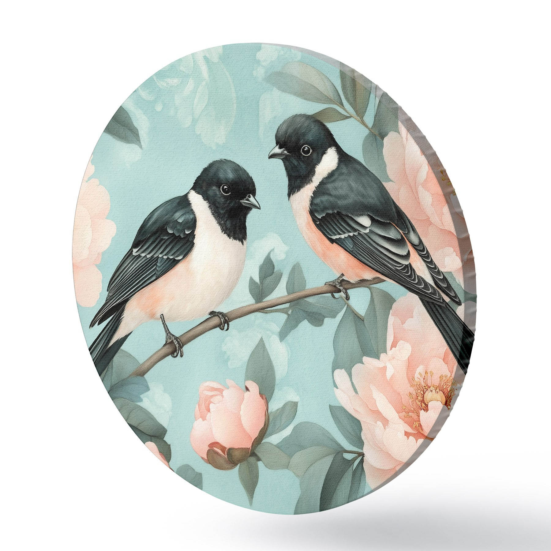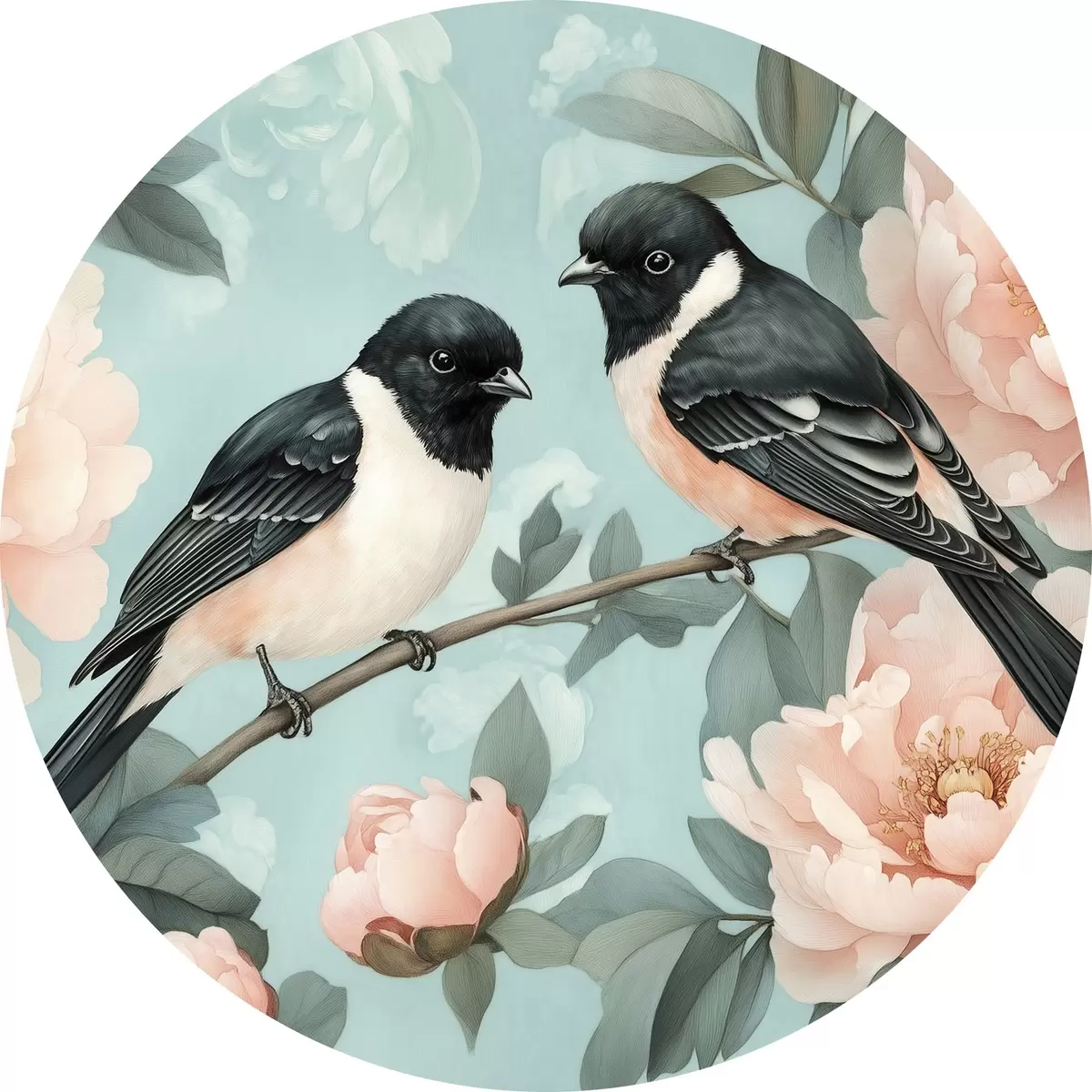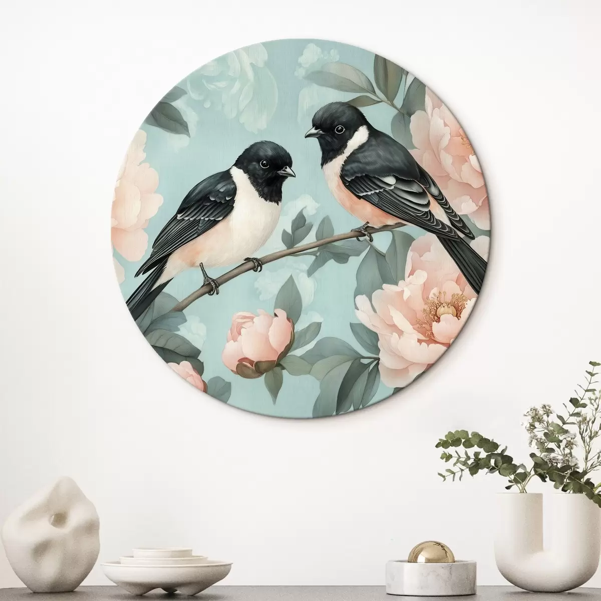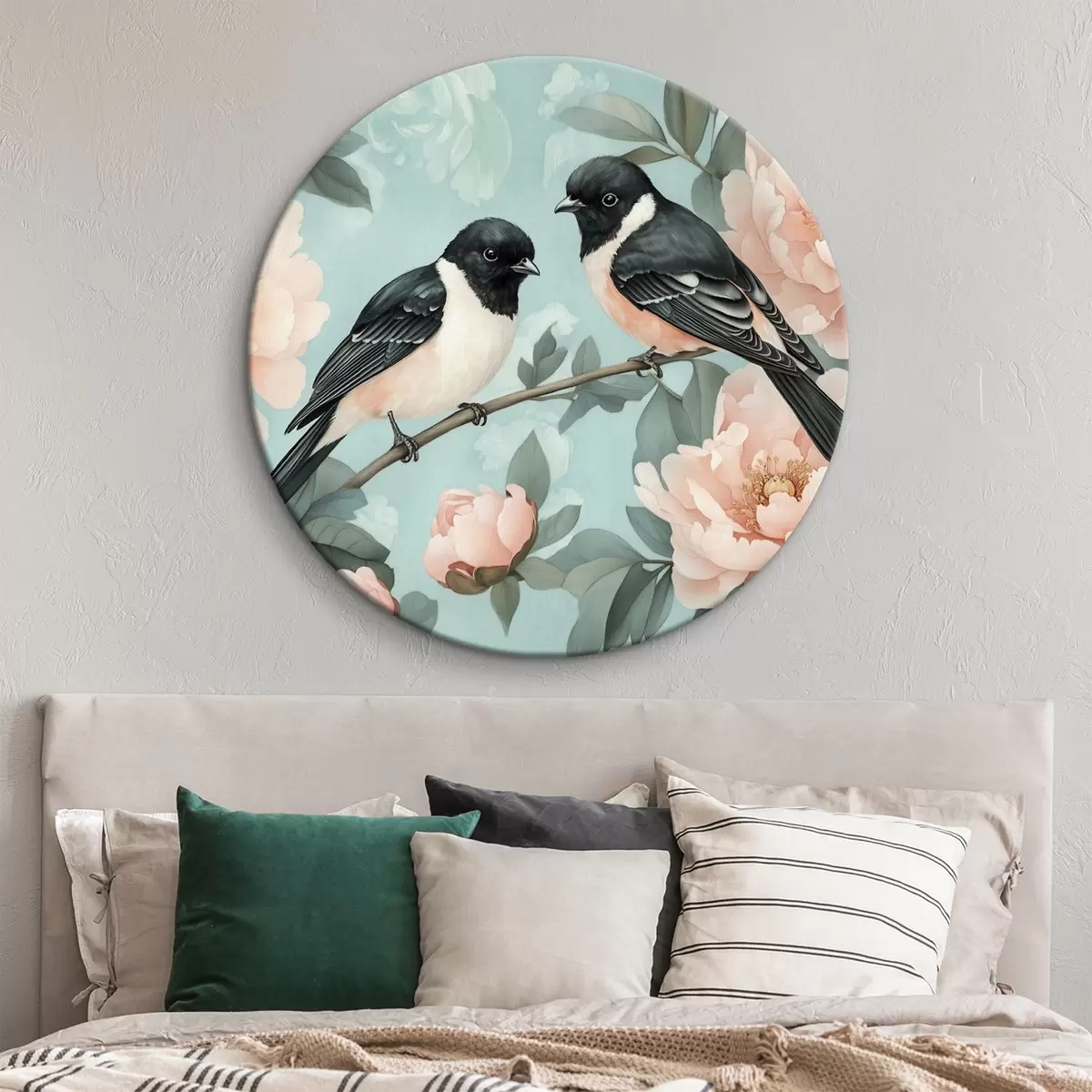 Cuadros redondos Dos pájaros en la rama con peonías r44786