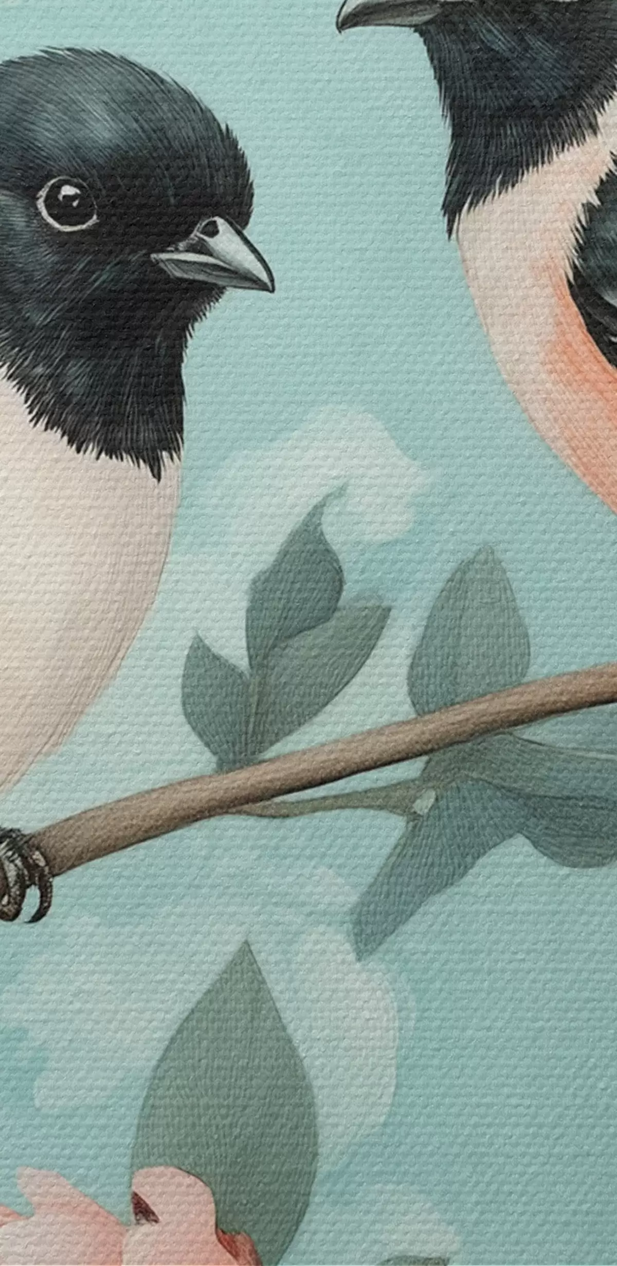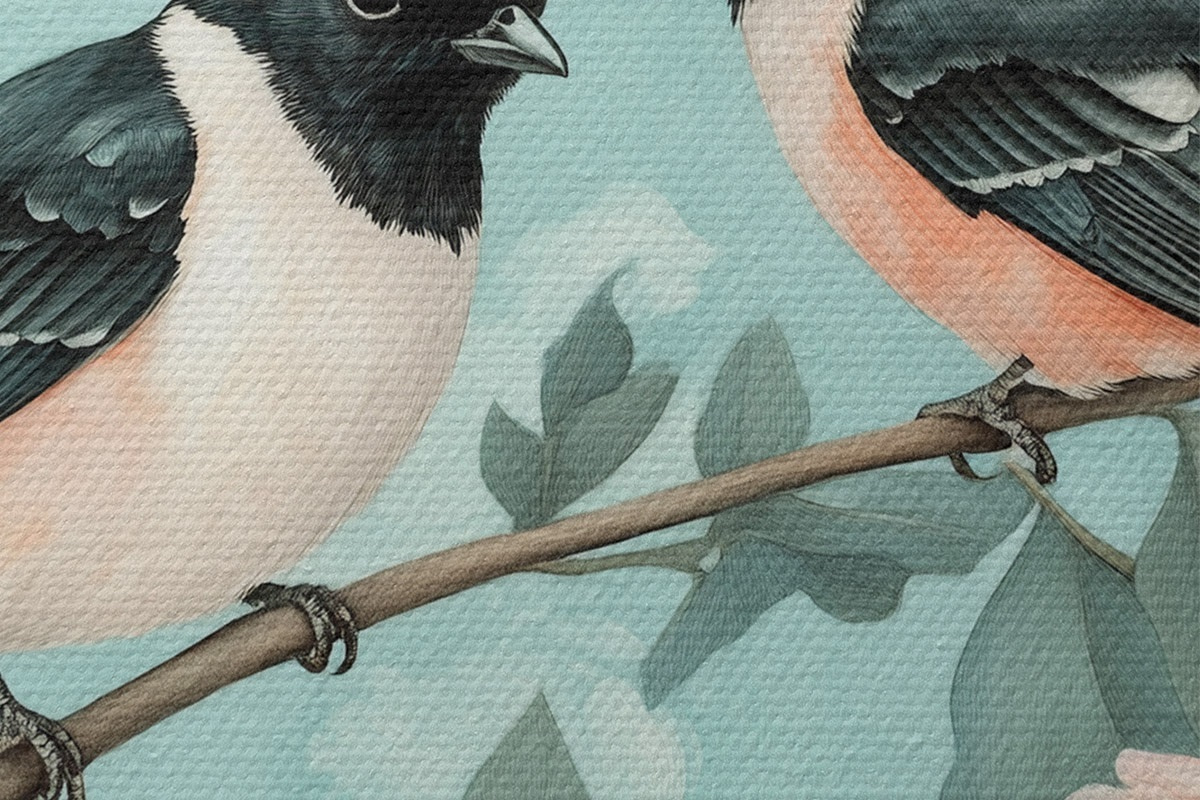 Foto Dos pájaros en la rama con peonías Nr r44786