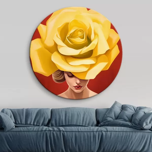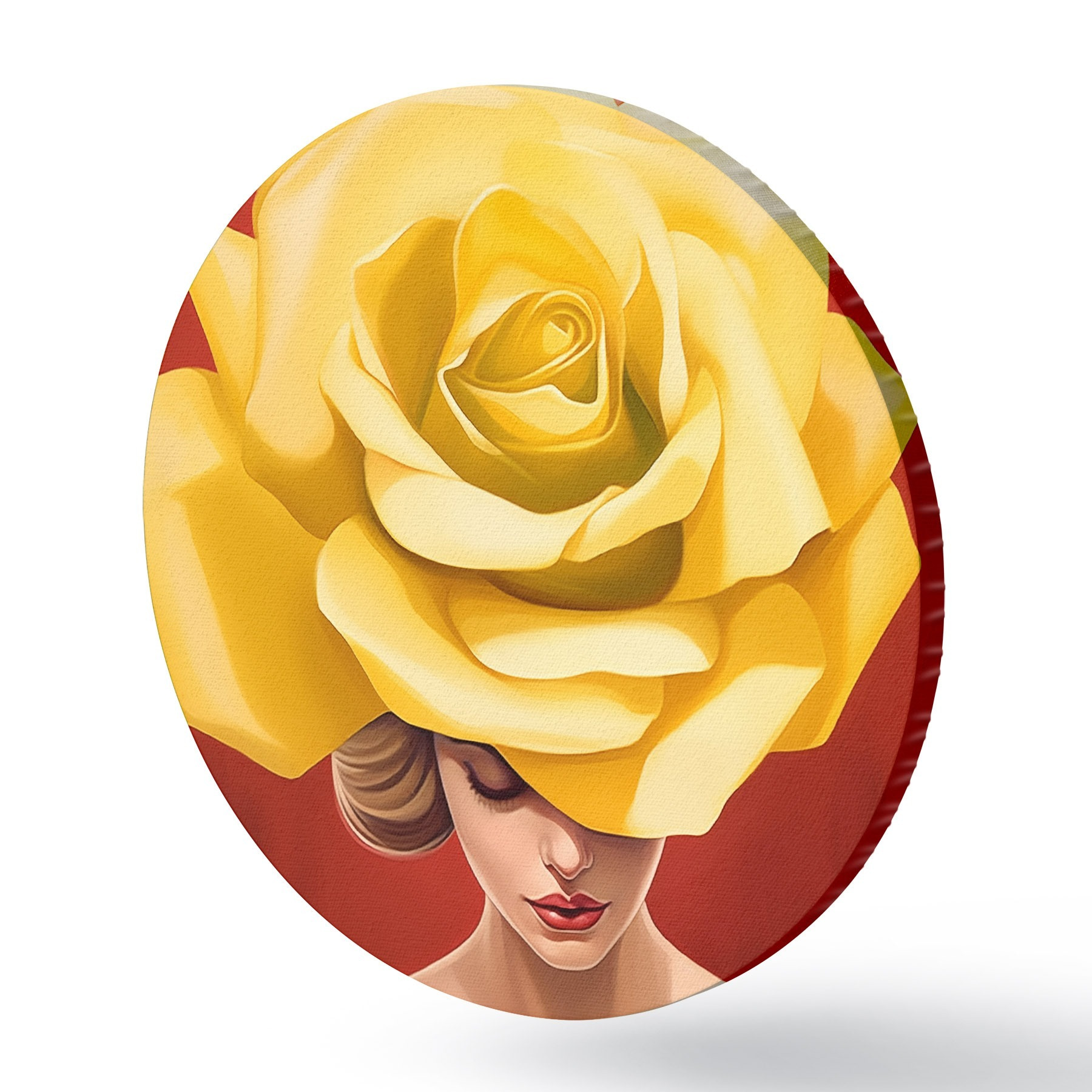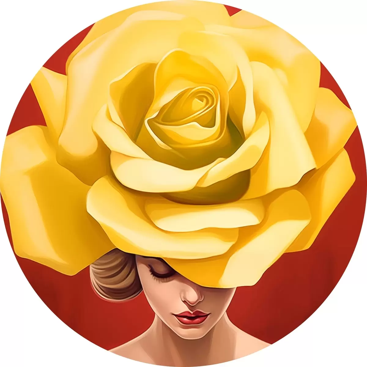 Cuadros redondos Mujer con sombrero rosa amarillo r44800