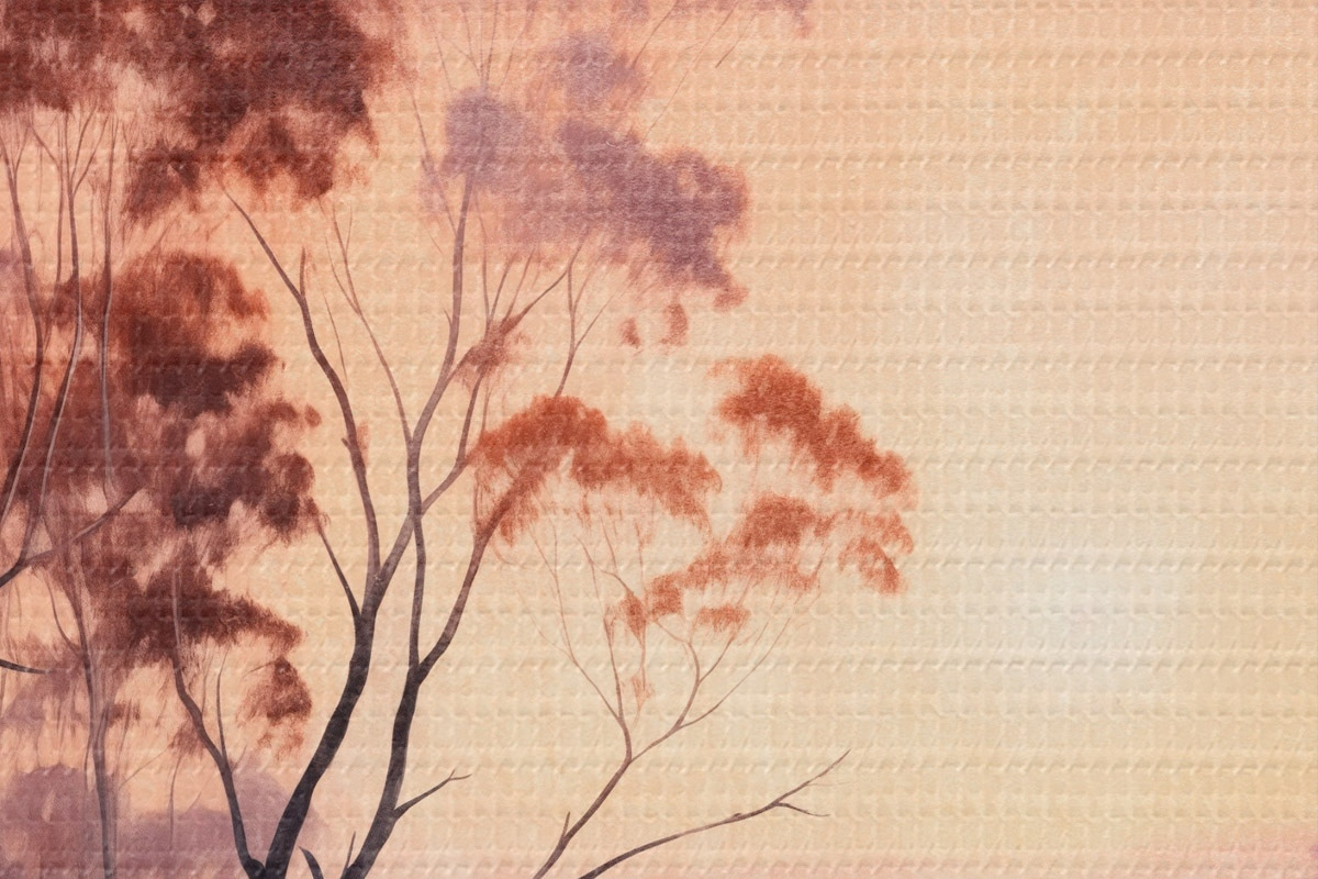 Foto Un paisaje pintado de un campo con hierba alta y árboles, el sol está en el fondo Nr r44854