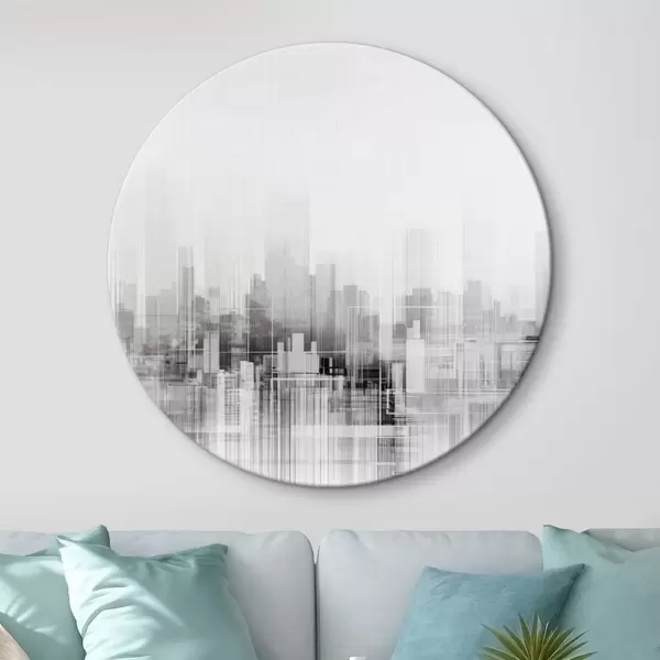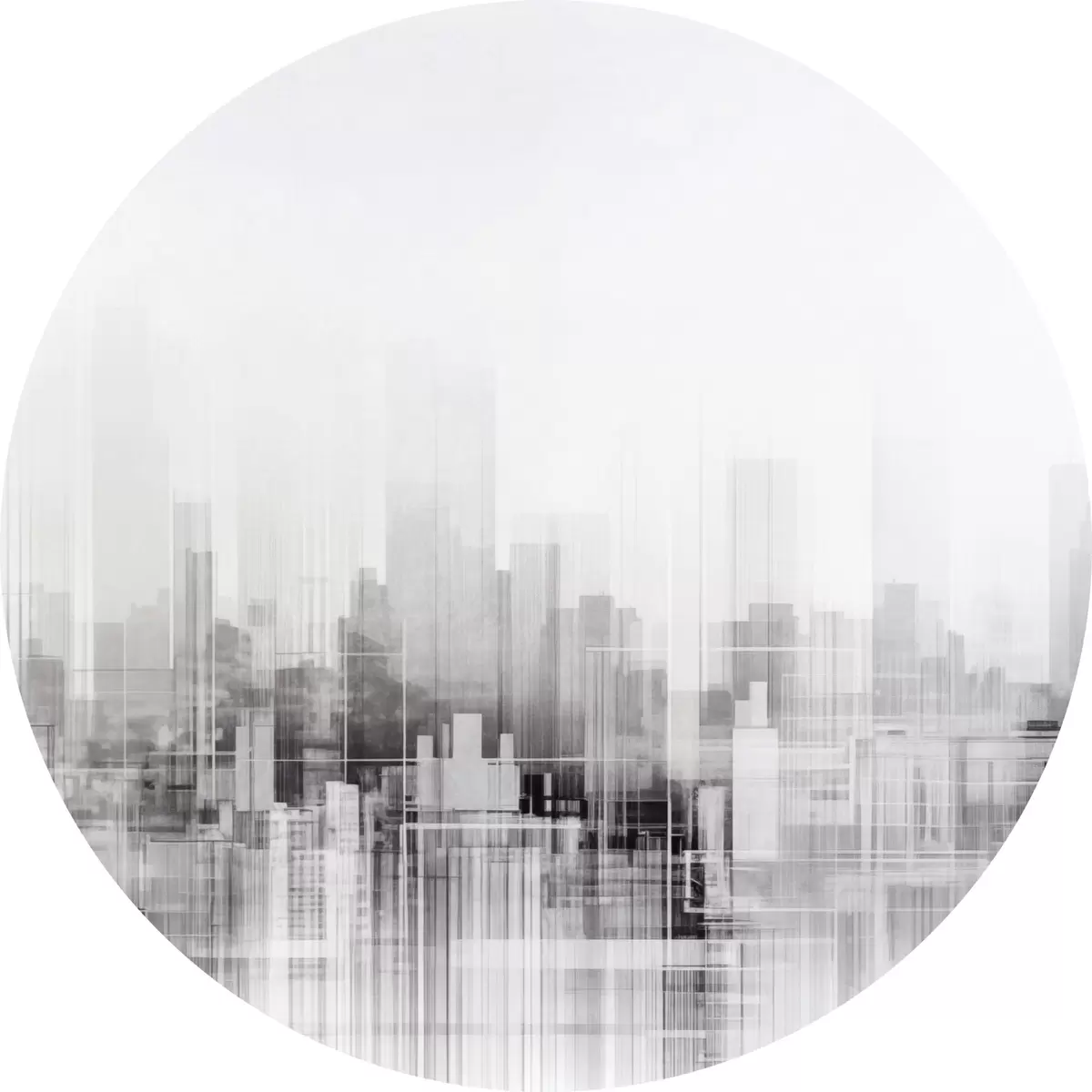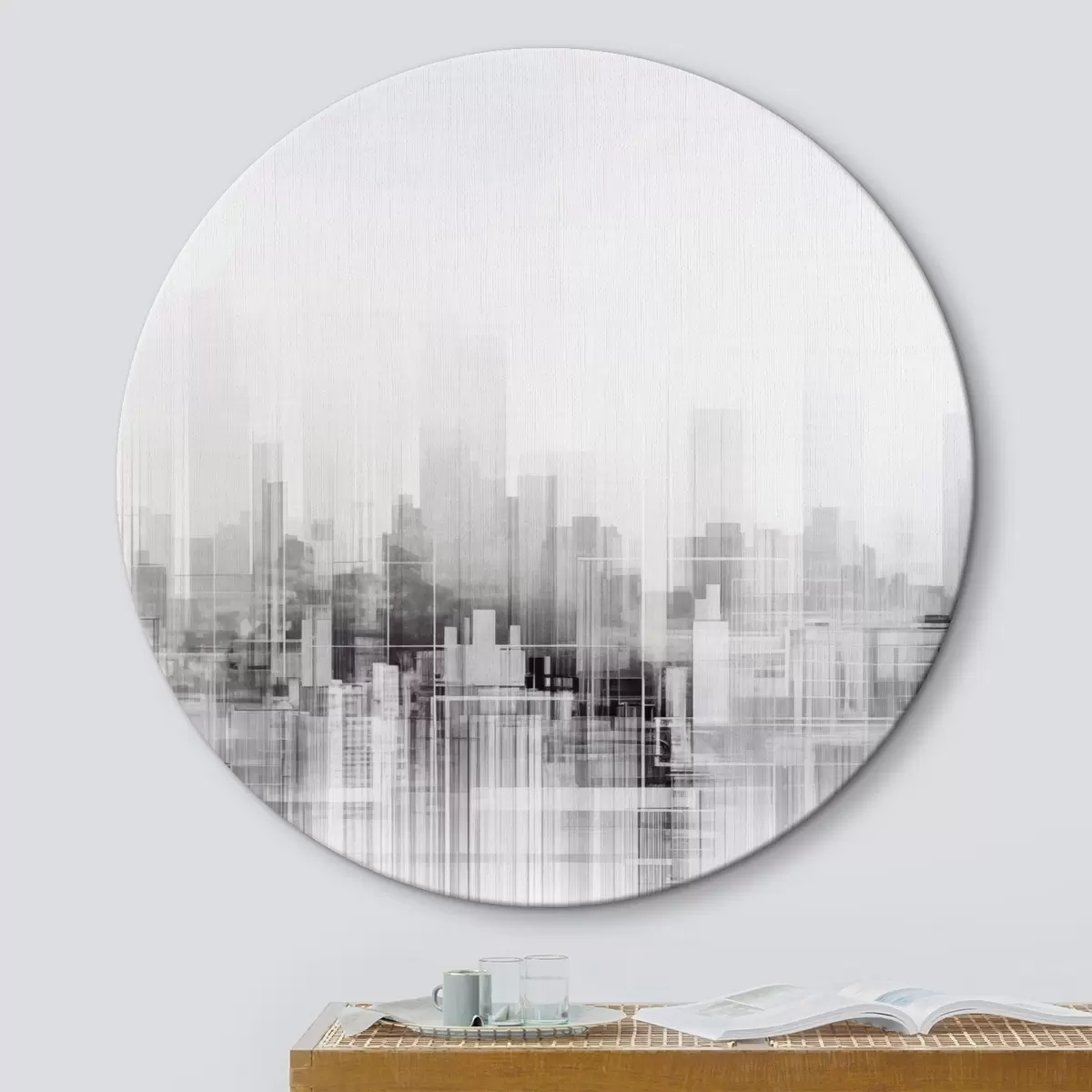 Cuadros redondos Paisaje urbano minimalista texturizado con edificios altos y rascacielos, silueteados contra un cielo blanco r44863