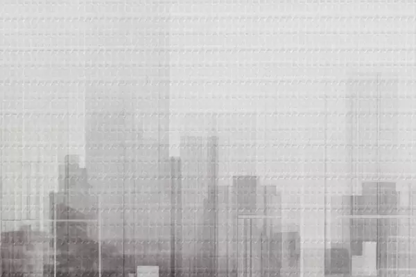 Foto Paisaje urbano minimalista texturizado con edificios altos y rascacielos, silueteados contra un cielo blanco Nr r44863