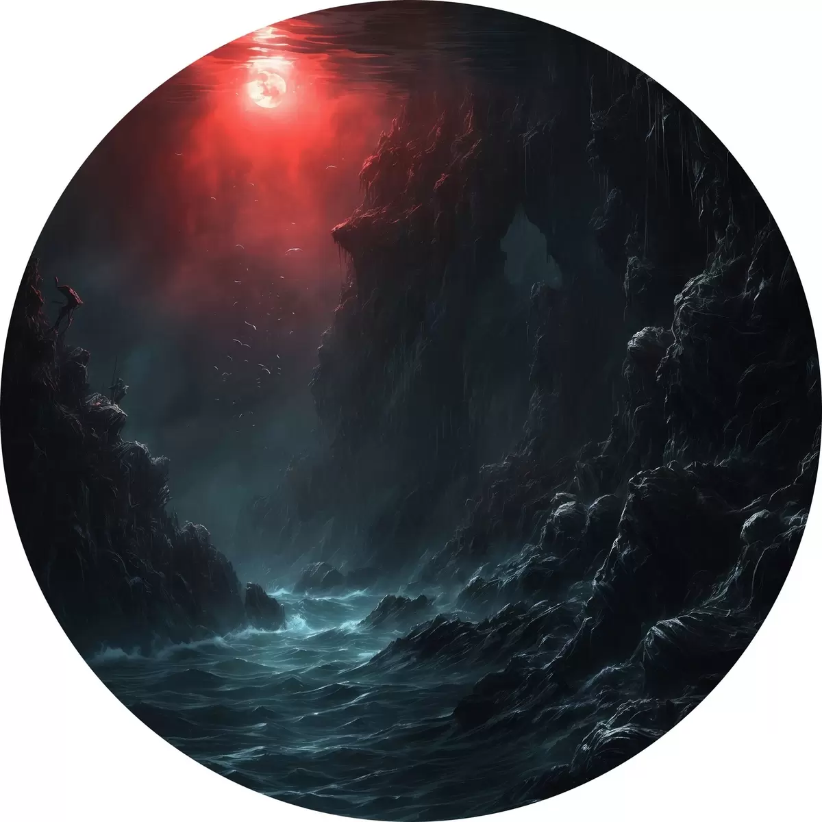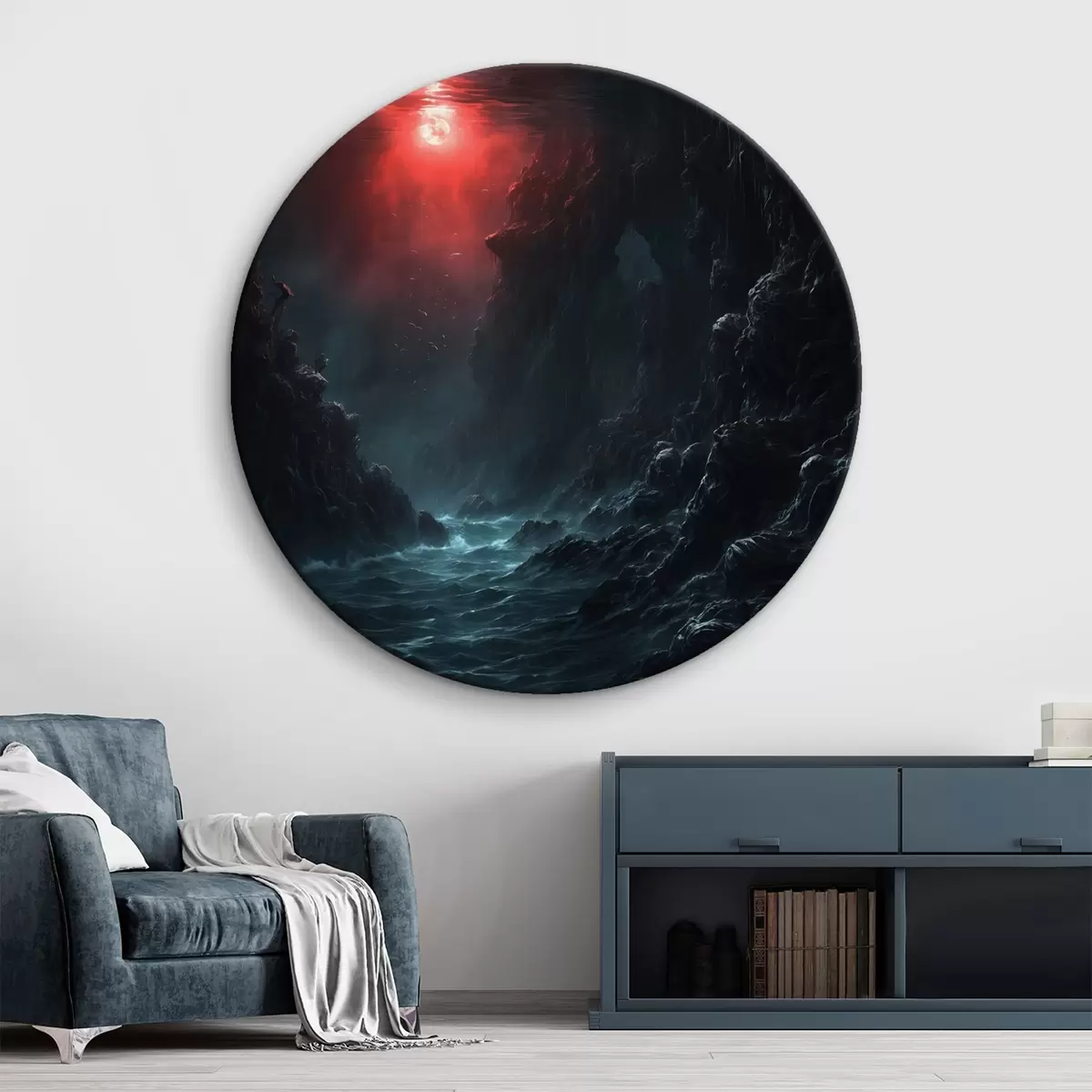 Cuadros redondos Oscuro desfiladero marino con luz roja desde arriba r44870
