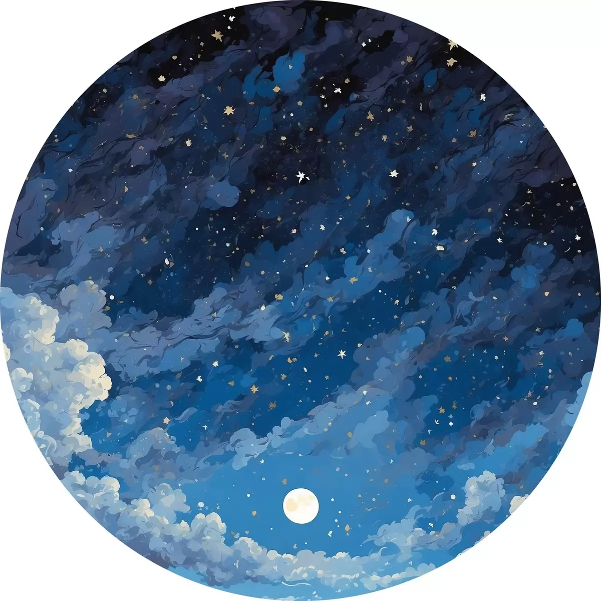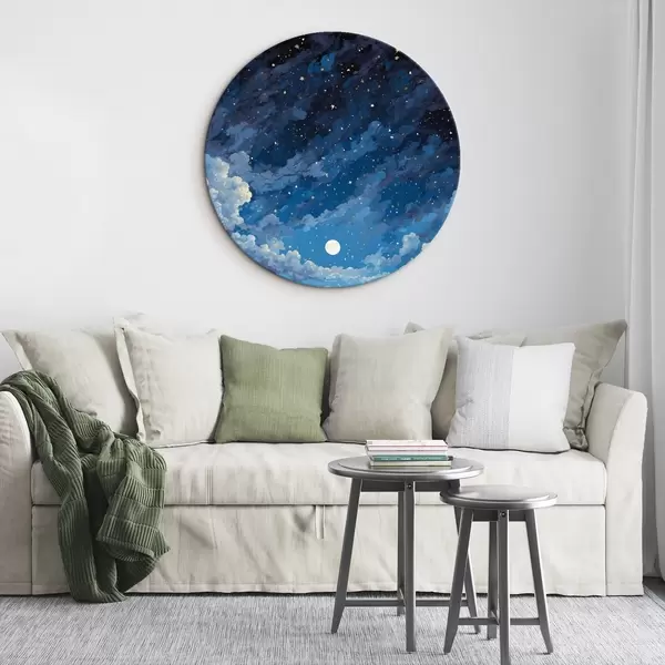 Cuadros redondos Cielo nocturno con luna y estrellas sobre paisaje de montaña r44872