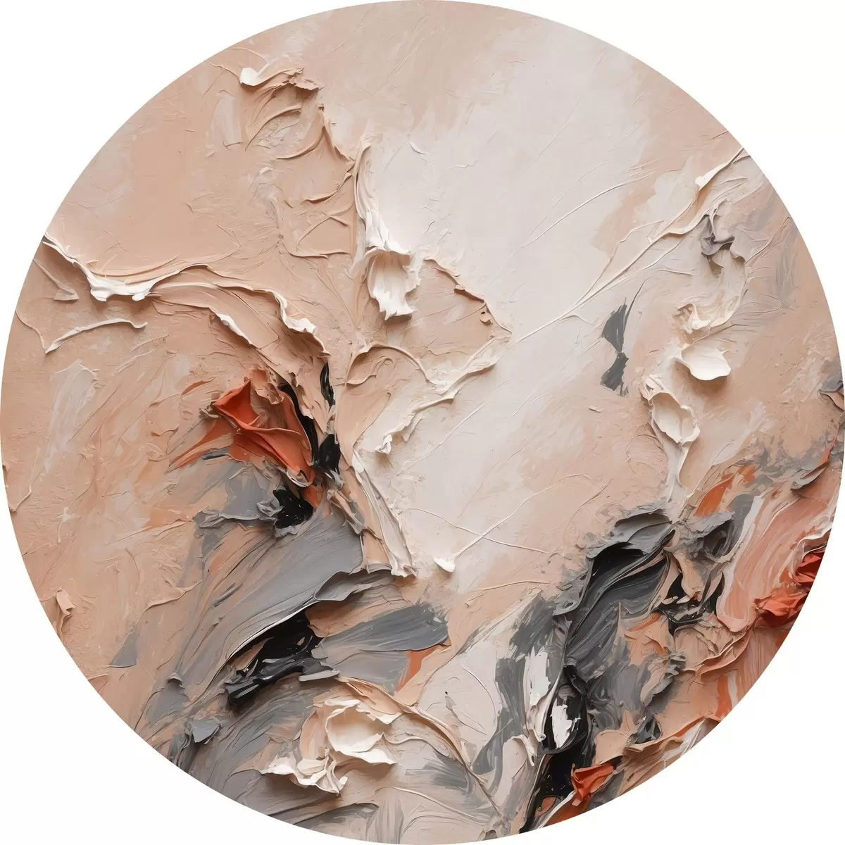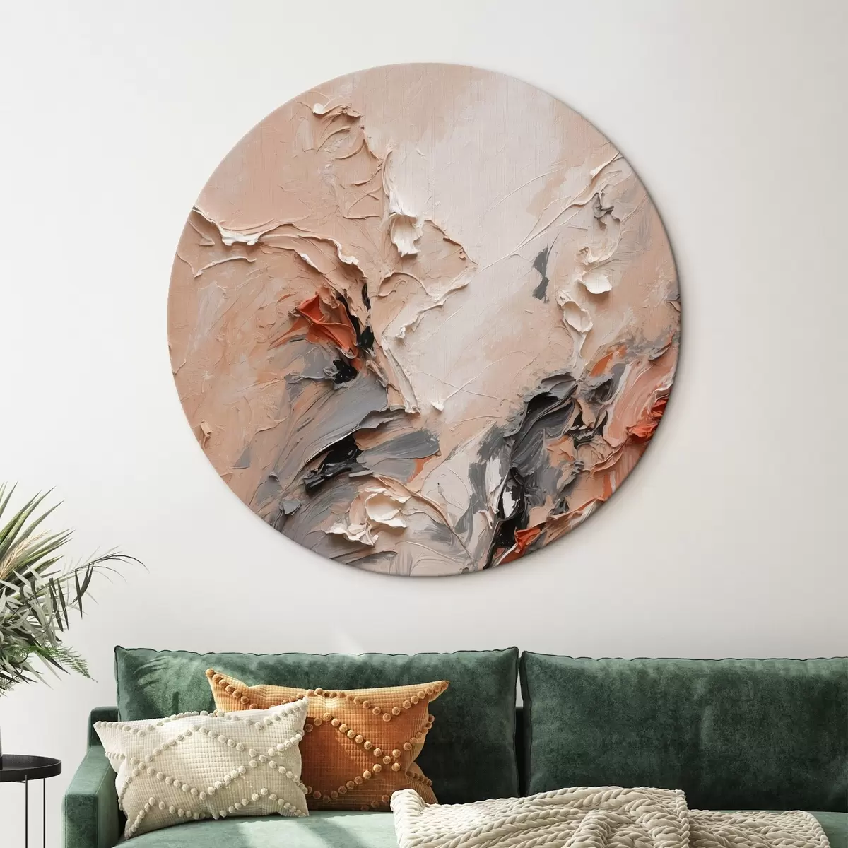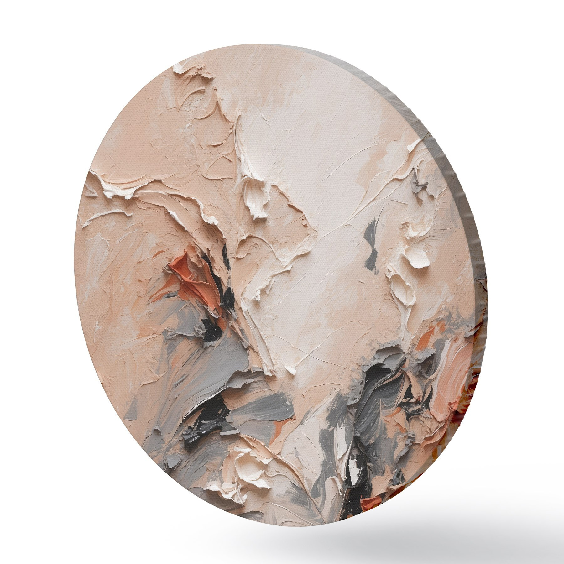 Cuadros redondos Abstracto en tonos grises melocotón con trazos texturados r44873