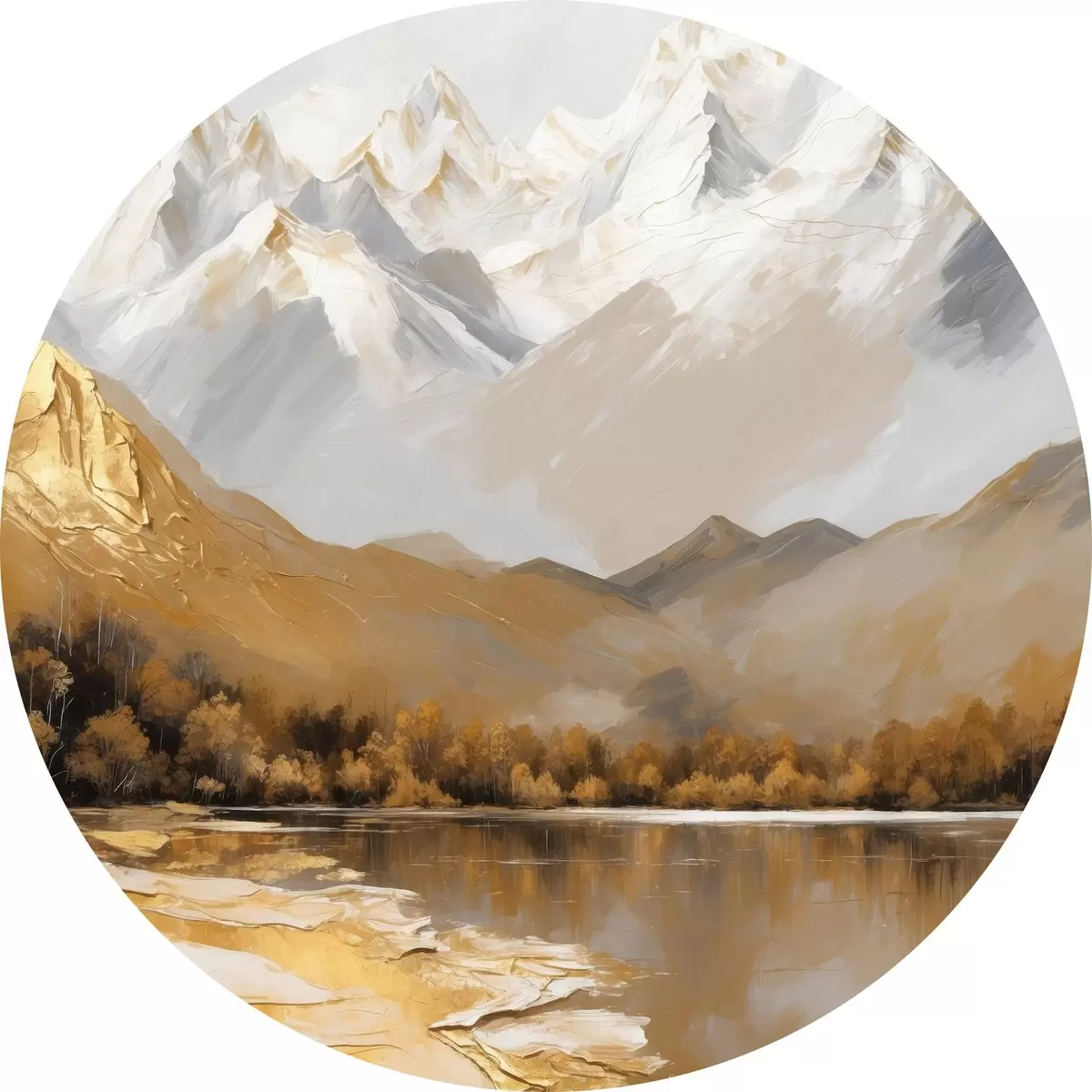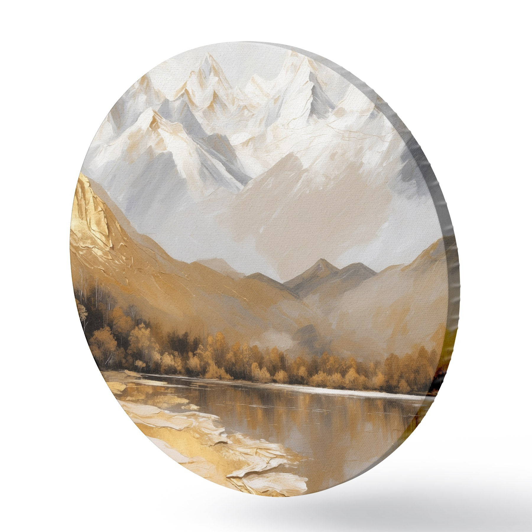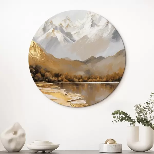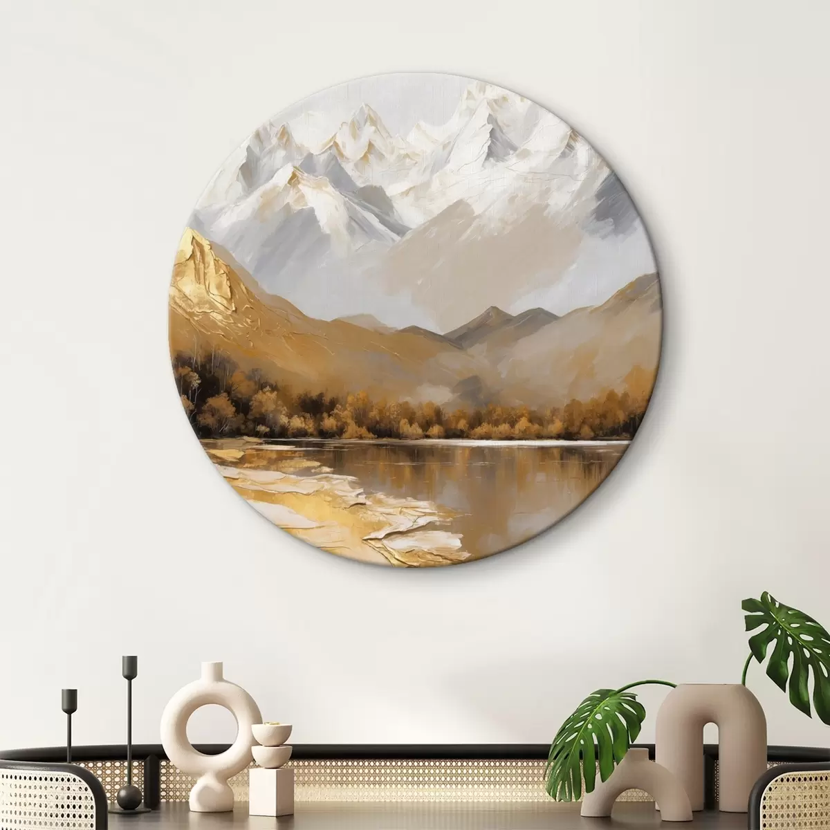 Cuadros redondos Paisaje de montaña con un lago en colores cálidos r44877