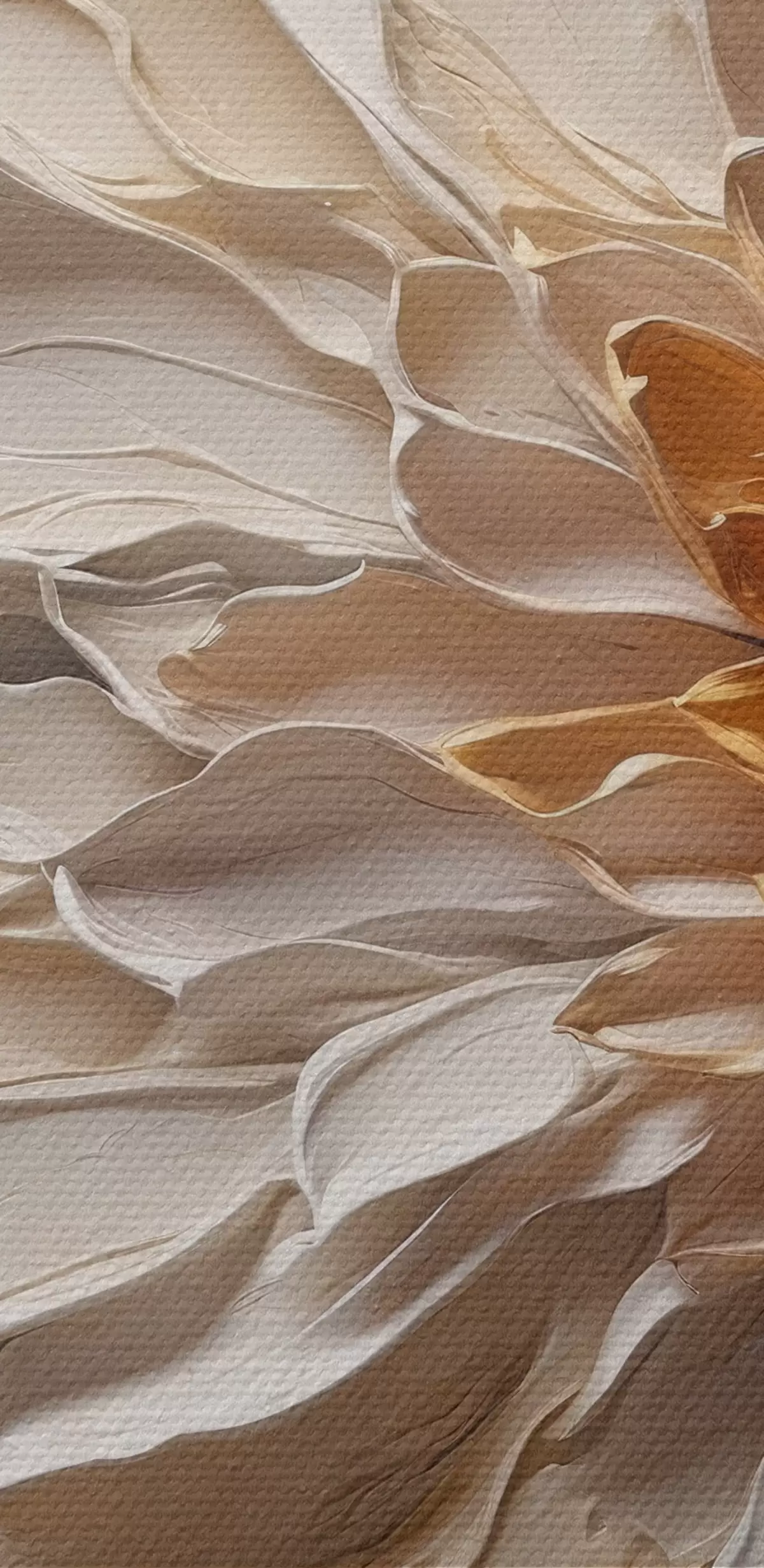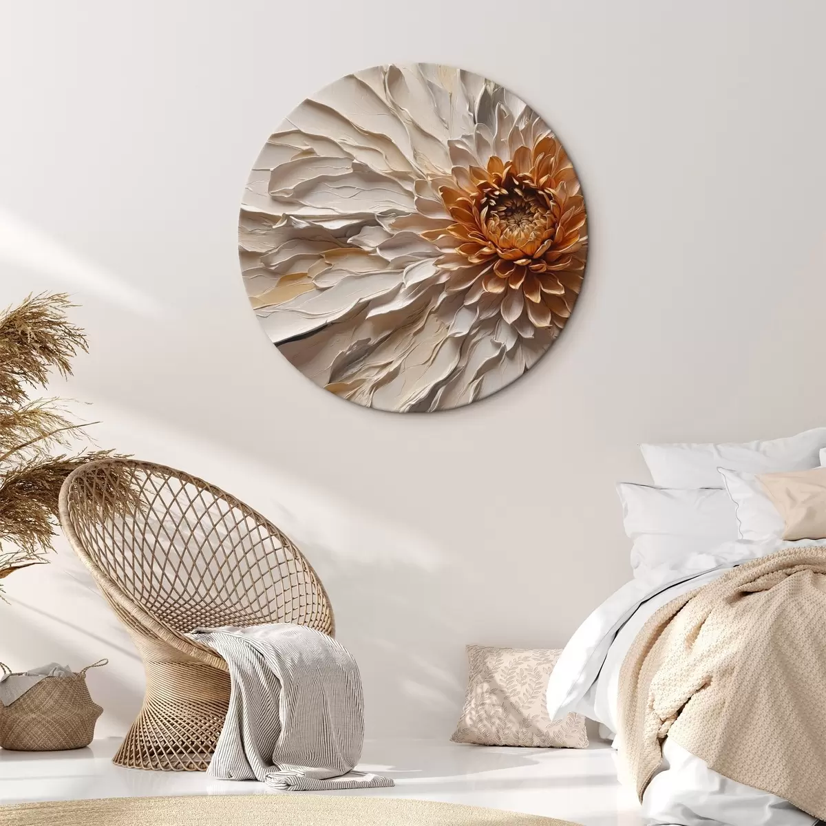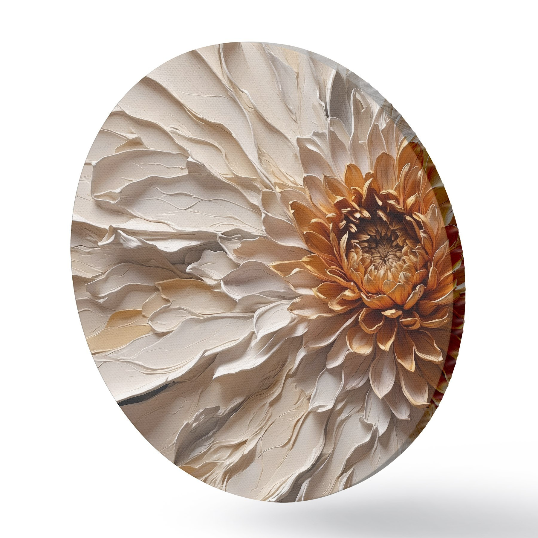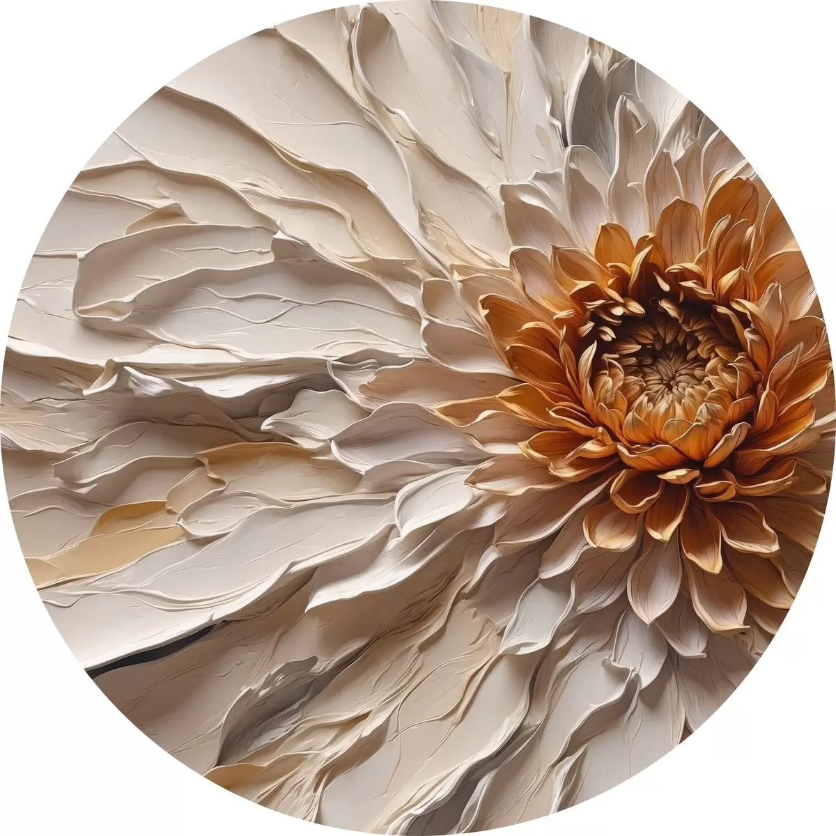 Cuadros redondos Flor volumétrica de pétalos cremosos y núcleo cálido r44878