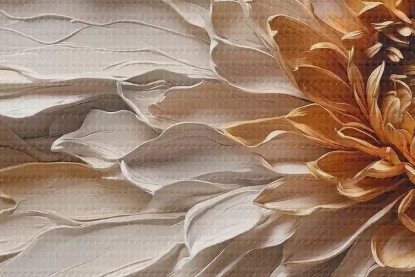 Cuadros redondos Flor volumétrica de pétalos cremosos y núcleo cálido r44878