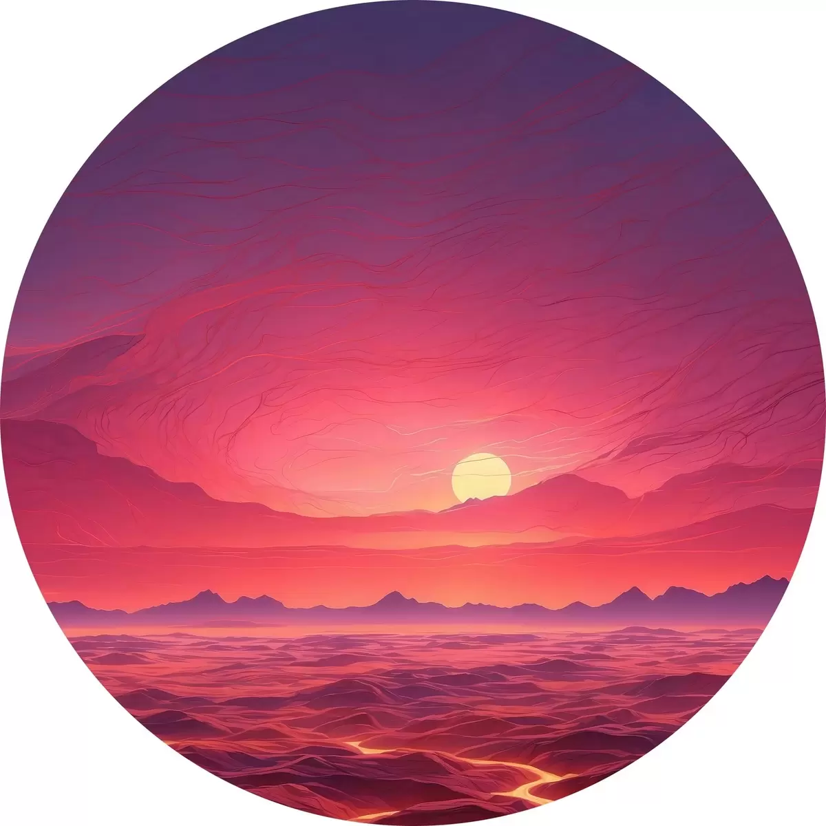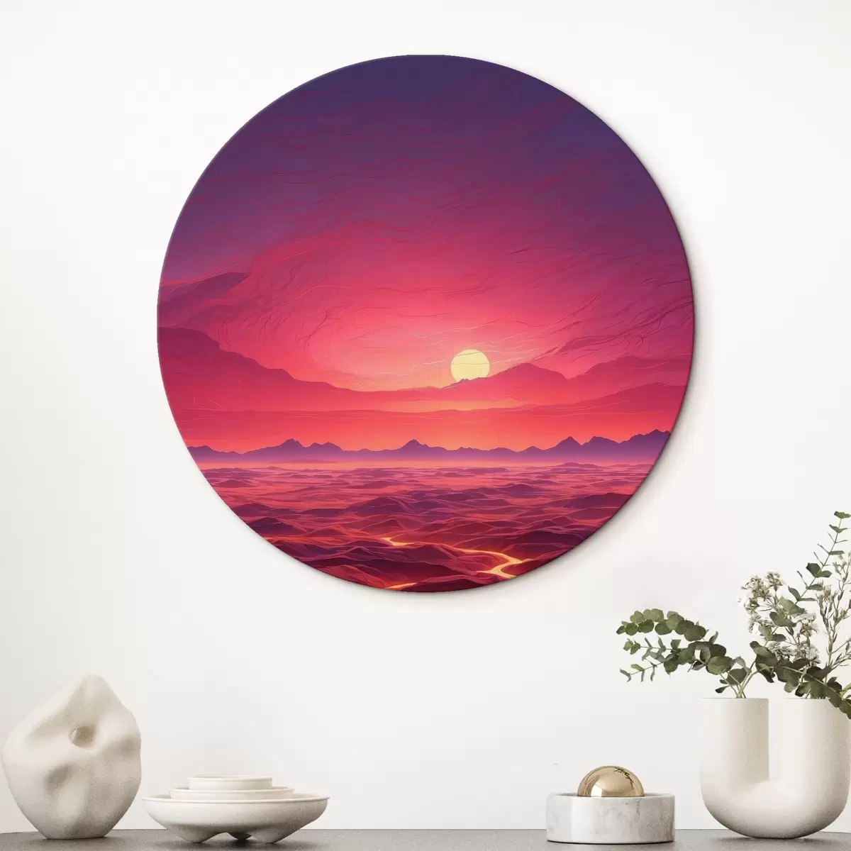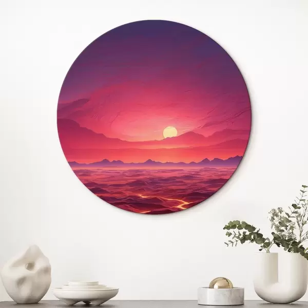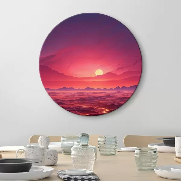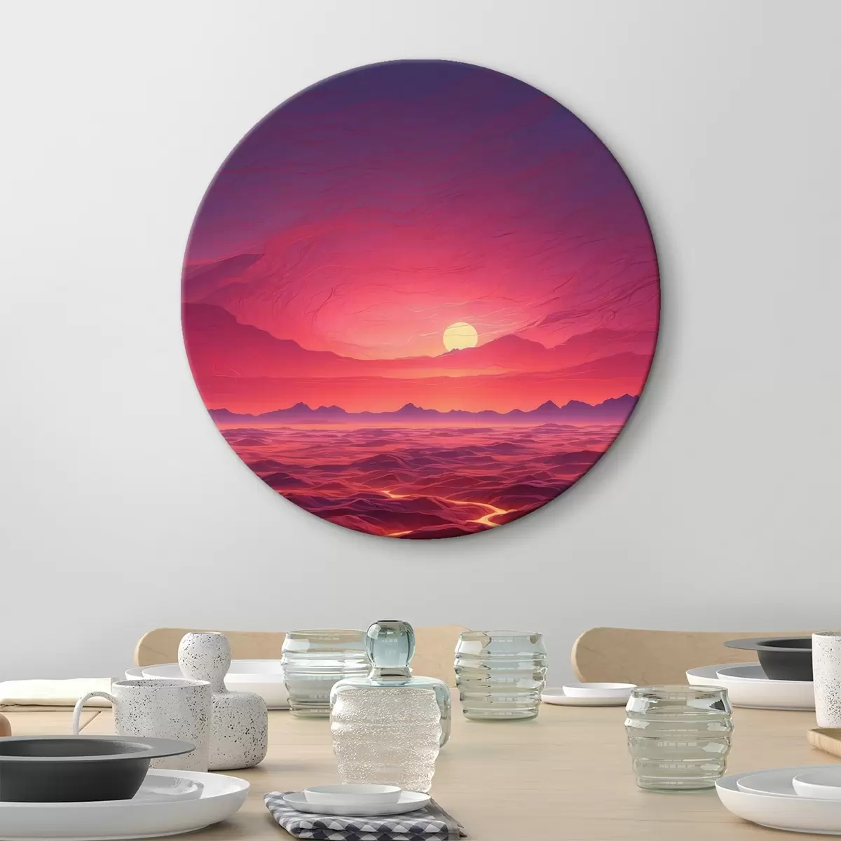 Cuadros redondos Paisaje caliente con coladas de lava bajo un cielo rojo r44886