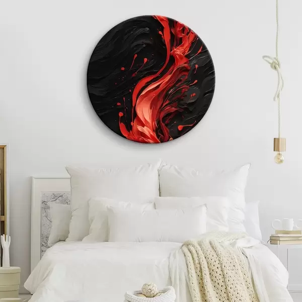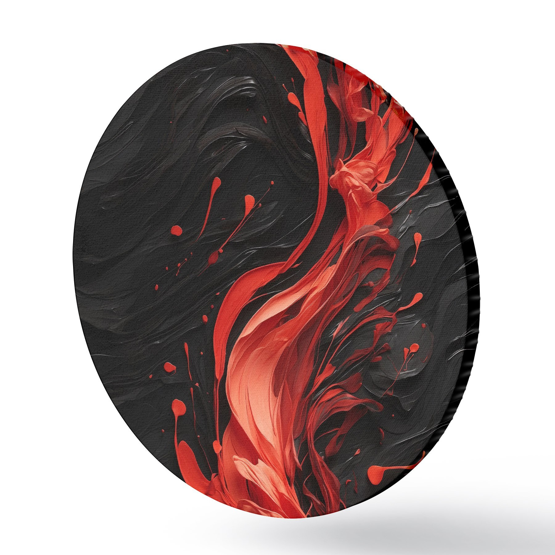 Cuadros redondos Chorro de pintura roja sobre fondo negro abstracto r44889