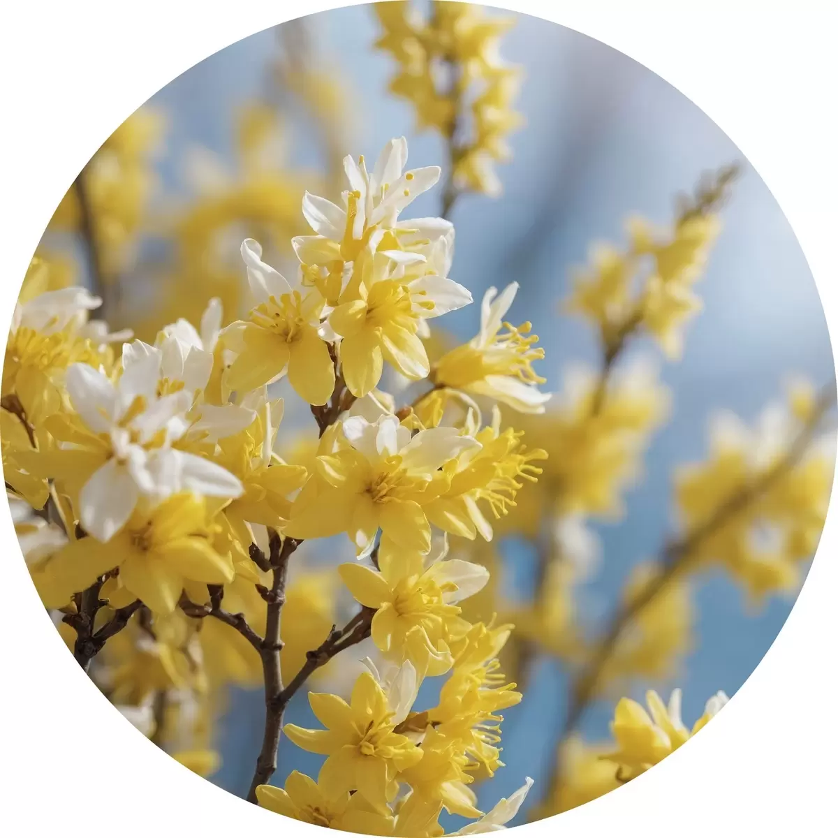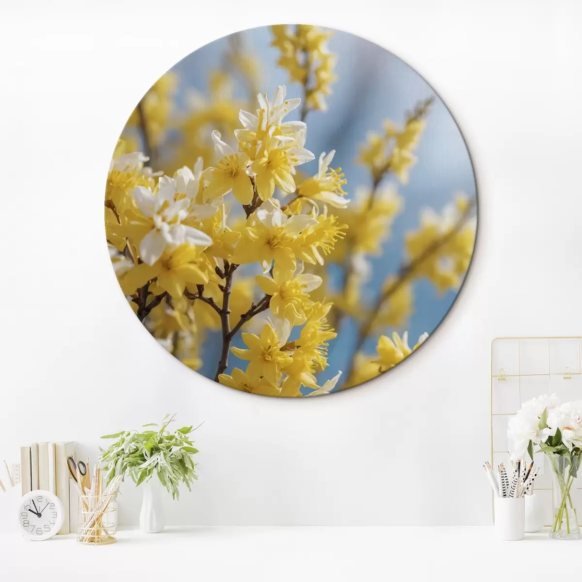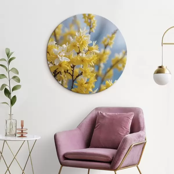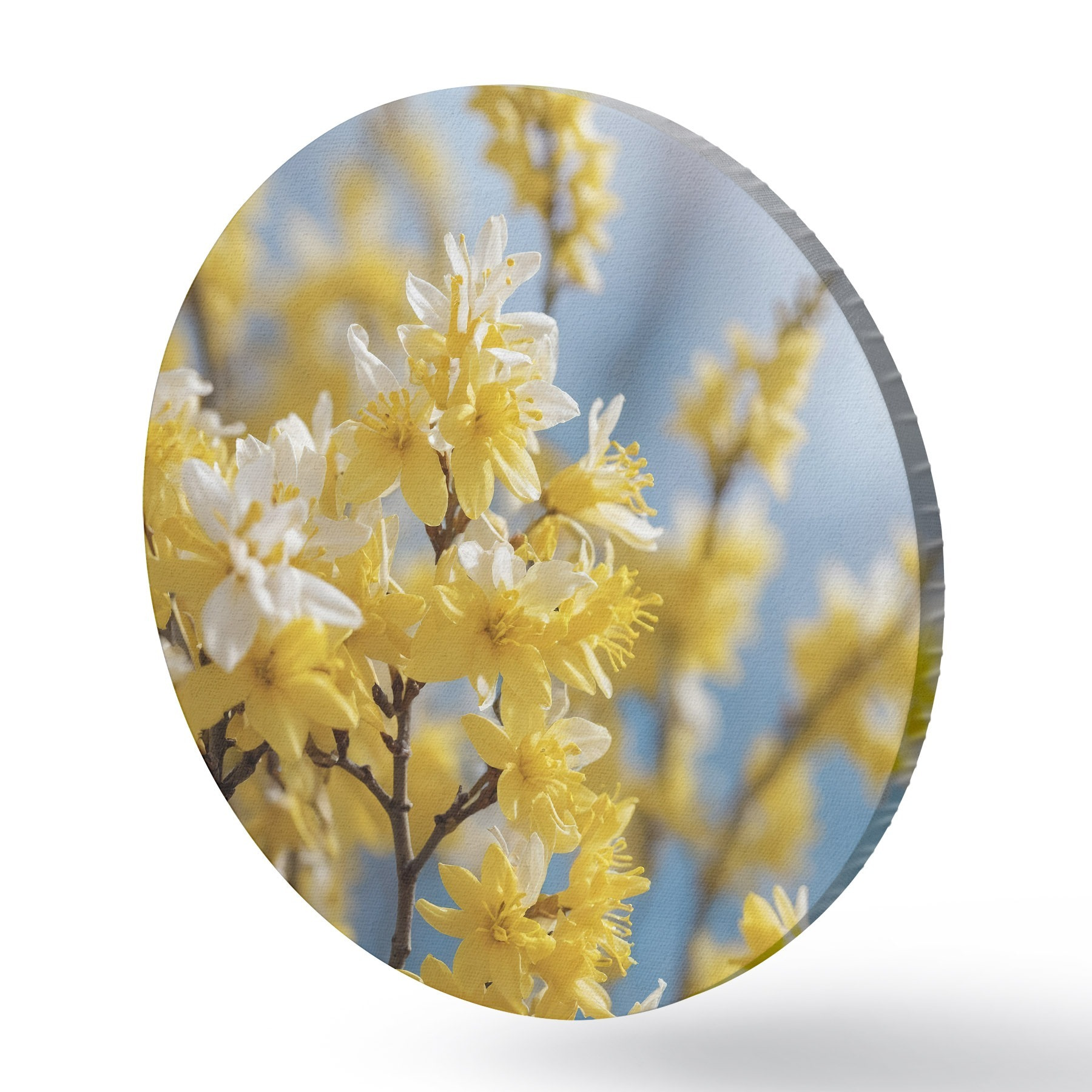 Cuadros redondos Flores amarillas sobre fondo azul con enfoque suave r44894