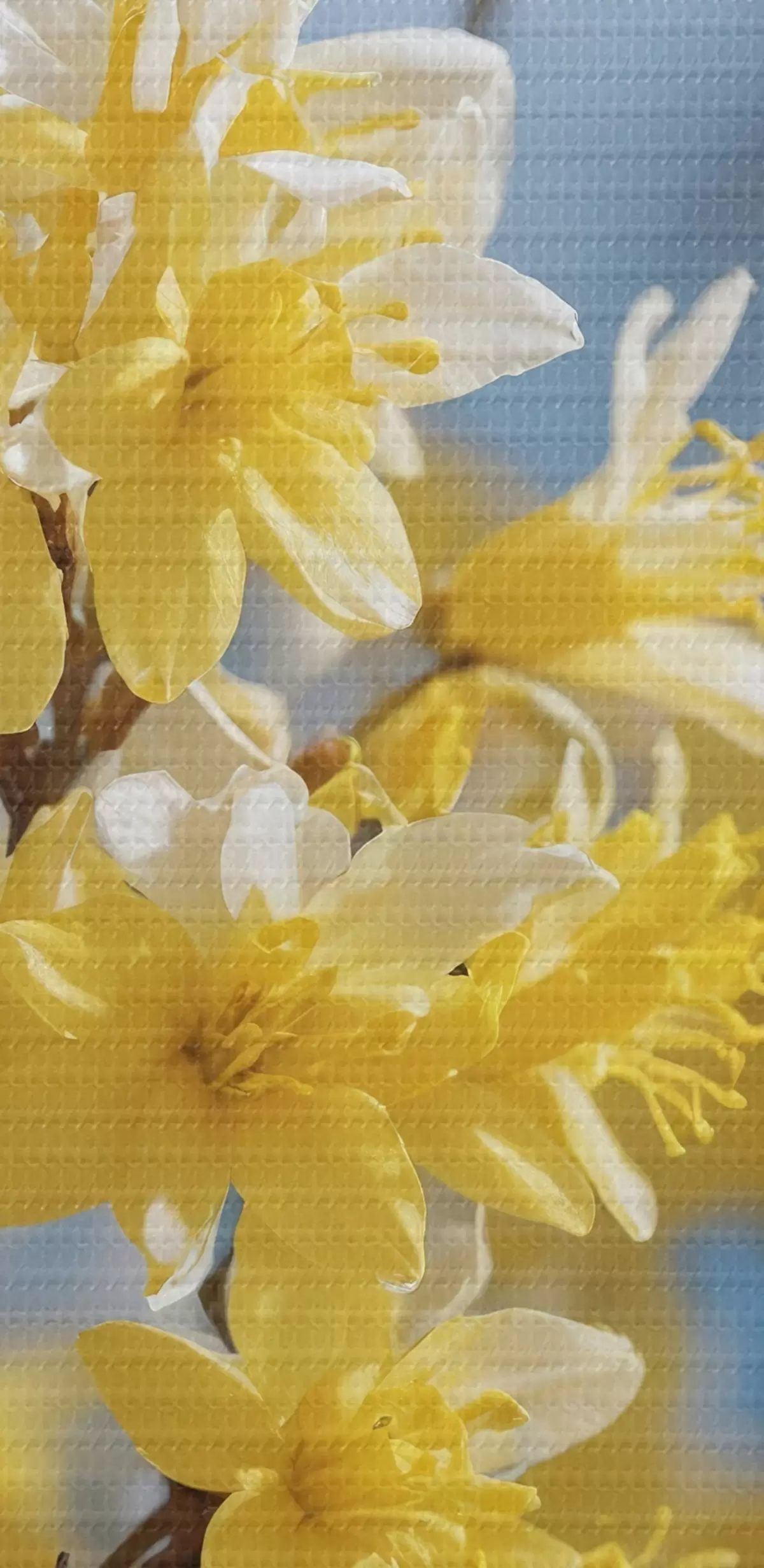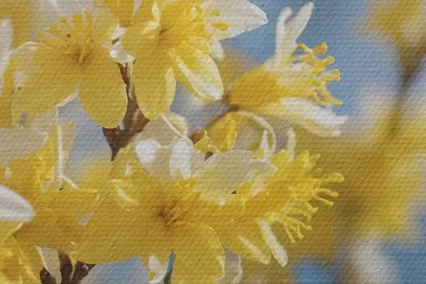 Foto Flores amarillas sobre fondo azul con enfoque suave Nr r44894