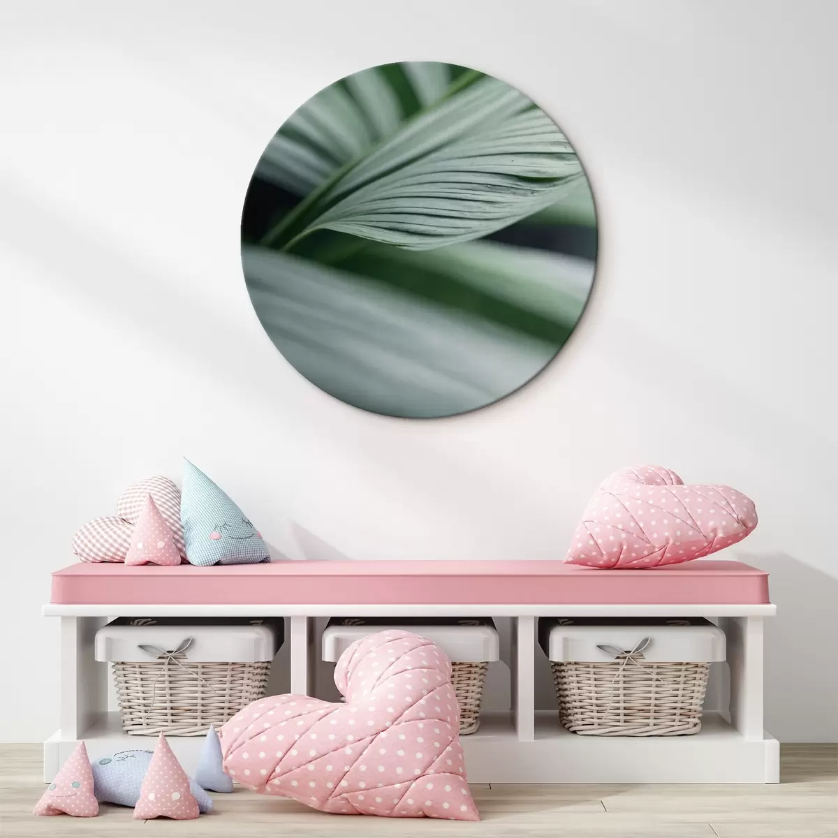 Cuadros redondos Hojas tropicales con gotas de agua en un ambiente brumoso r44903