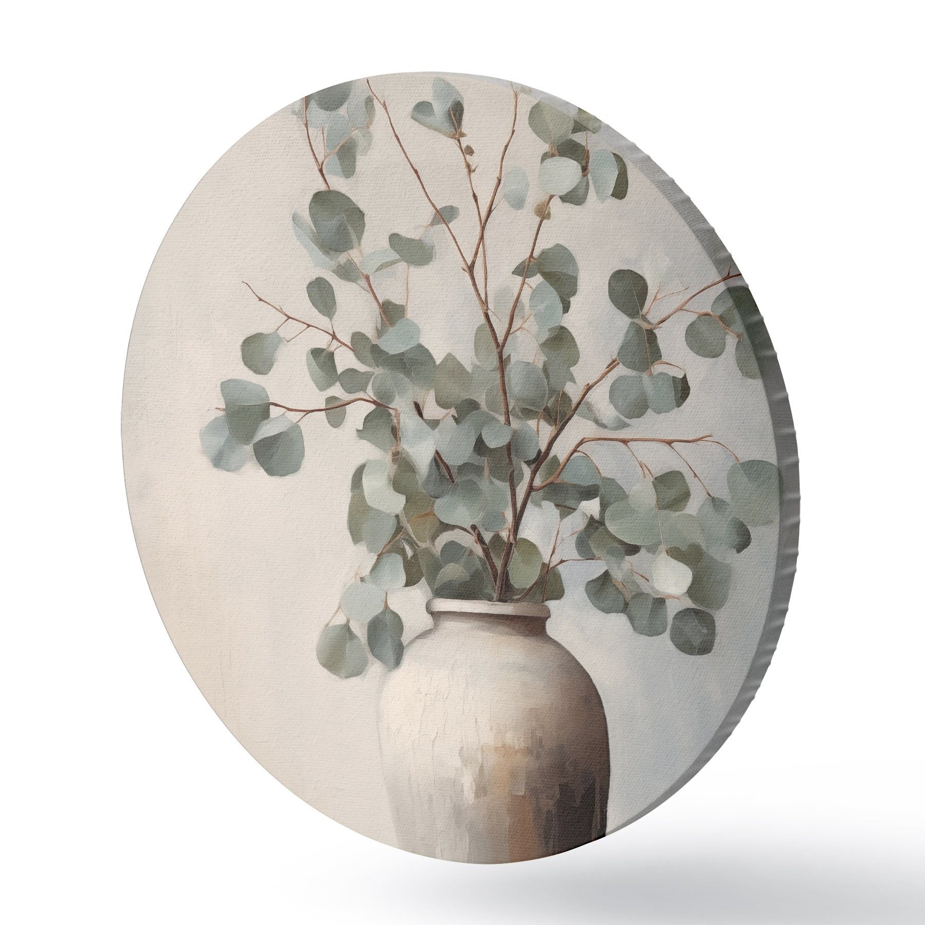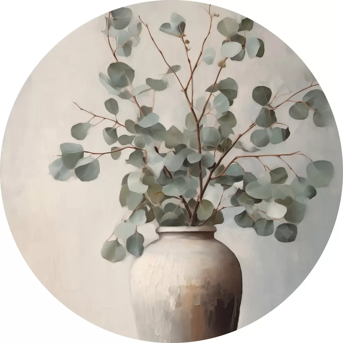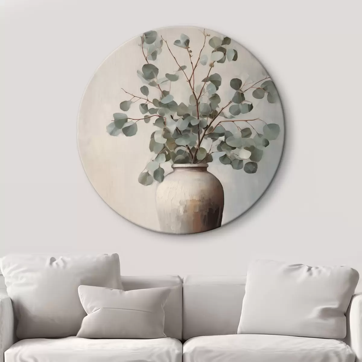 Cuadros redondos Ramas de eucalipto en jarrón de barro r44906