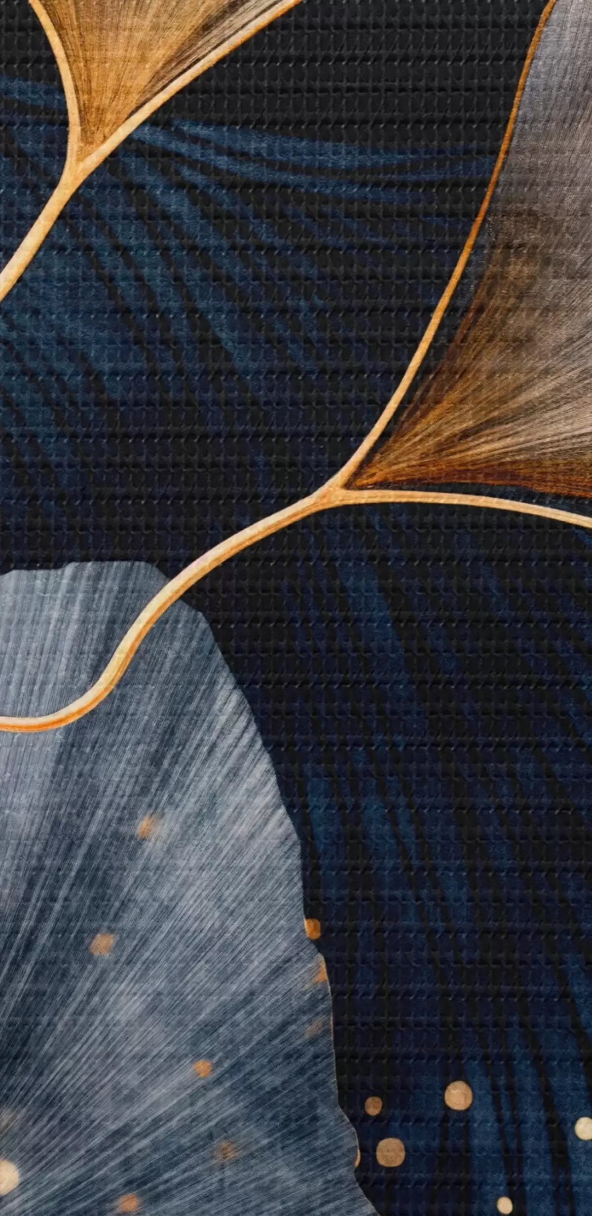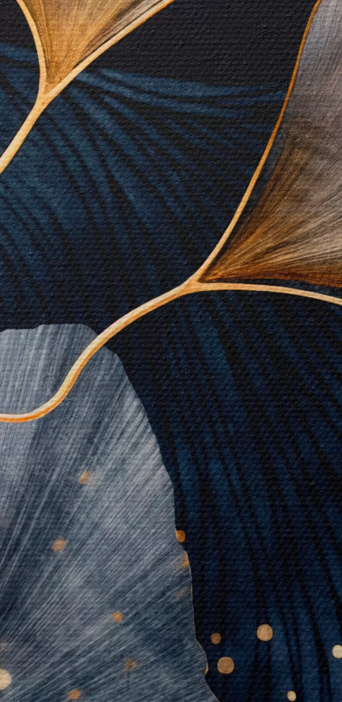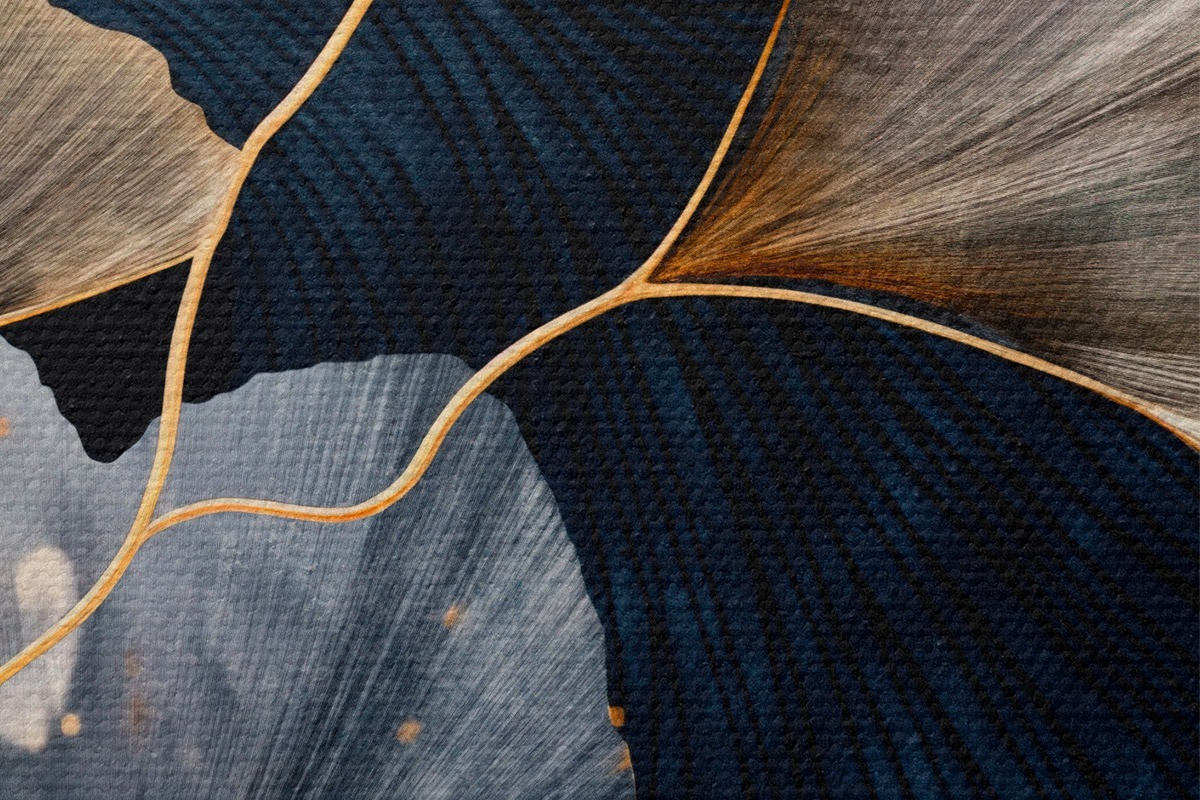Foto Hojas de ginkgo en tonos amarillos y azules, elegante fondo oscuro, arte moderno, estilo minimalista, inspirado en la naturaleza Nr r44921