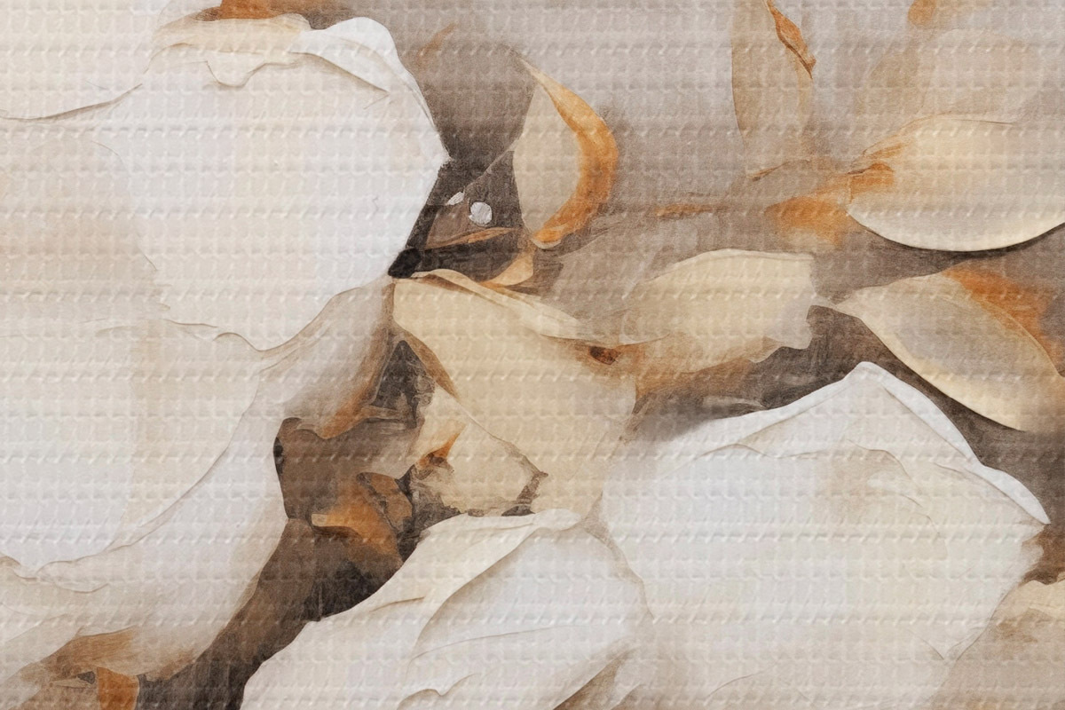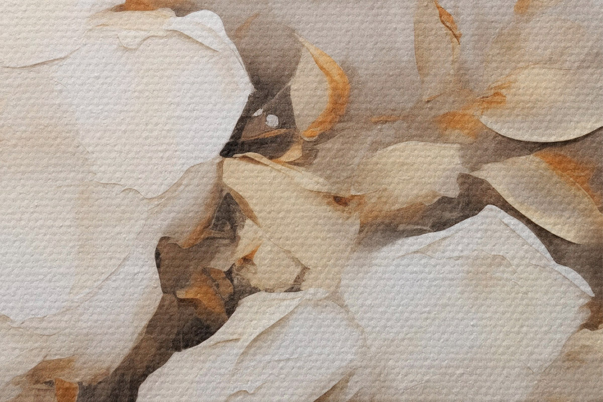 Foto Flores blancas con hojas marrones en un fondo beige, imitación de pintura al óleo, arreglo floral, arte botánico Nr r44922