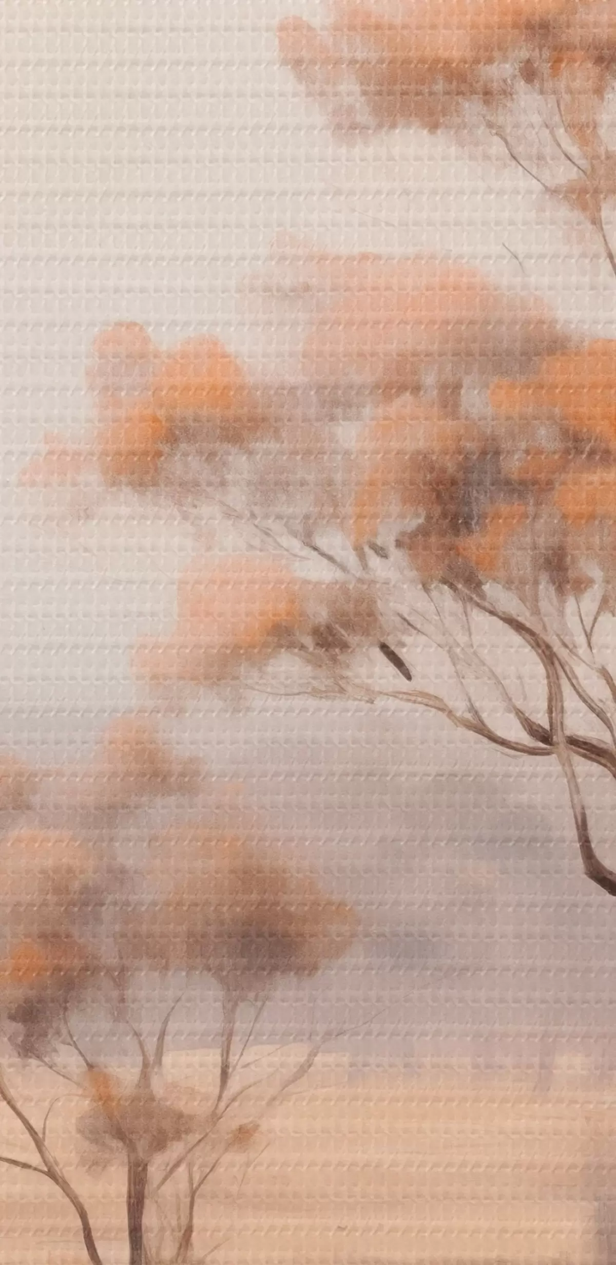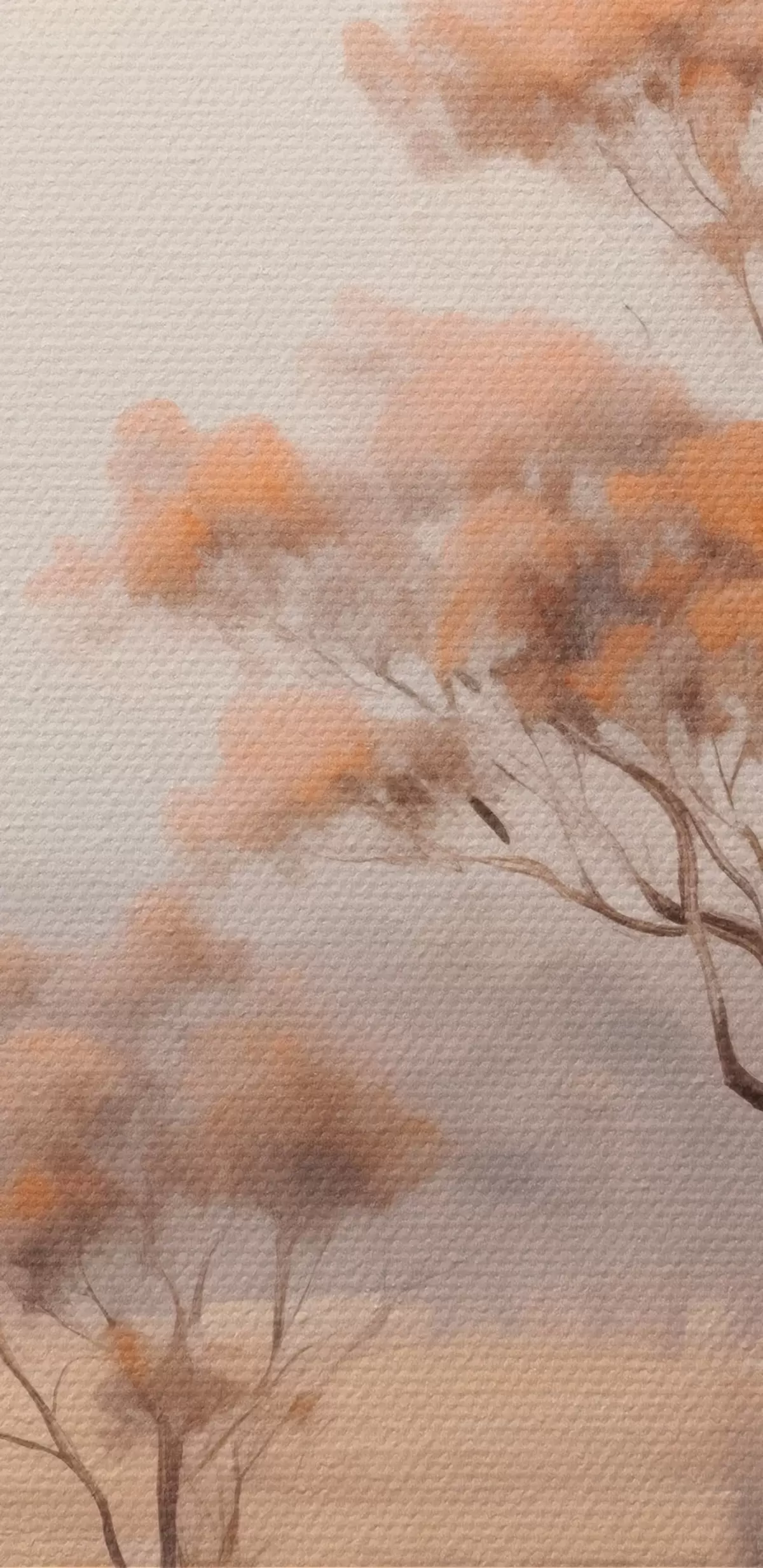 Foto Un campo con hierba naranja y algunos árboles con hojas naranjas, montañas al fondo con un cielo nublado Nr r44927