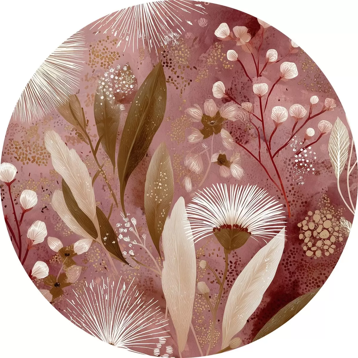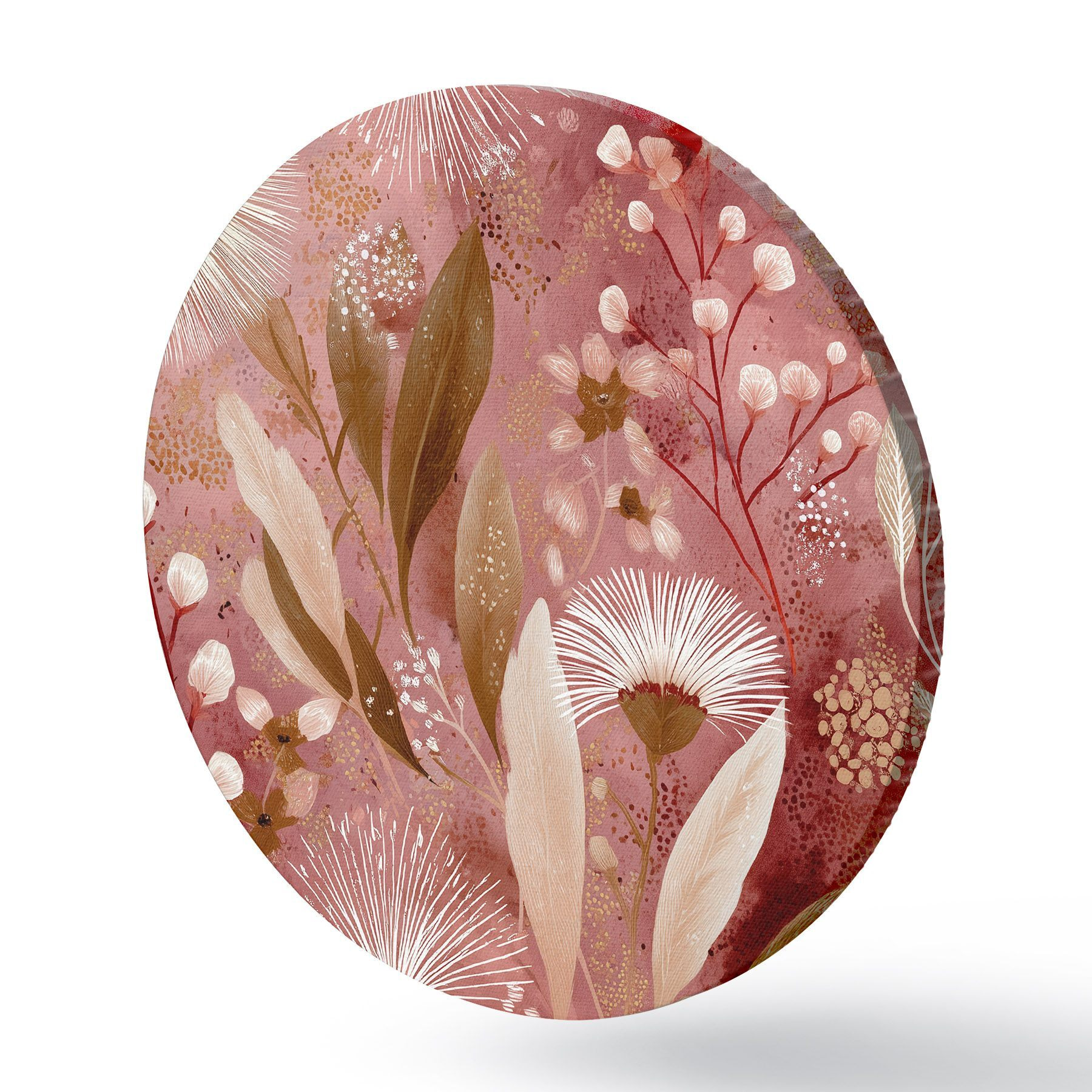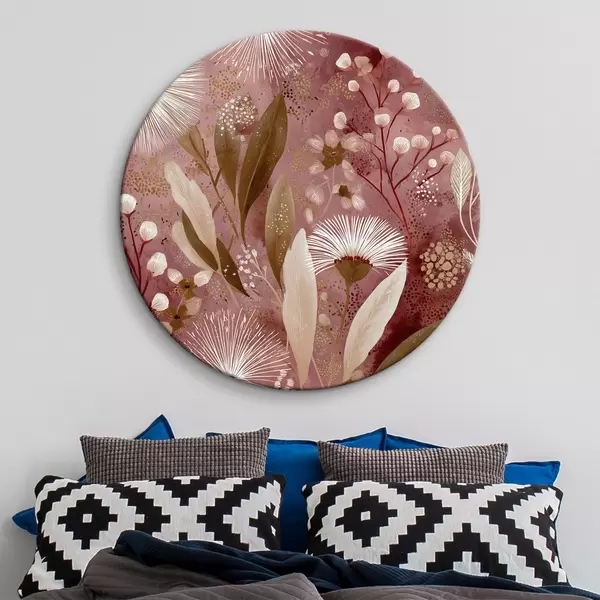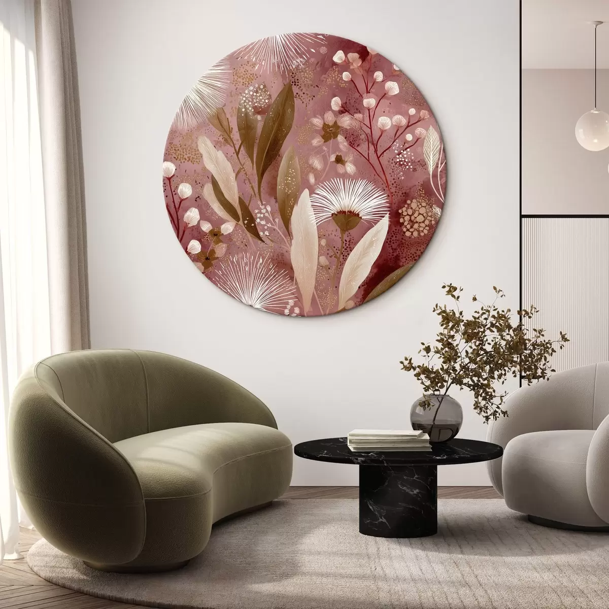 Cuadros redondos Flores blancas de estilo boho sobre fondo rojo, dibujo detallado r44979
