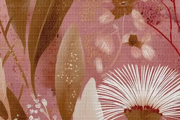 Foto Flores blancas de estilo boho sobre fondo rojo, dibujo detallado Nr r44979