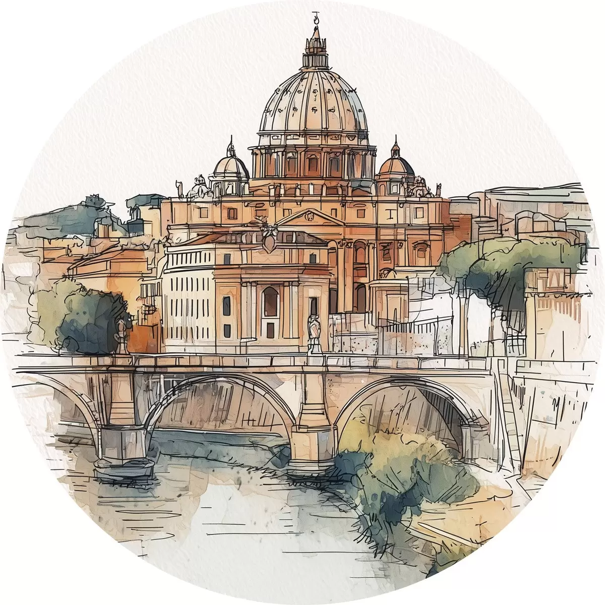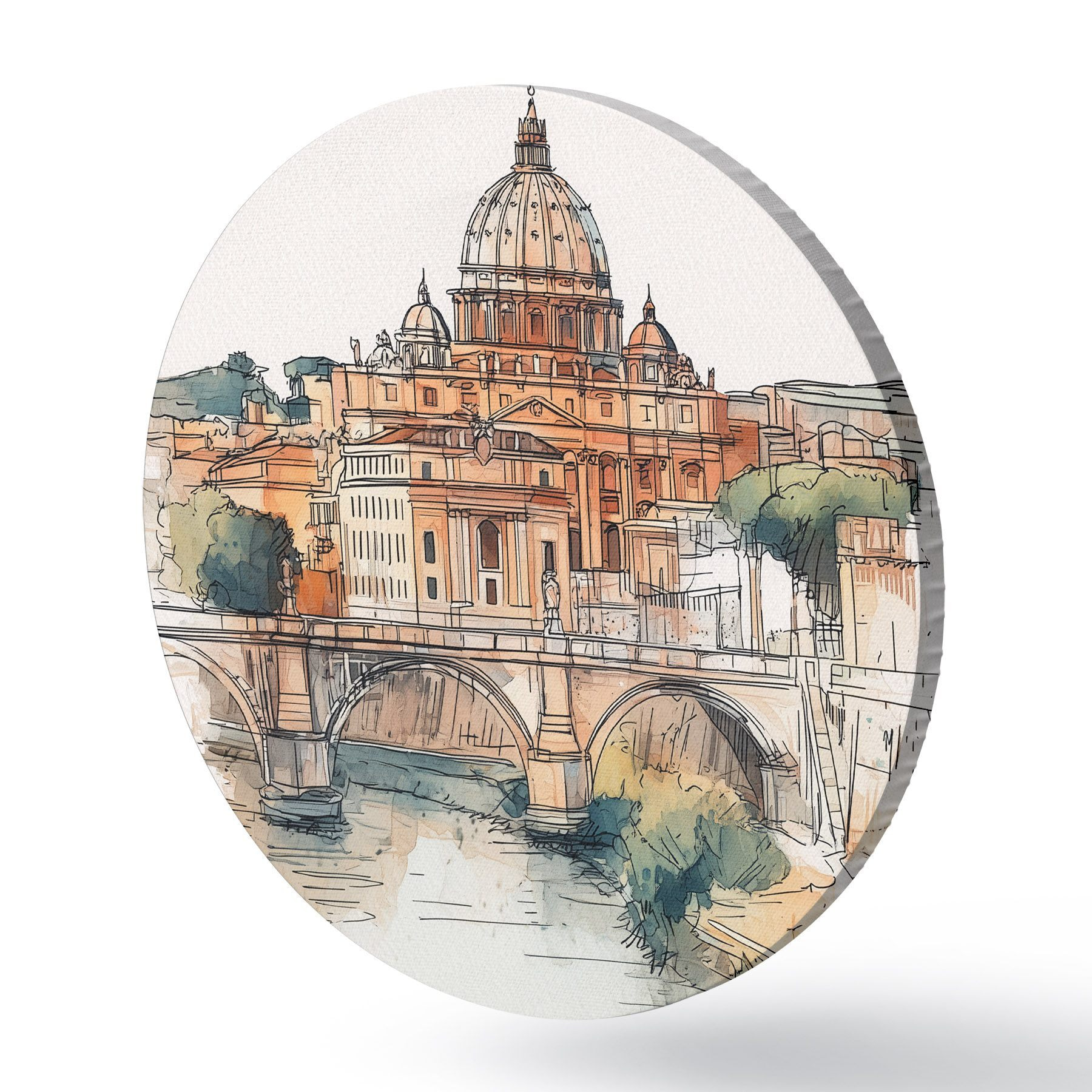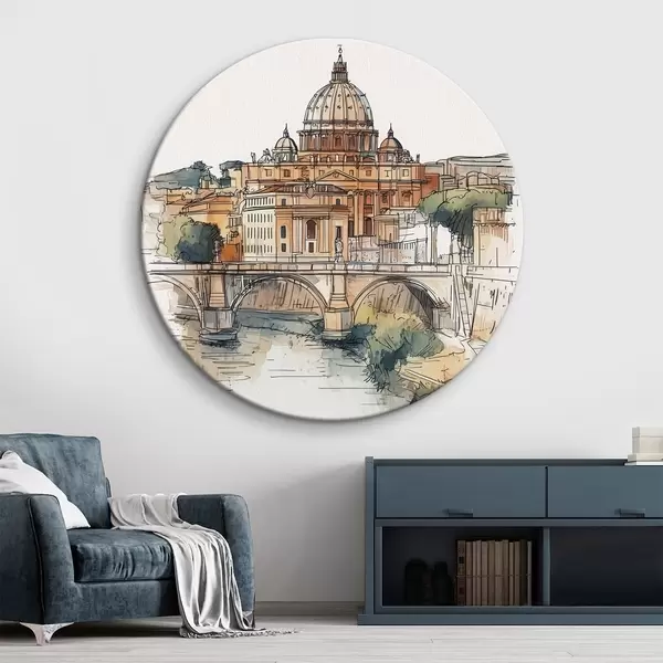 Cuadros redondos Acuarela ciudad de Roma, dibujo de bosquejo, arquitectura r44983
