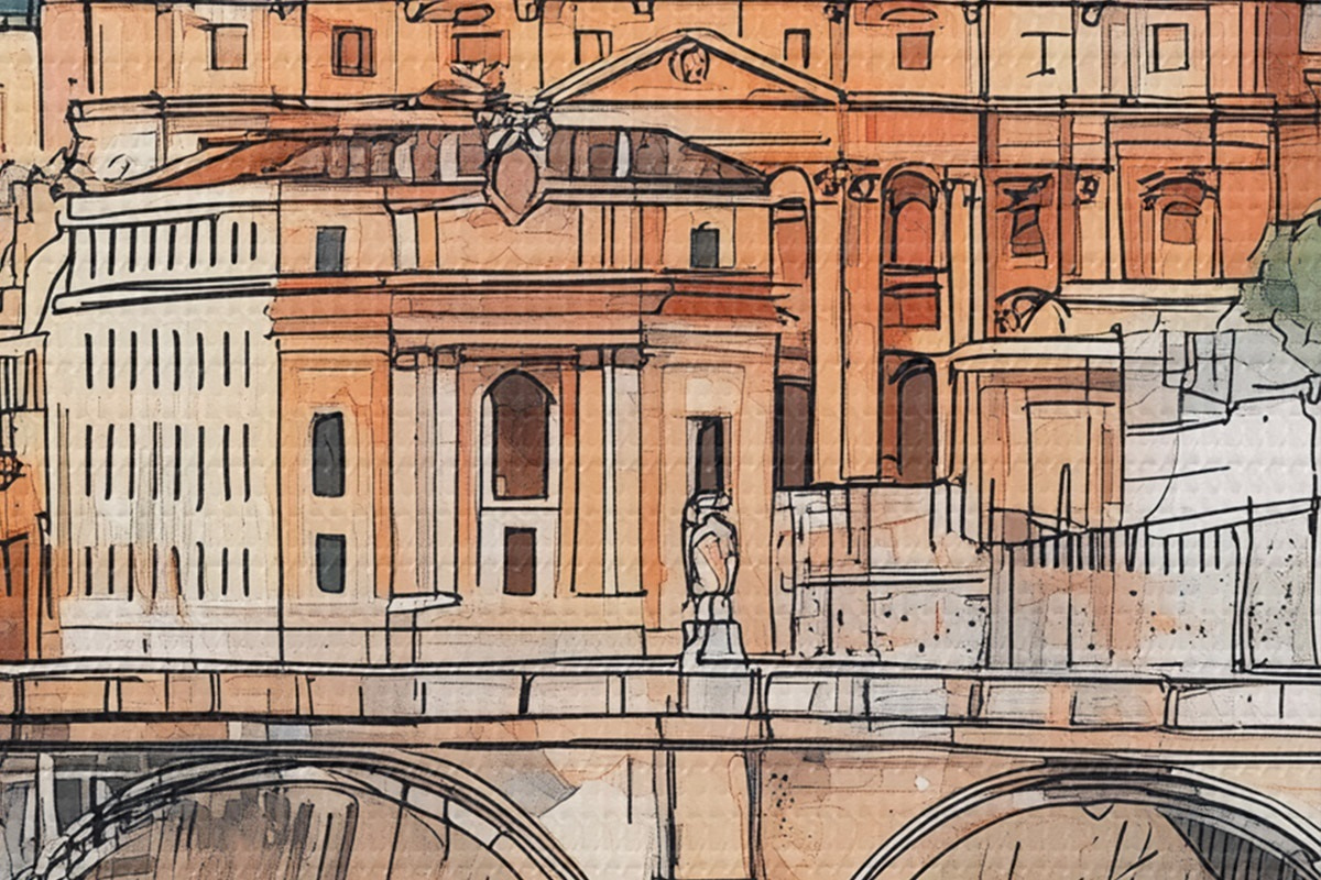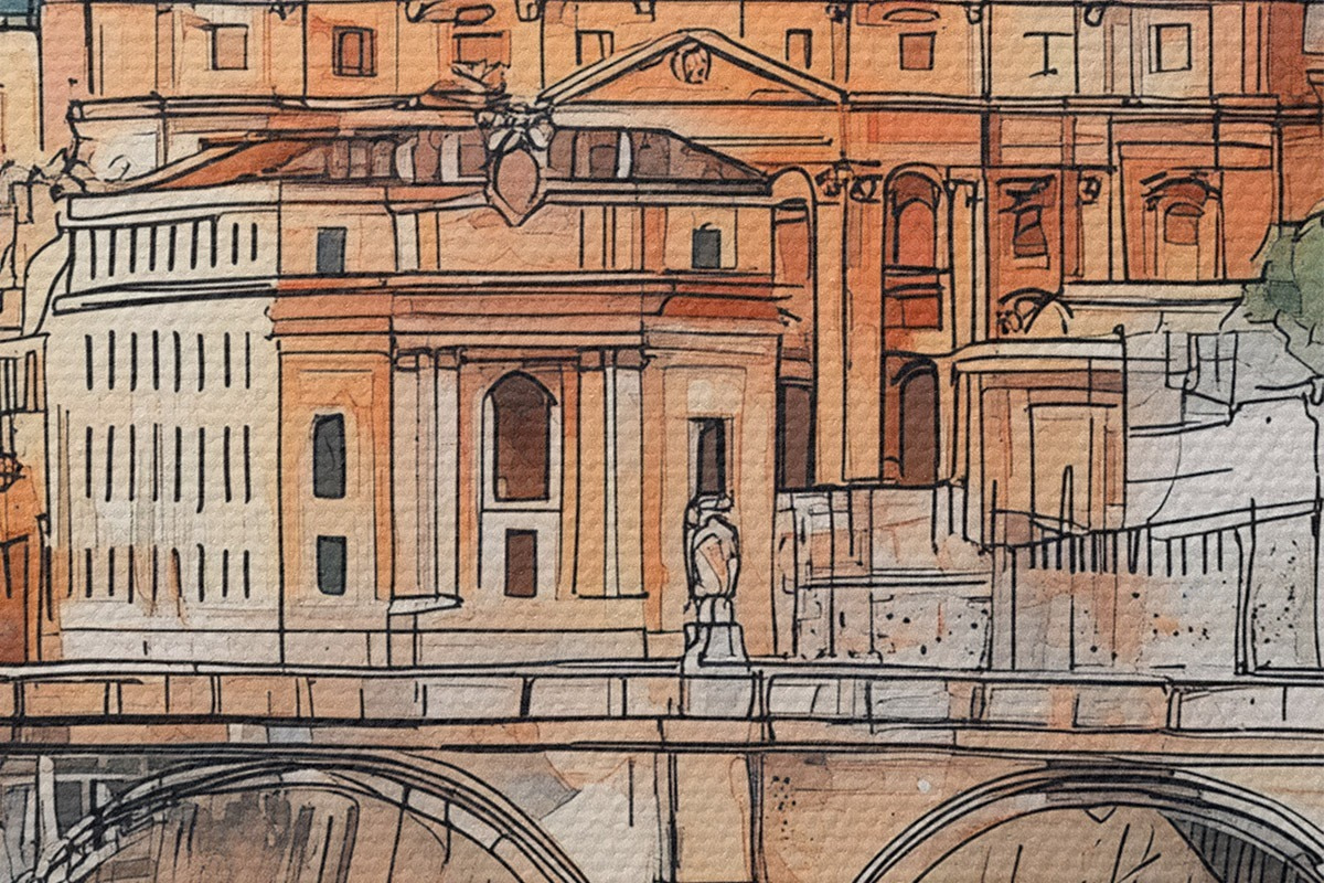 Foto Acuarela ciudad de Roma, dibujo de bosquejo, arquitectura Nr r44983