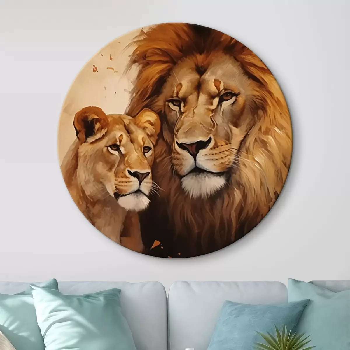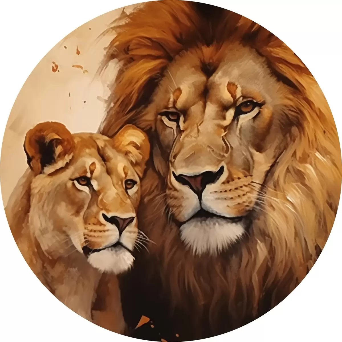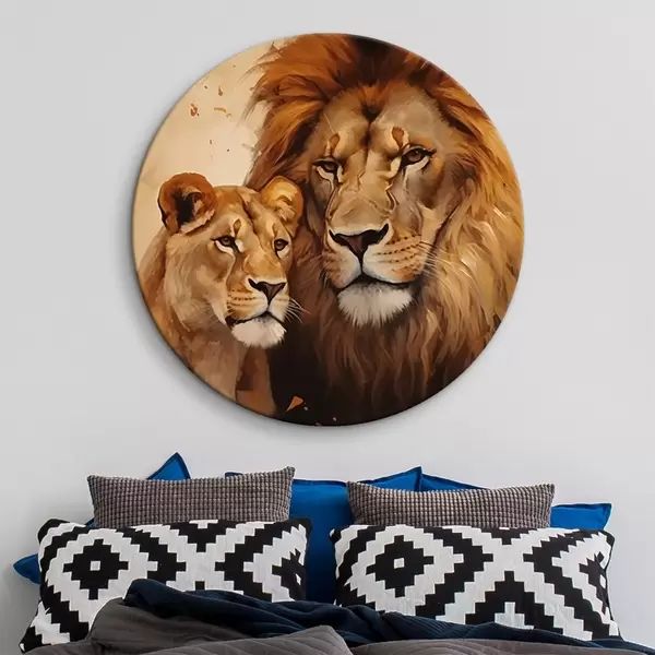 Cuadros redondos León y leona r44992