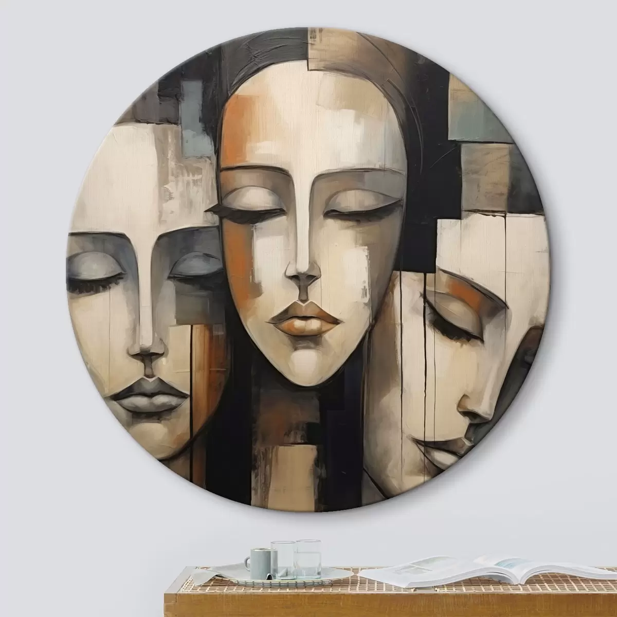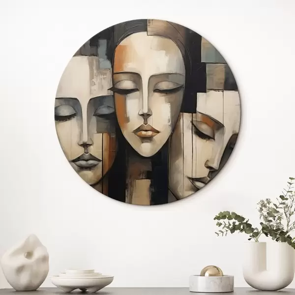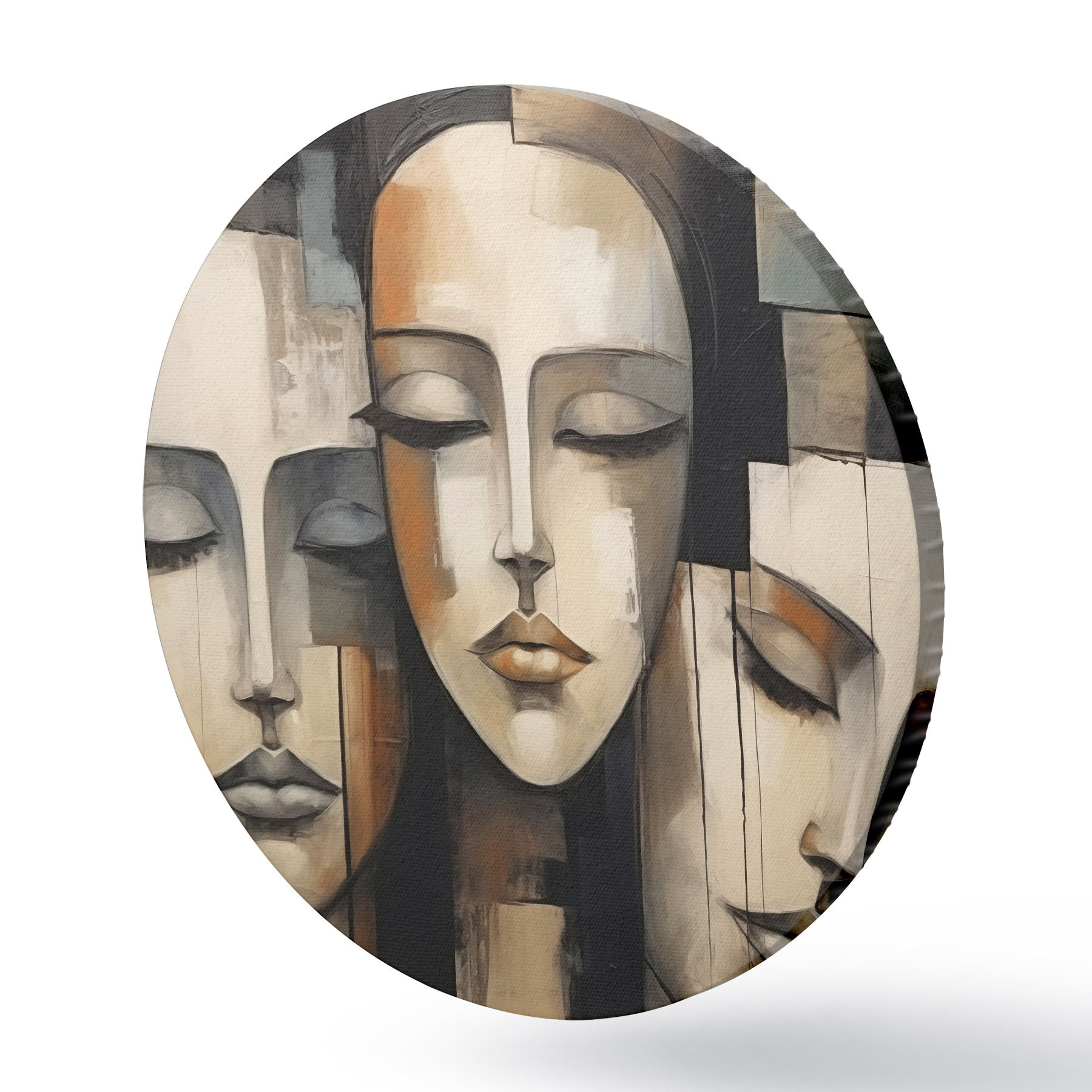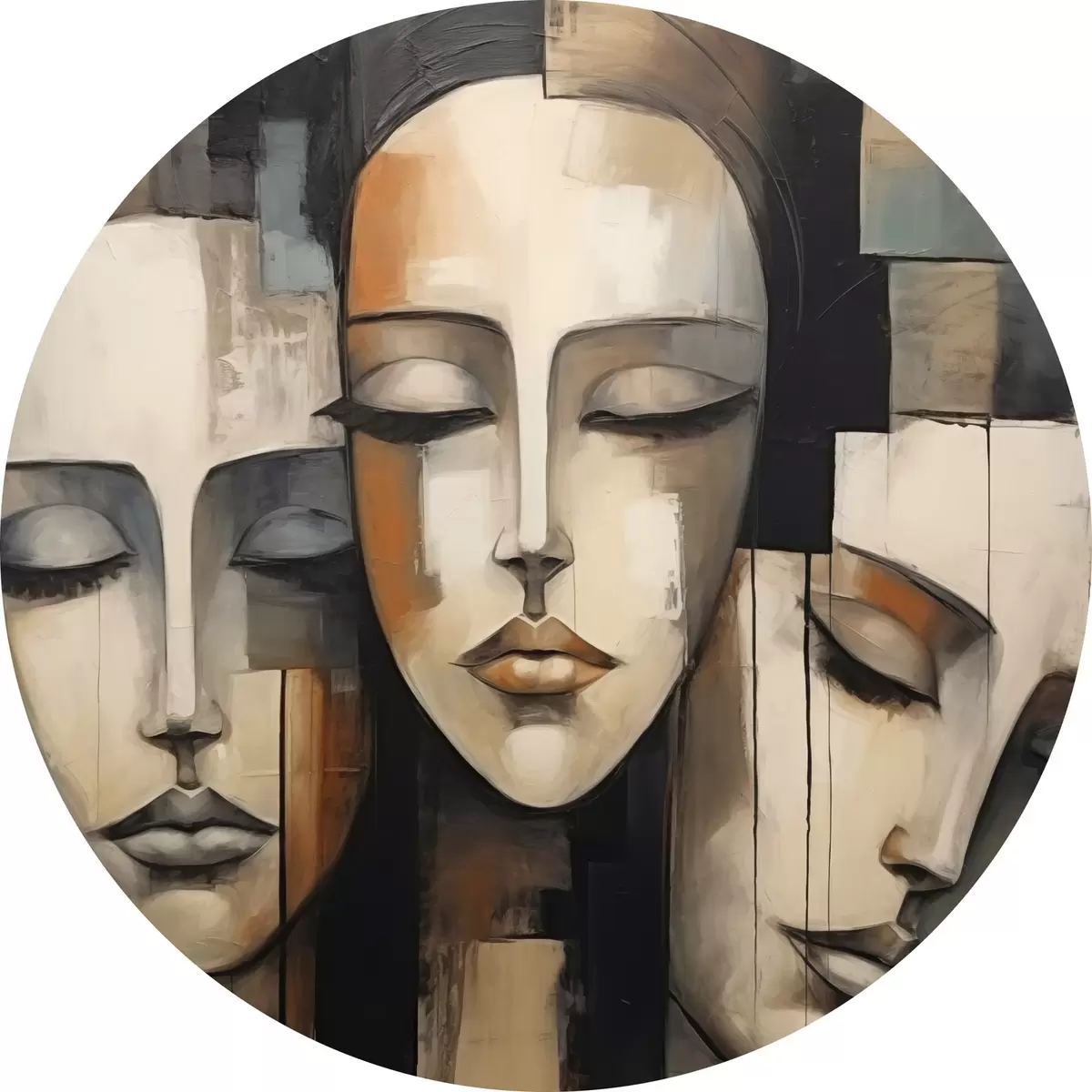 Cuadros redondos Tres rostros femeninos con los ojos cerrados en estilo cubista r45008