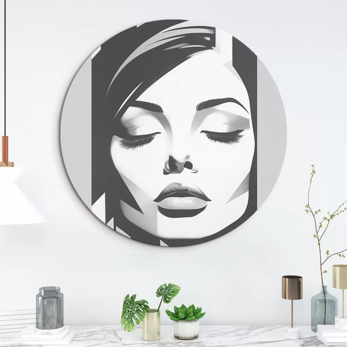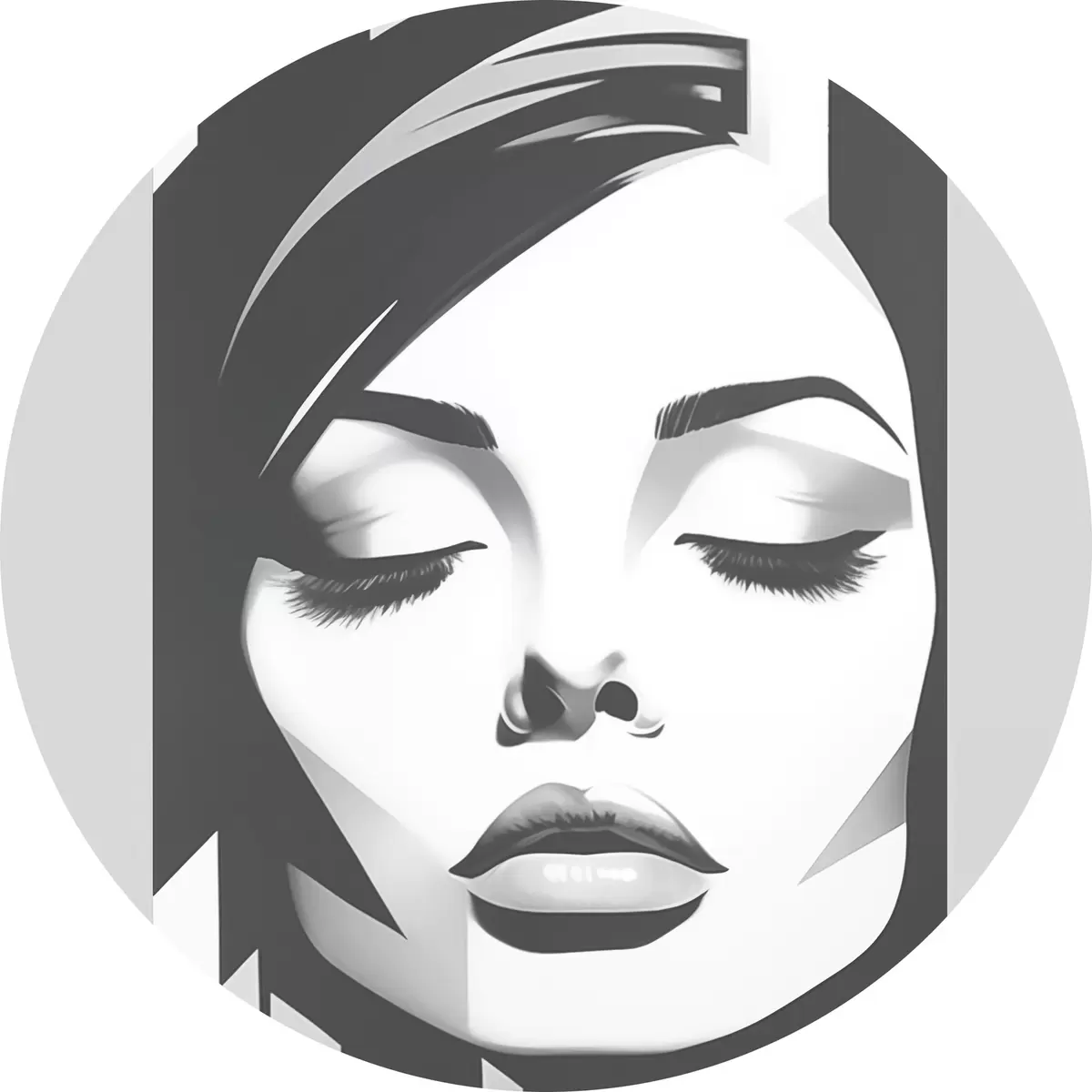 Cuadros redondos Cara en blanco y negro con los ojos cerrados r45075