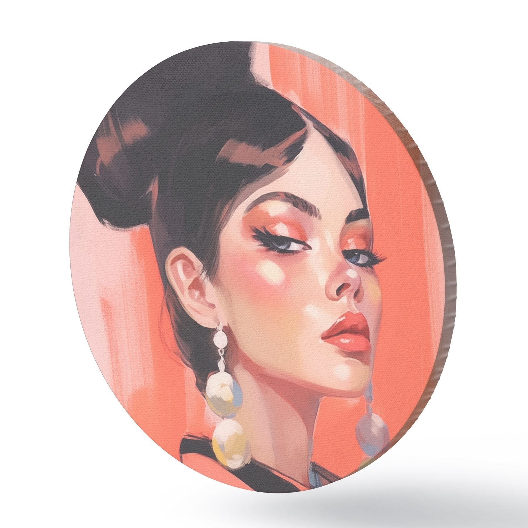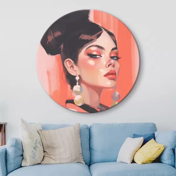 Cuadros redondos Retrato de mujer con camisa de rayas r45079