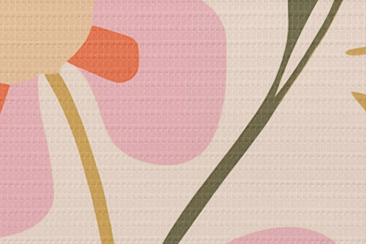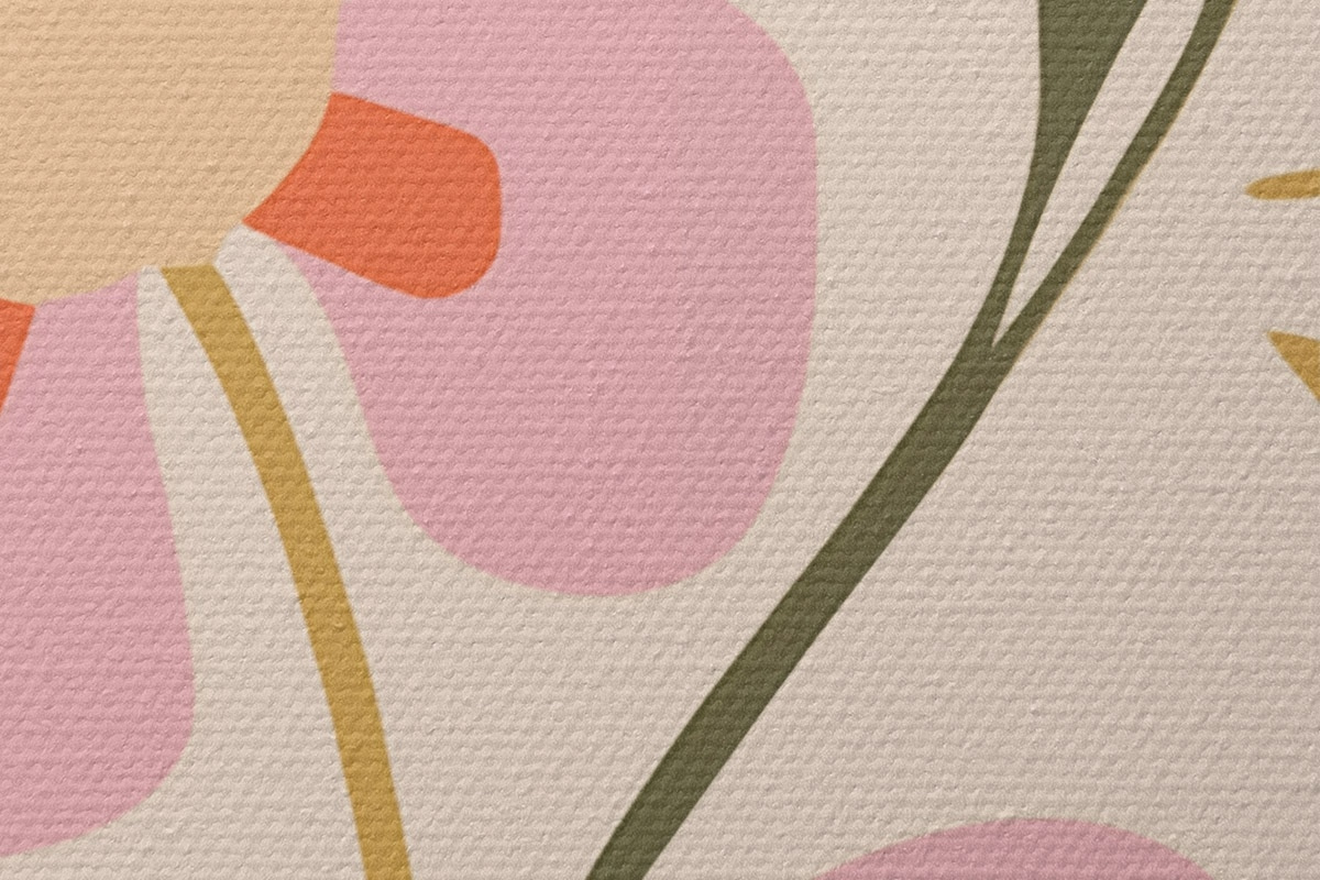 Foto Flores estilizadas rosas y naranjas con hojas verdes Nr r45140