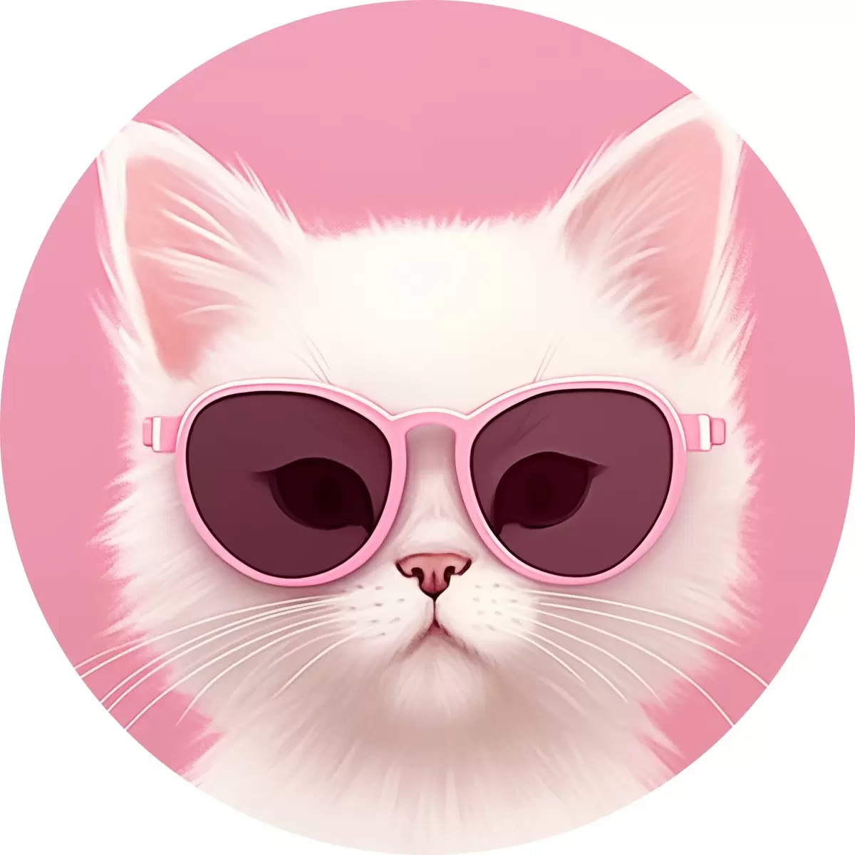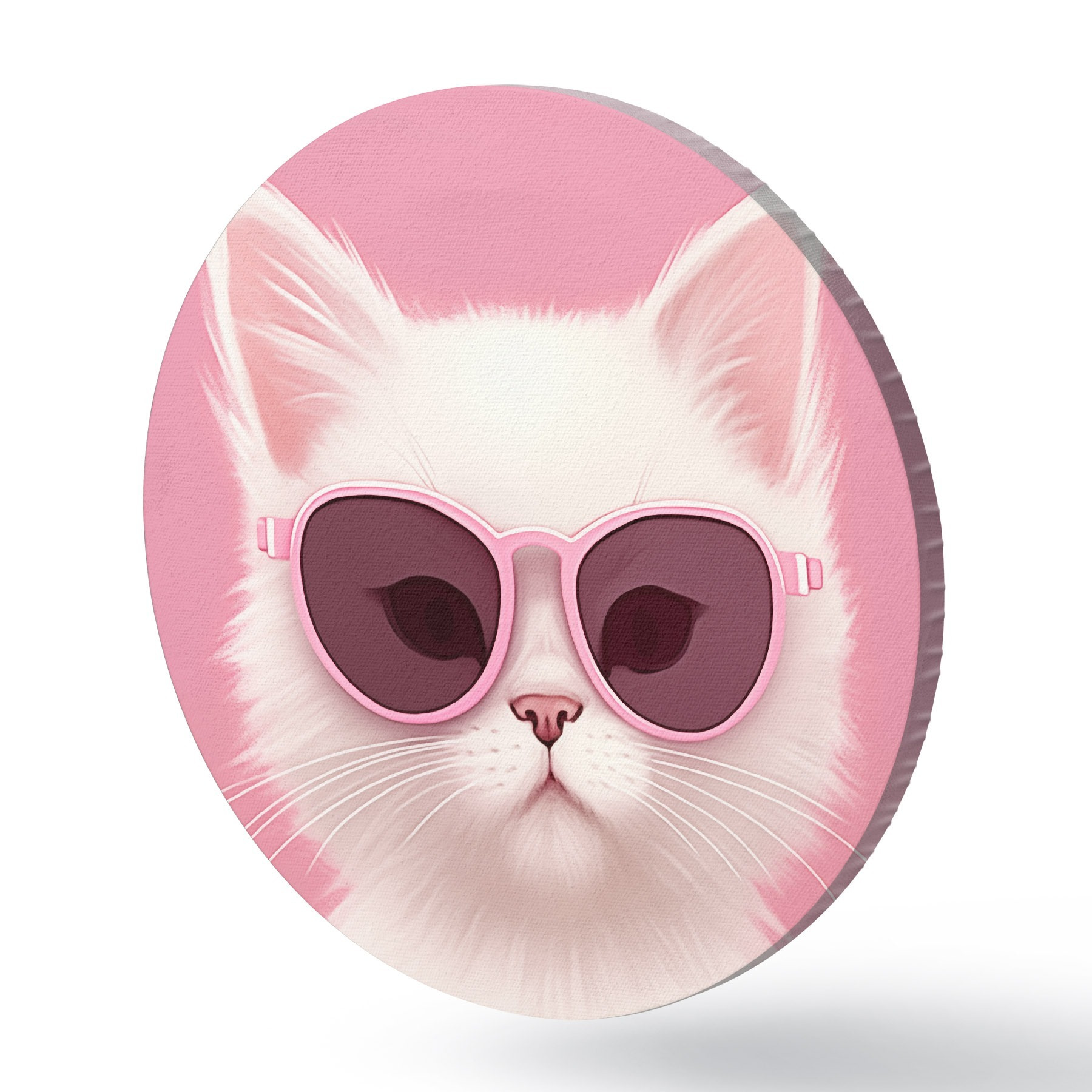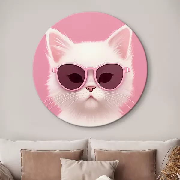 Cuadros redondos Gato blanco con gafas rosas r45145
