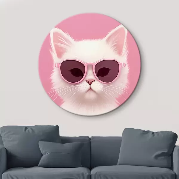 Cuadros redondos Gato blanco con gafas rosas r45145